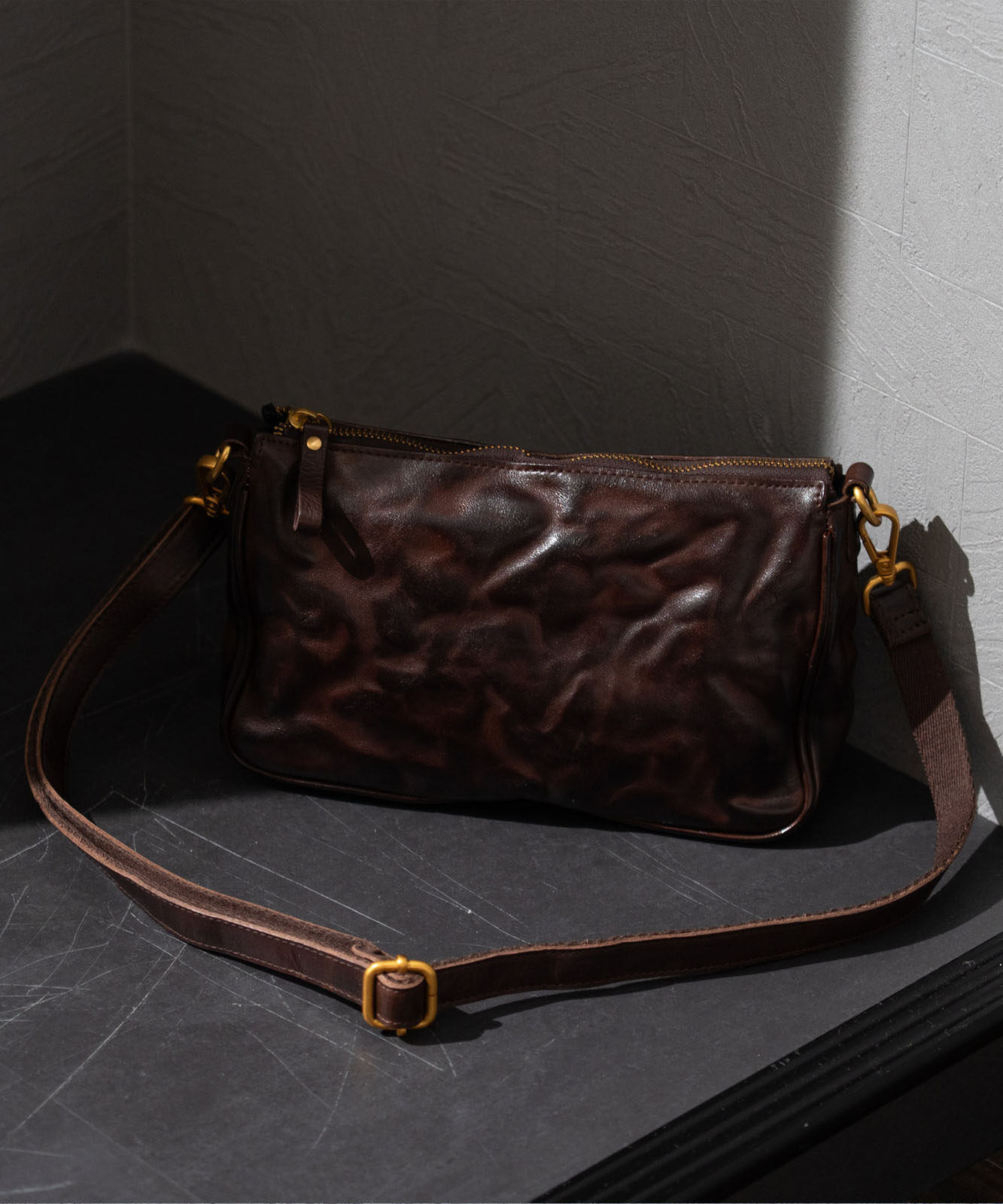 シワ加工を施した本革が、ヴィンテージ感と高級感を演出。