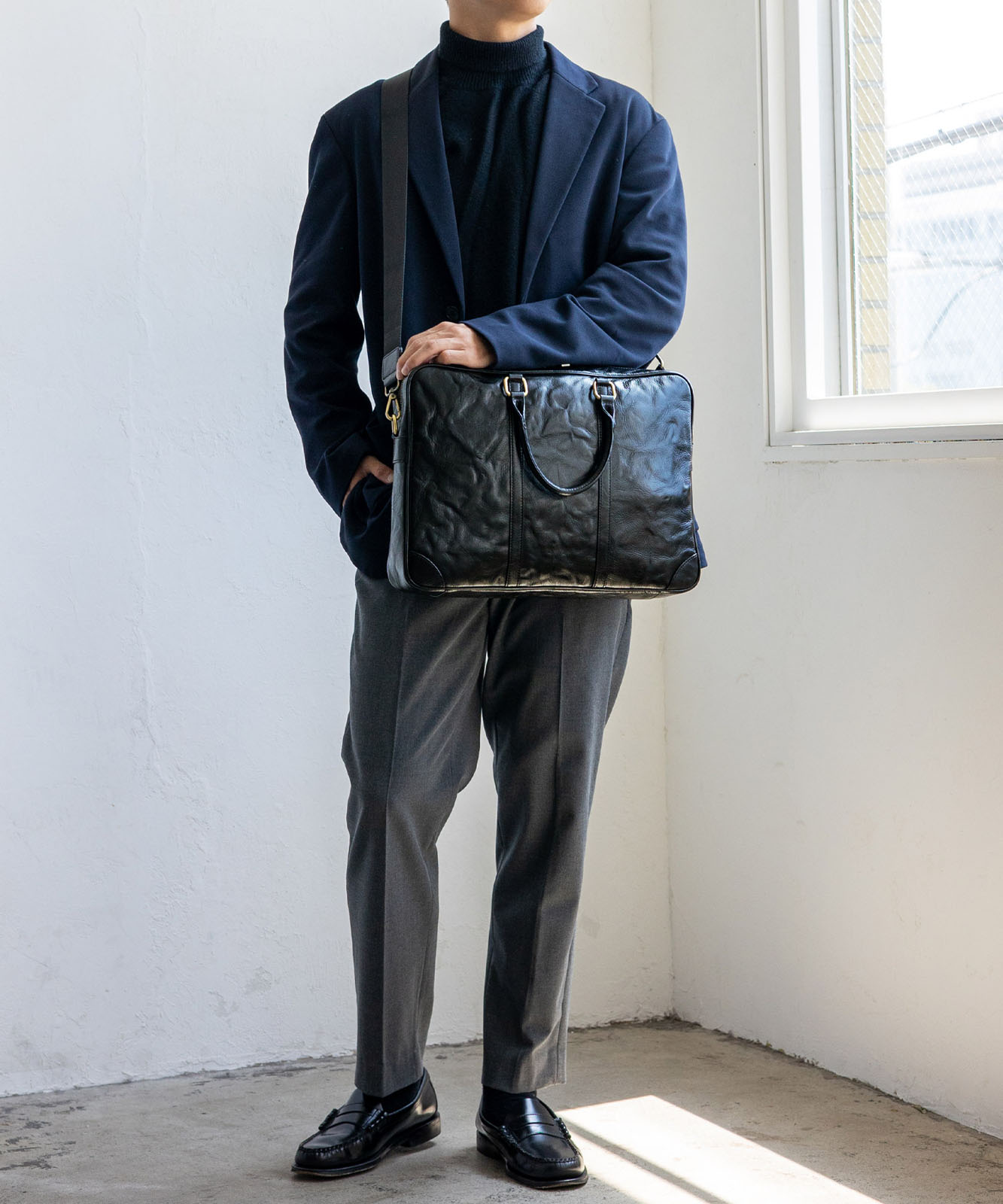 スーツやジャケットにも馴染み、通勤スタイルをスマートに演出します。