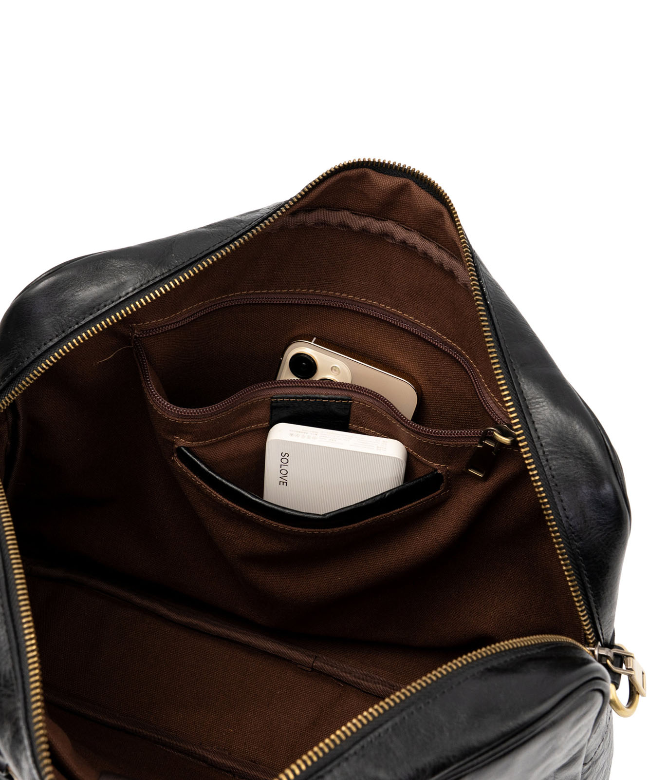 メイン収納はWファスナーでサイドまで大きく開き、荷物の出し入れがスムーズ。