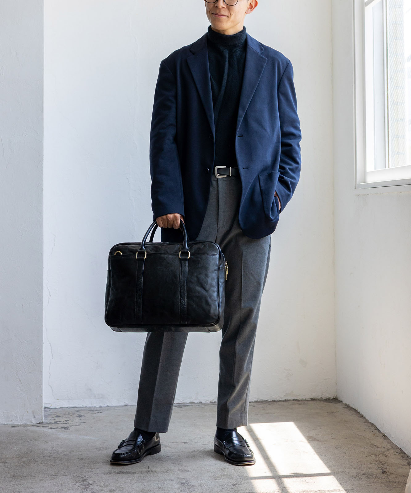 スーツやジャケットとの相性も抜群で、毎日の通勤をスマートに演出します。