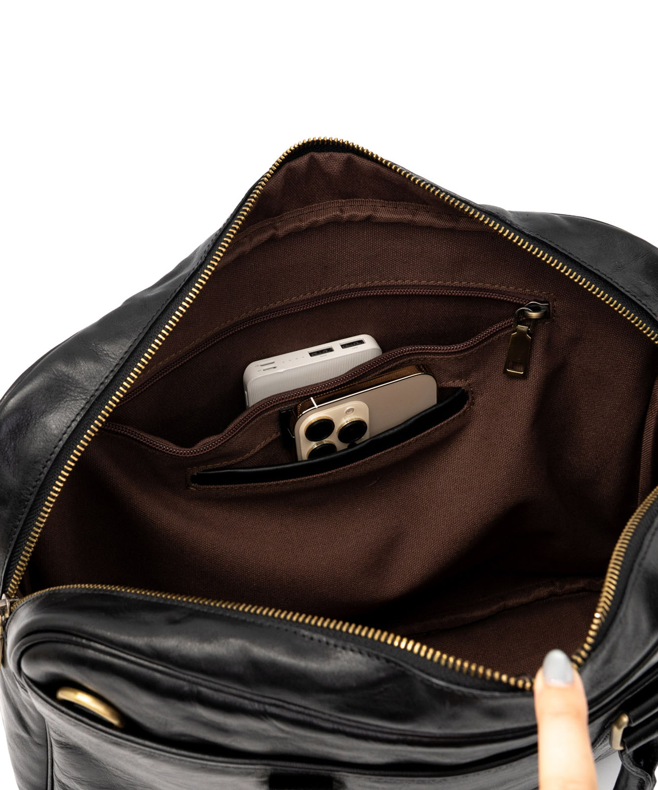 メイン収納はWファスナーでサイドまで大きく開き、荷物の出し入れがスムーズ。