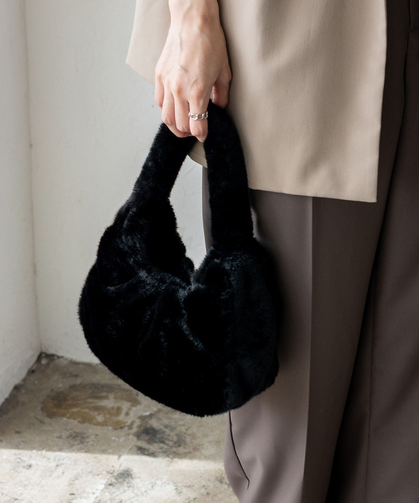 流行のミニサイズに、ふわふわファーをプラス。