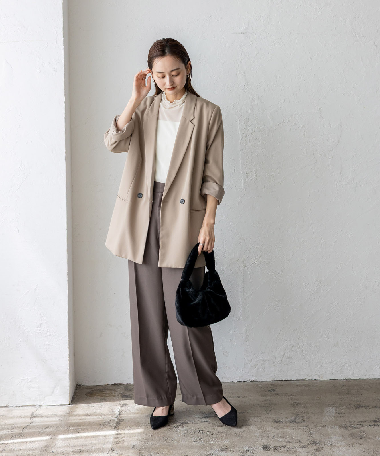 薄めの芯材入りなので、形がきれいにキープされ、持ったときのシルエットも美しく見えます。