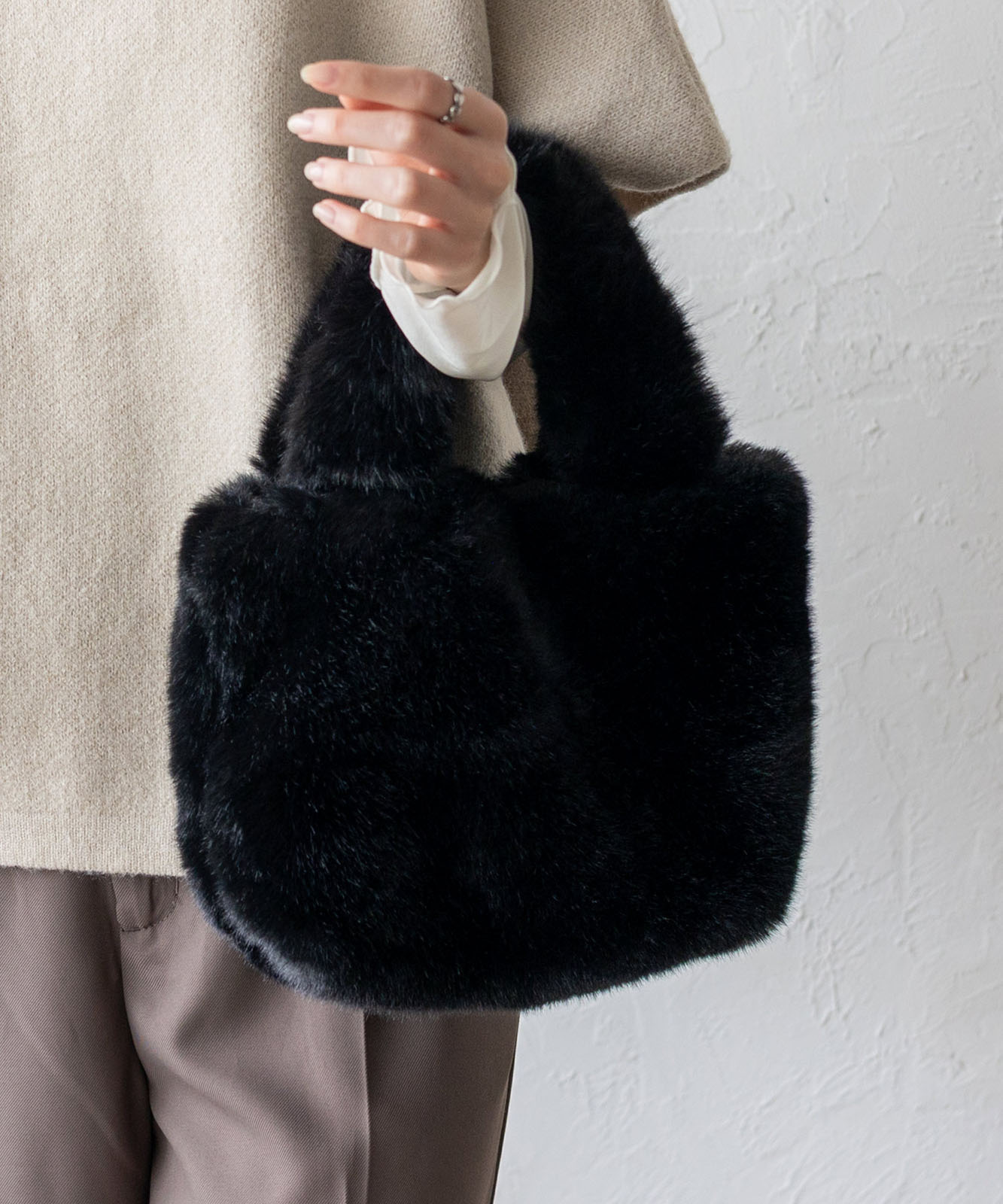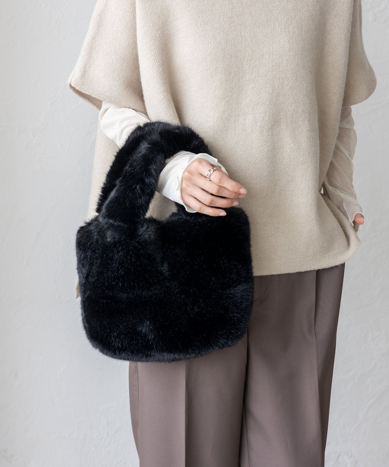 流行のミニサイズに、ふわふわファーをプラス。
