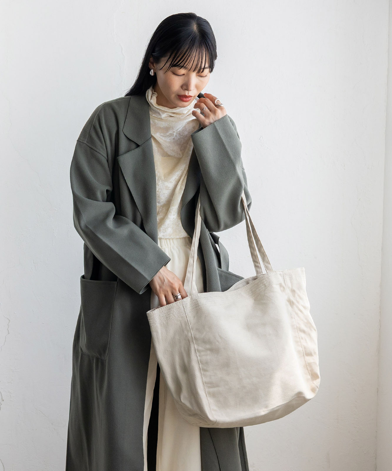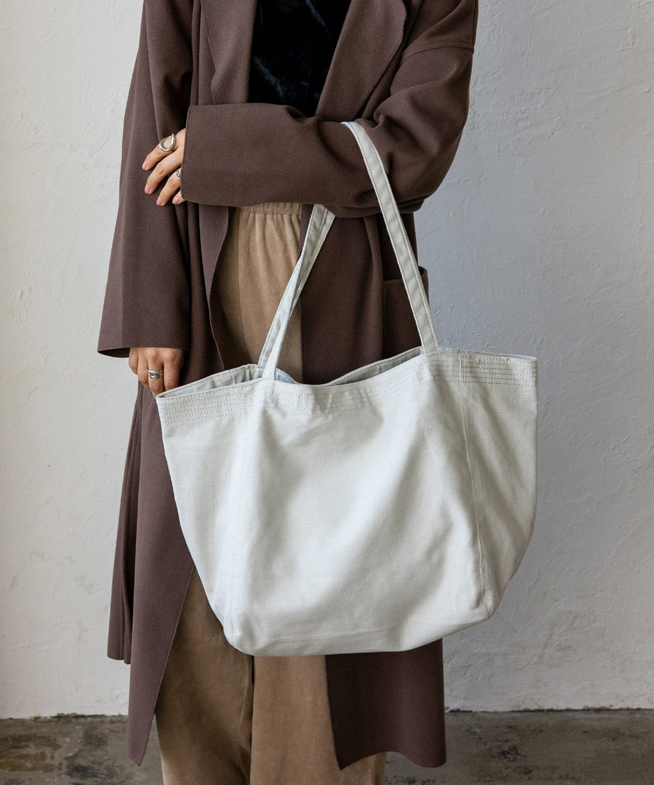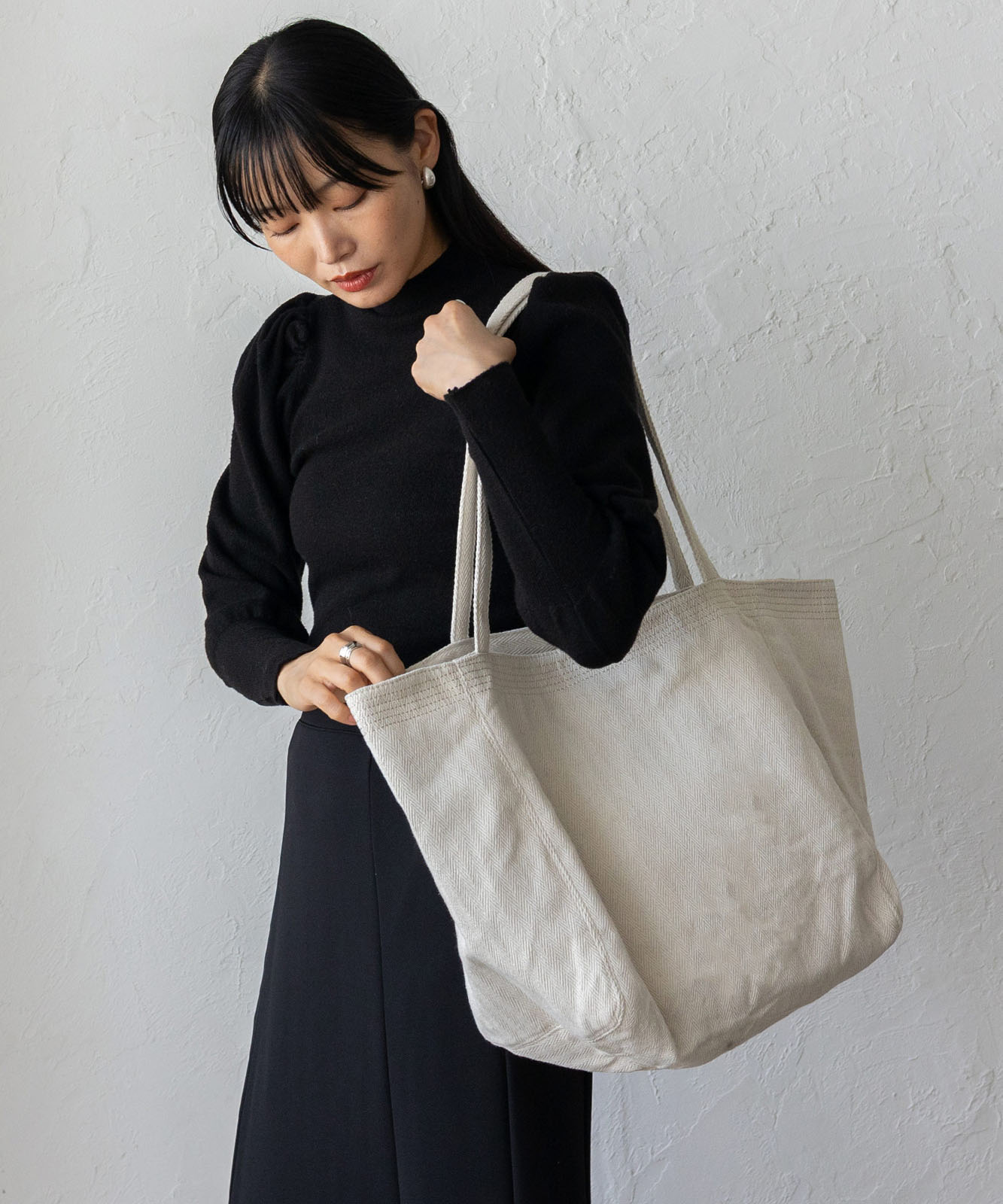 長めのハンドルだから、厚手のアウターの上からでも楽に肩掛け可能。季節を問わず活躍するトートです。