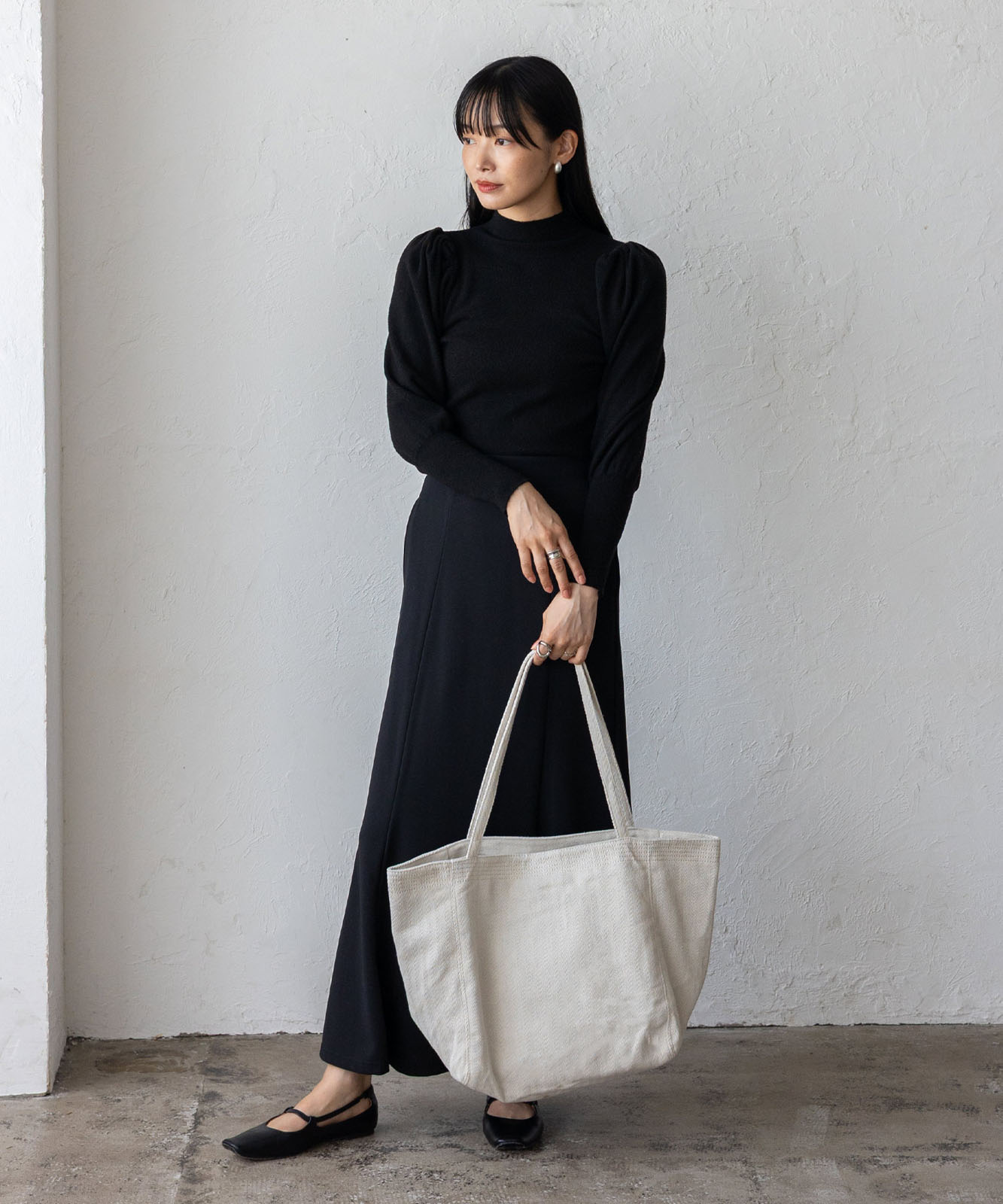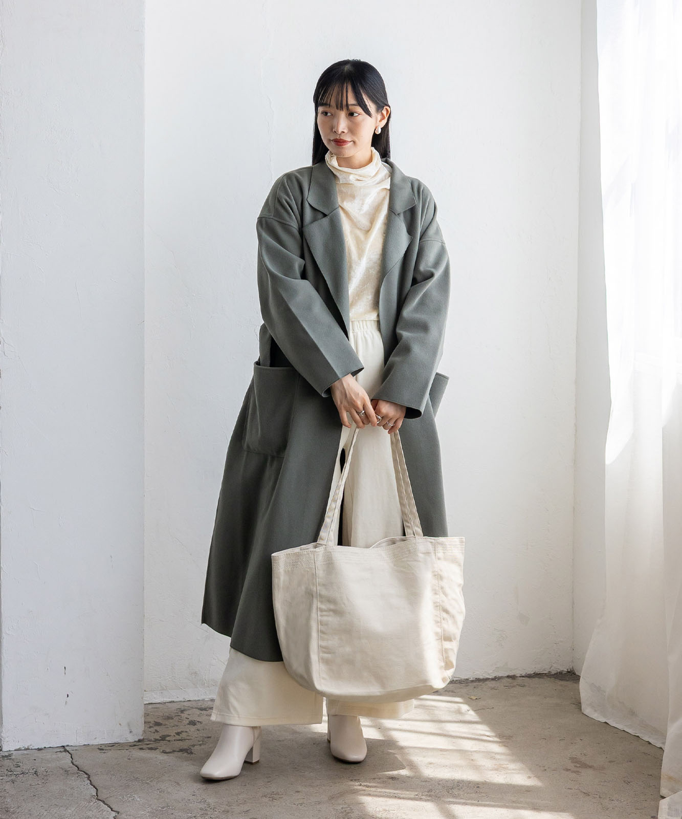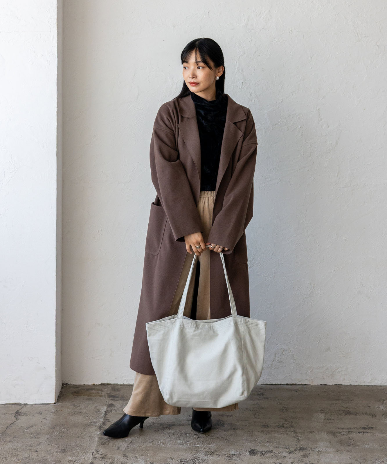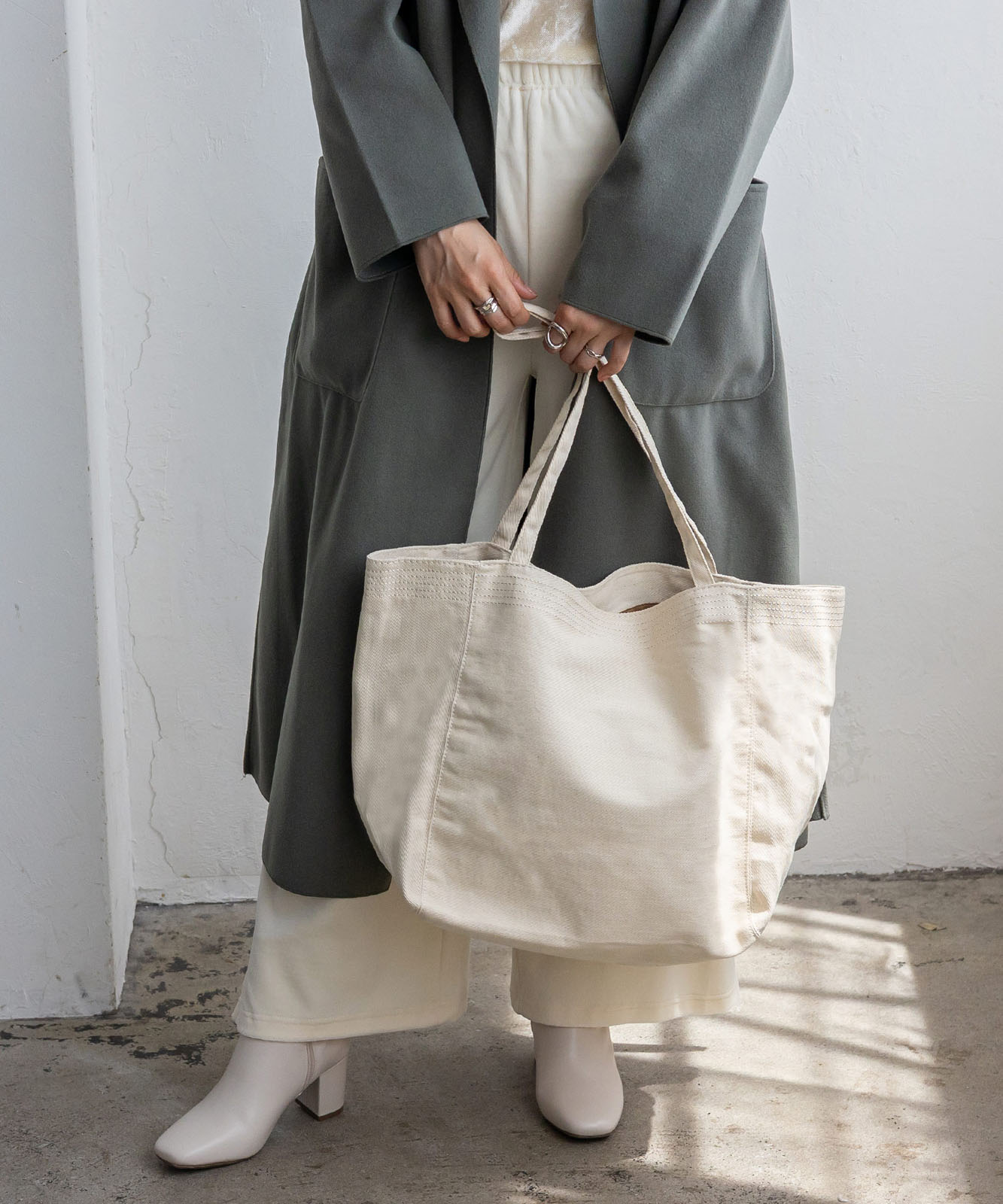 長めのハンドルだから、厚手のアウターの上からでも楽に肩掛け可能。季節を問わず活躍するトートです。