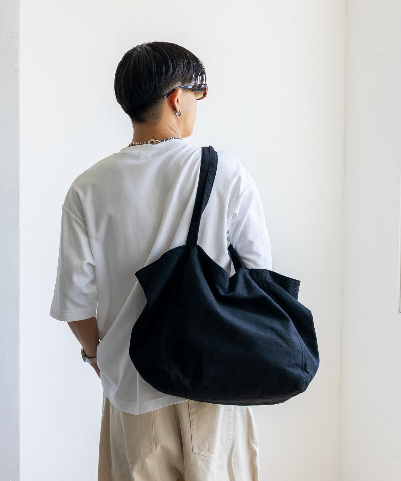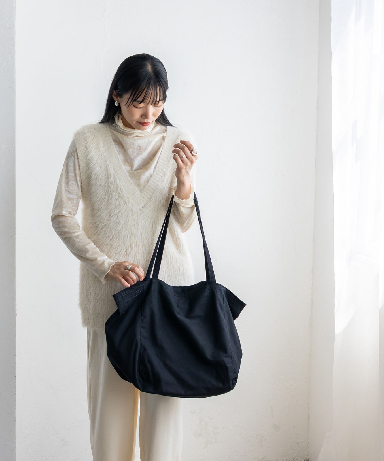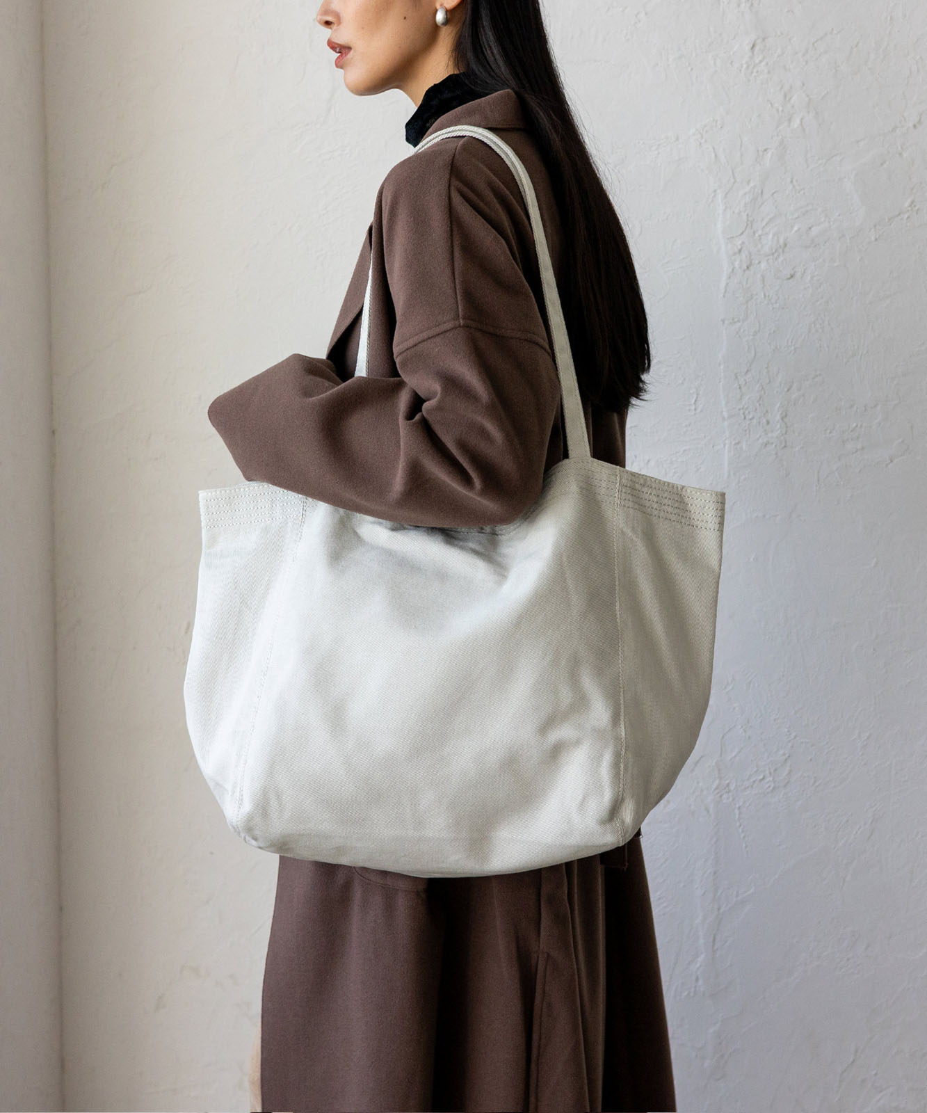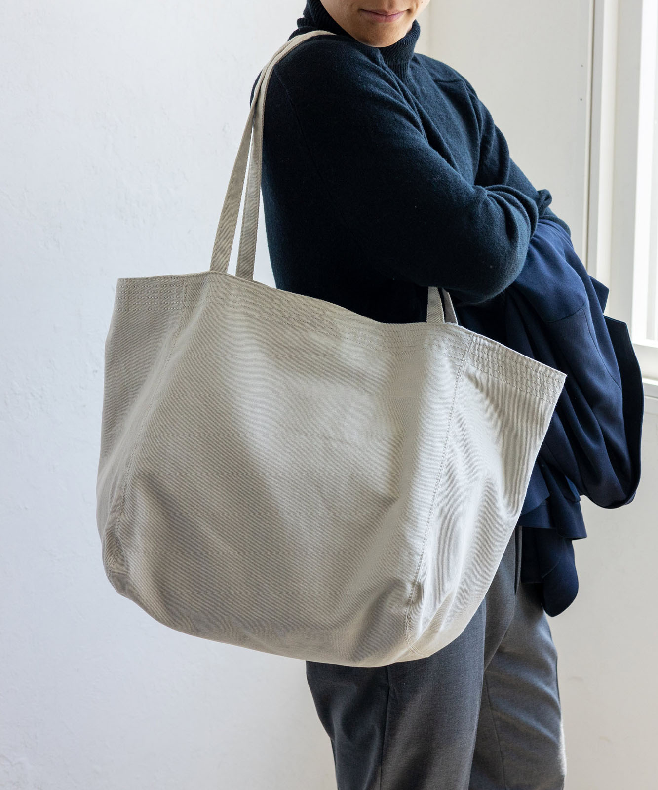 柔らかい仕立てなので、荷物の量や持ち方に合わせてフォルムが変化。