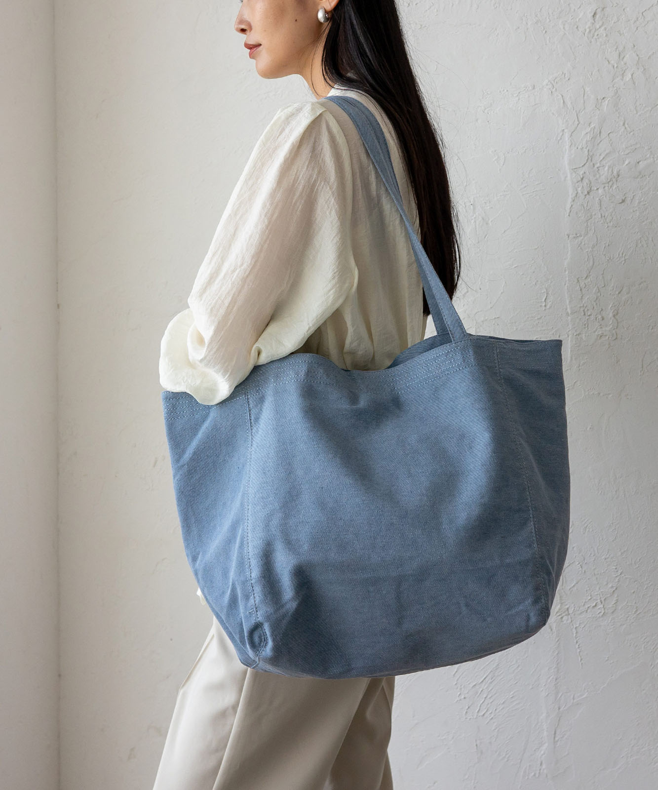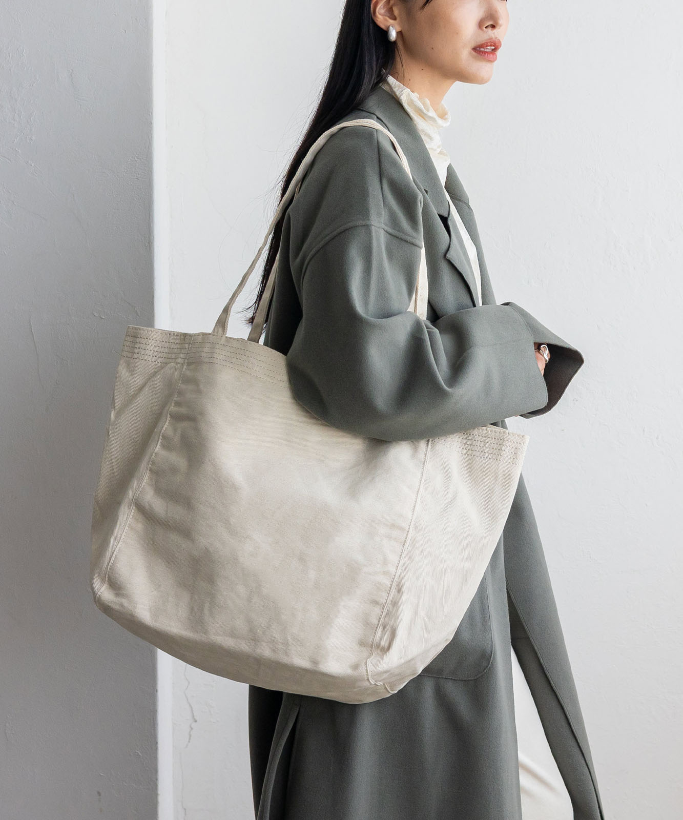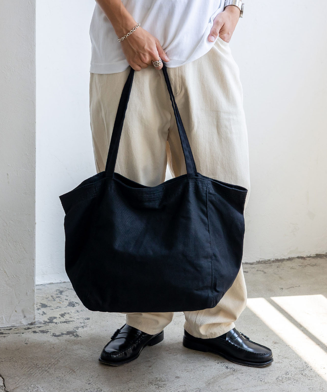 柔らかい仕立てなので、荷物の量や持ち方に合わせてフォルムが変化。