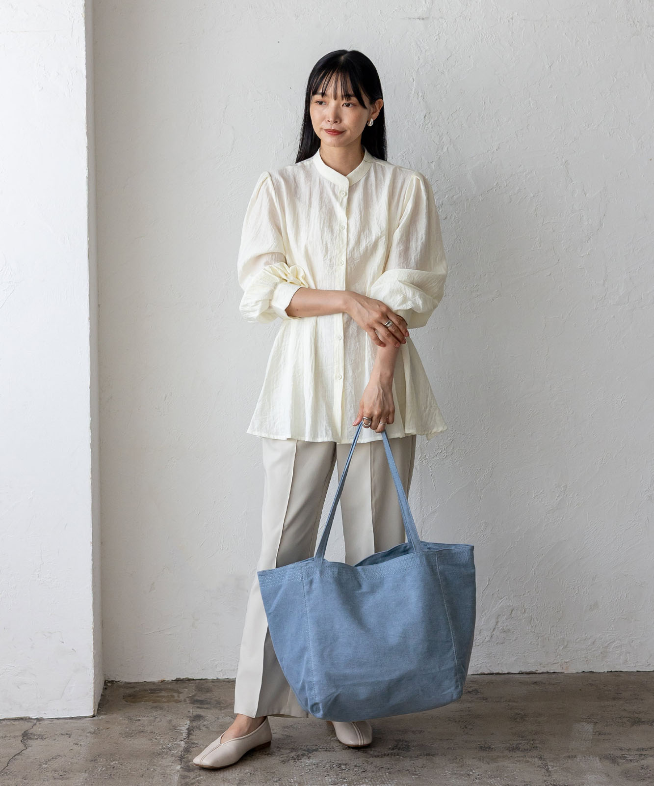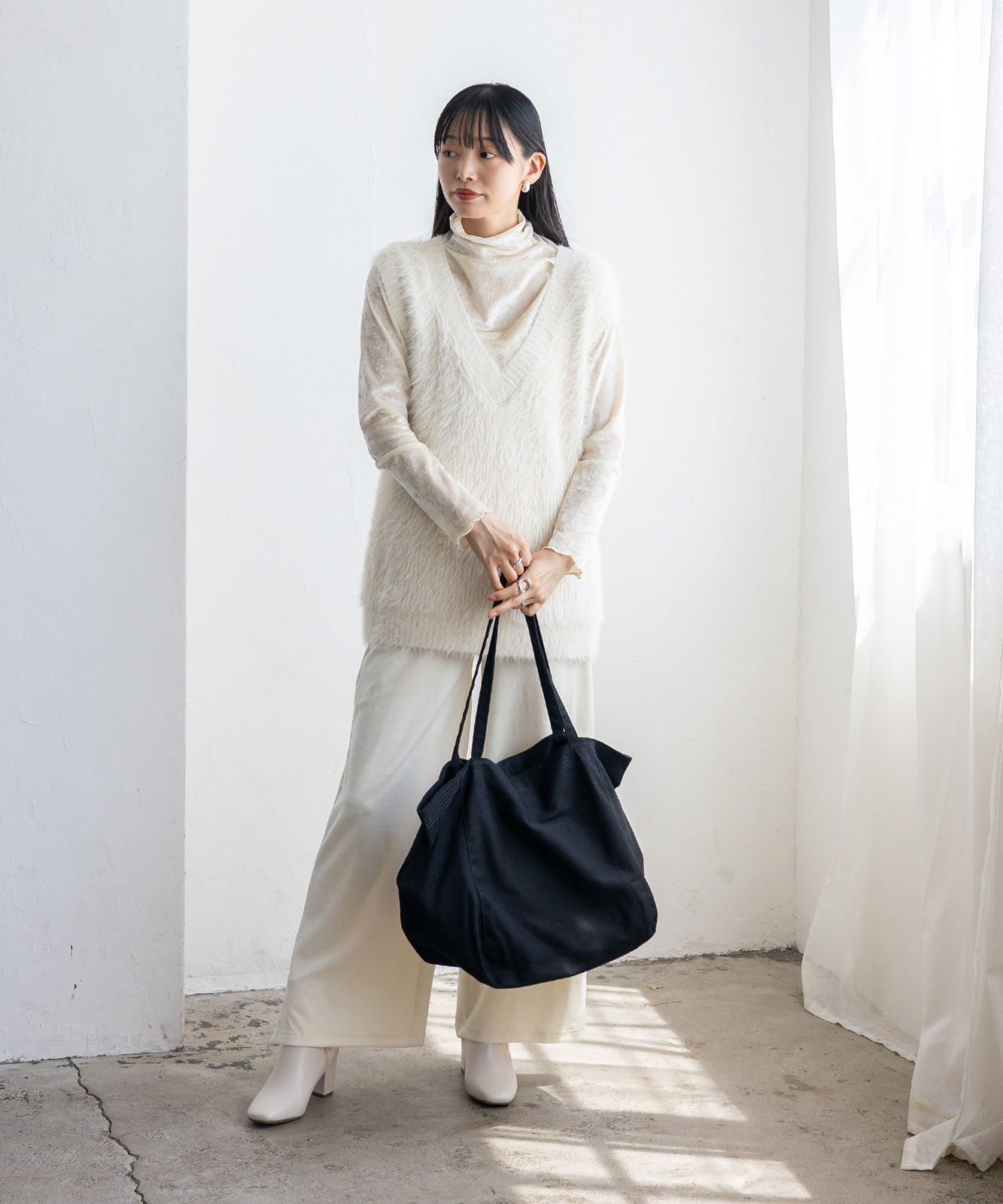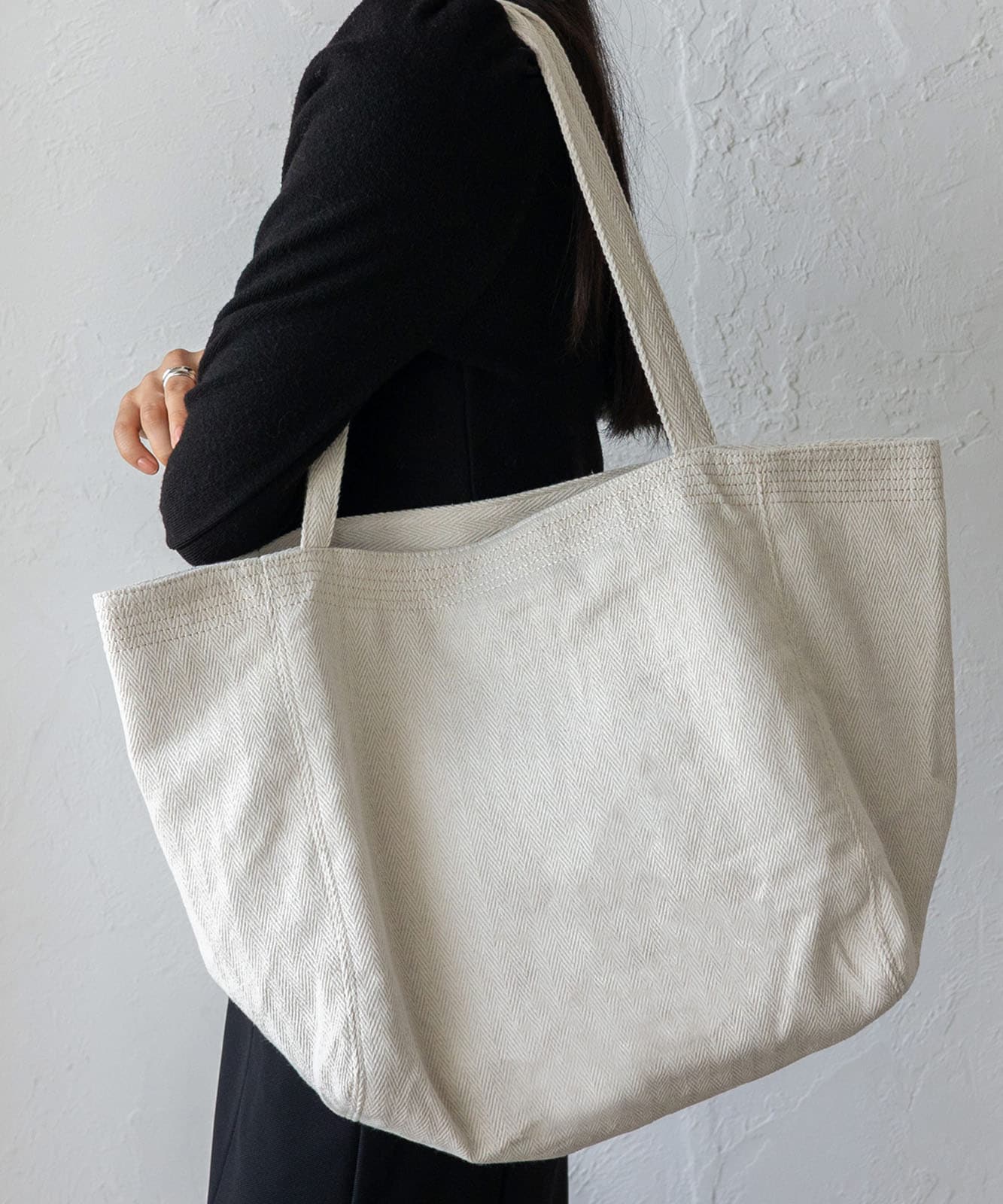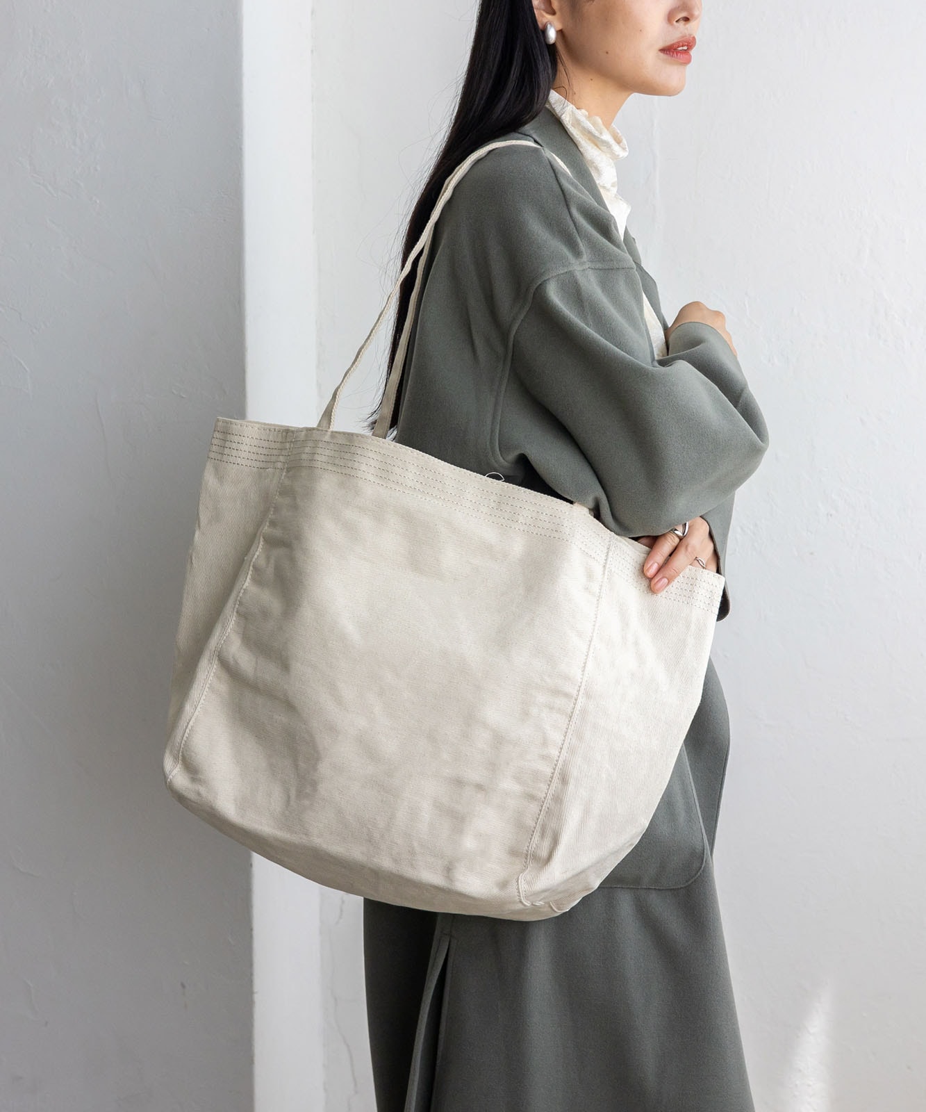 柔らかい仕立てなので、荷物の量や持ち方に合わせてフォルムが変化。