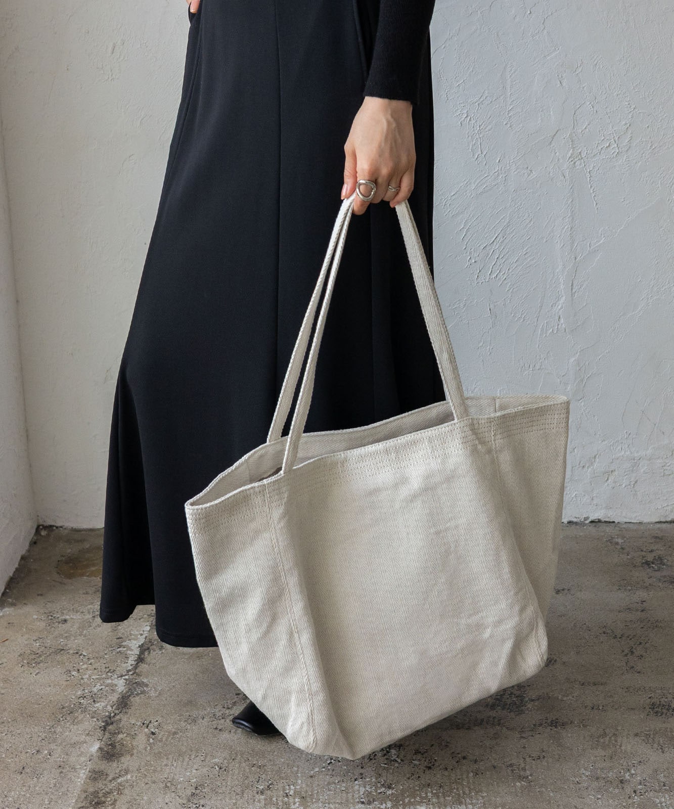 ポリエステルとコットンの混紡素材を使用。丈夫で扱いやすく、デイリーに気軽に持てるのも嬉しいポイントです。