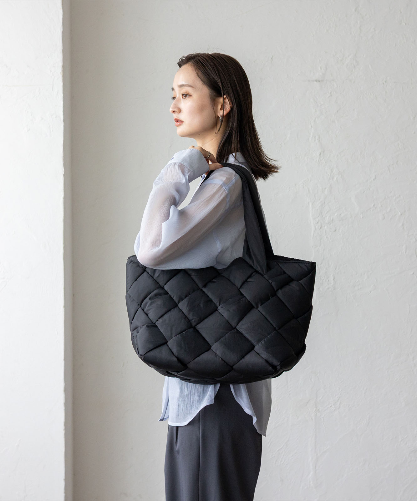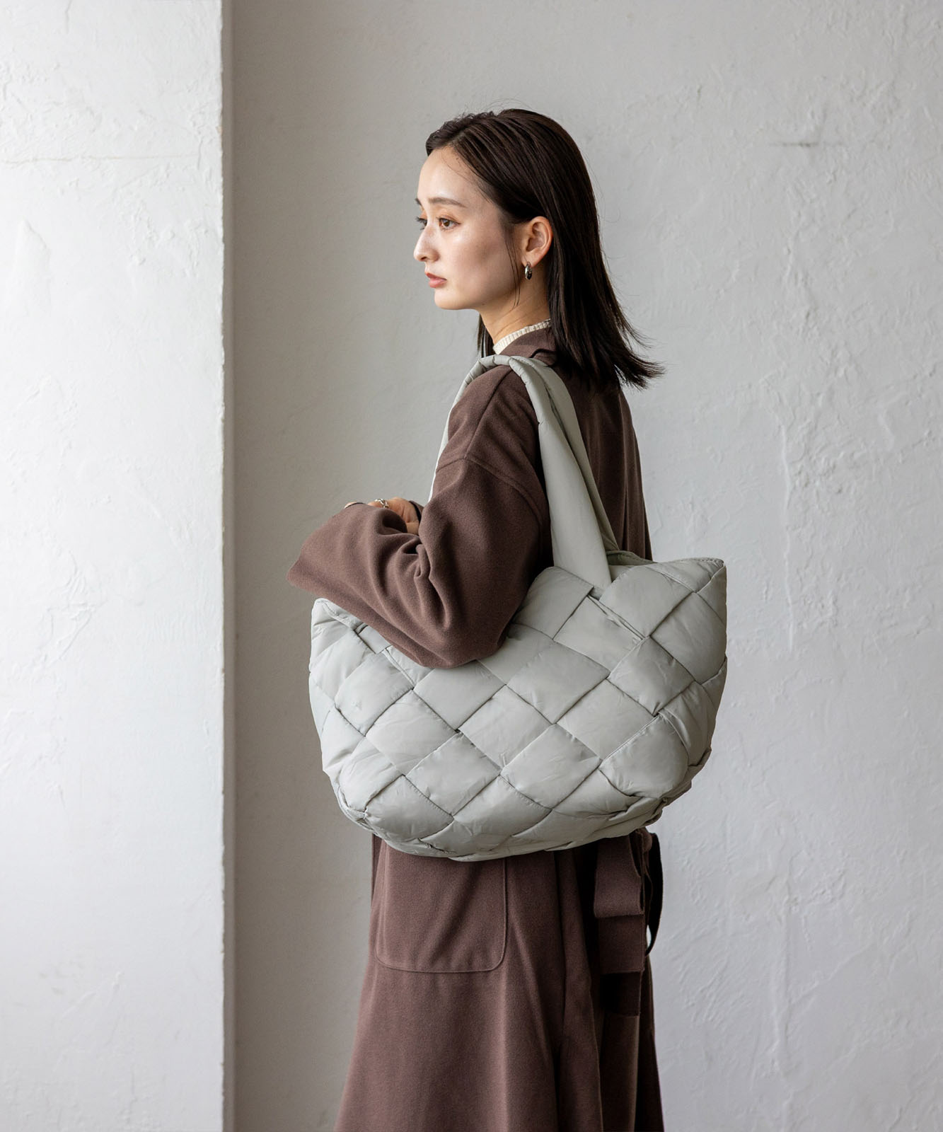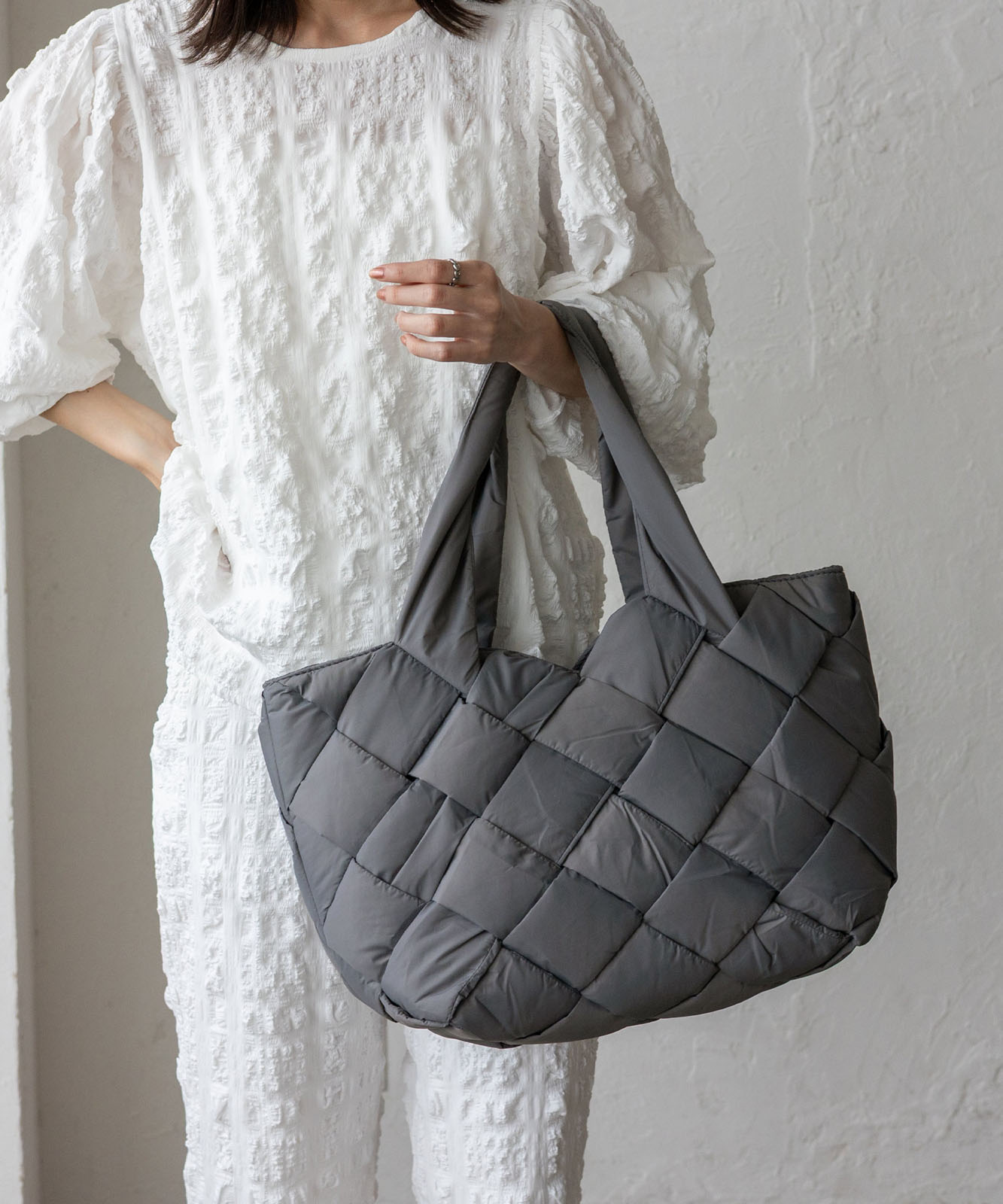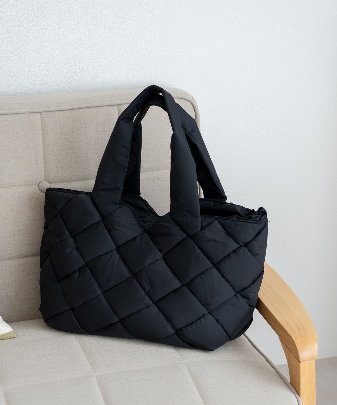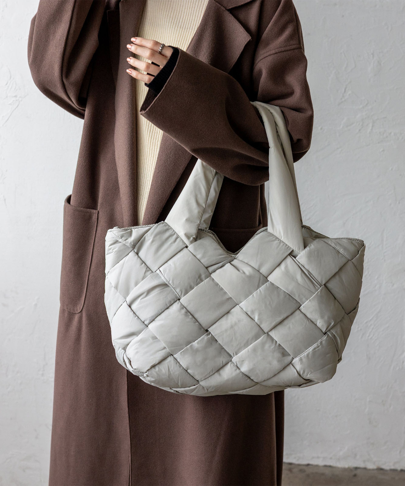 長めのハンドル設計で、アウターを着ても肩掛けしやすく、季節を問わず使える実用的なデザイン。