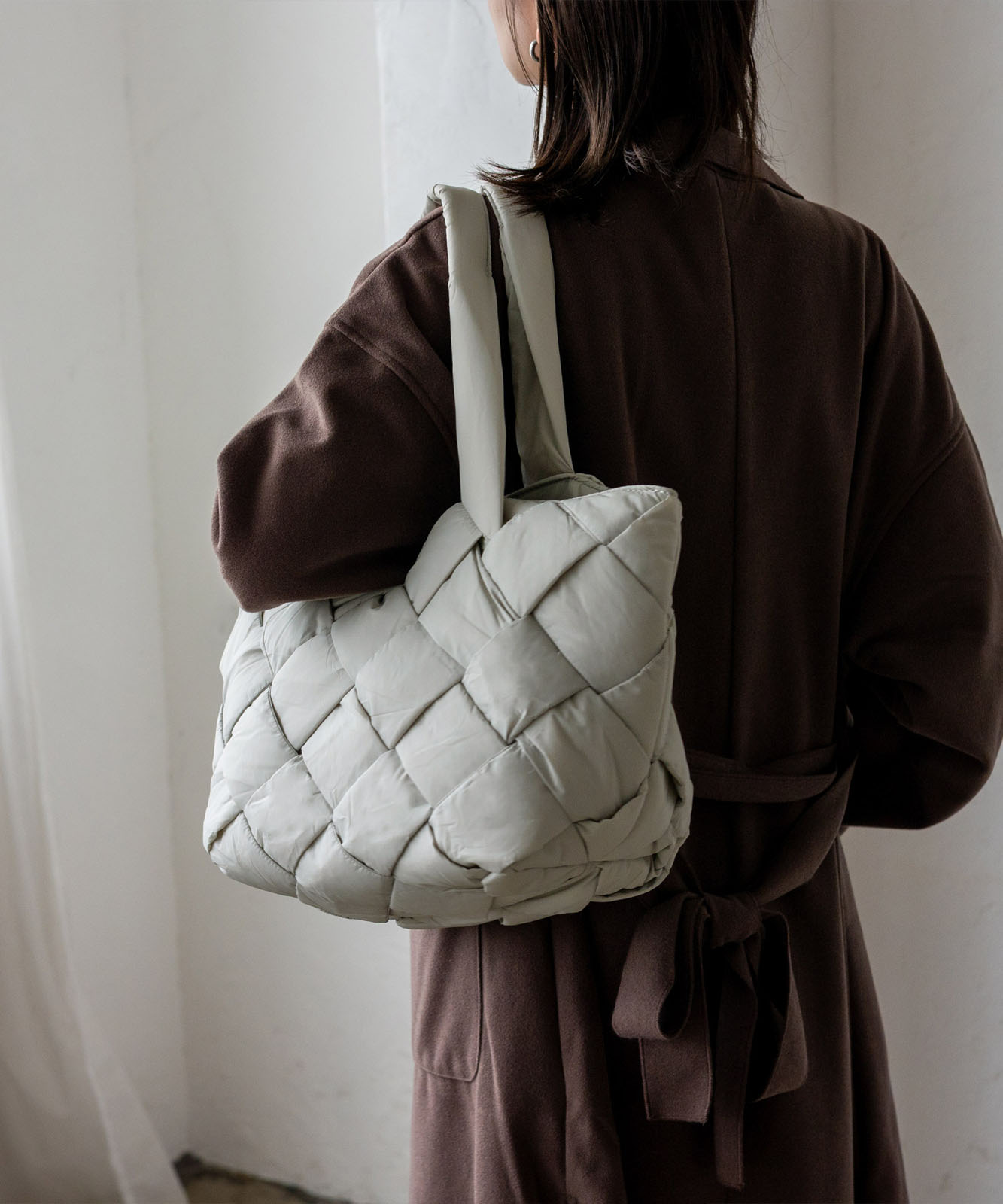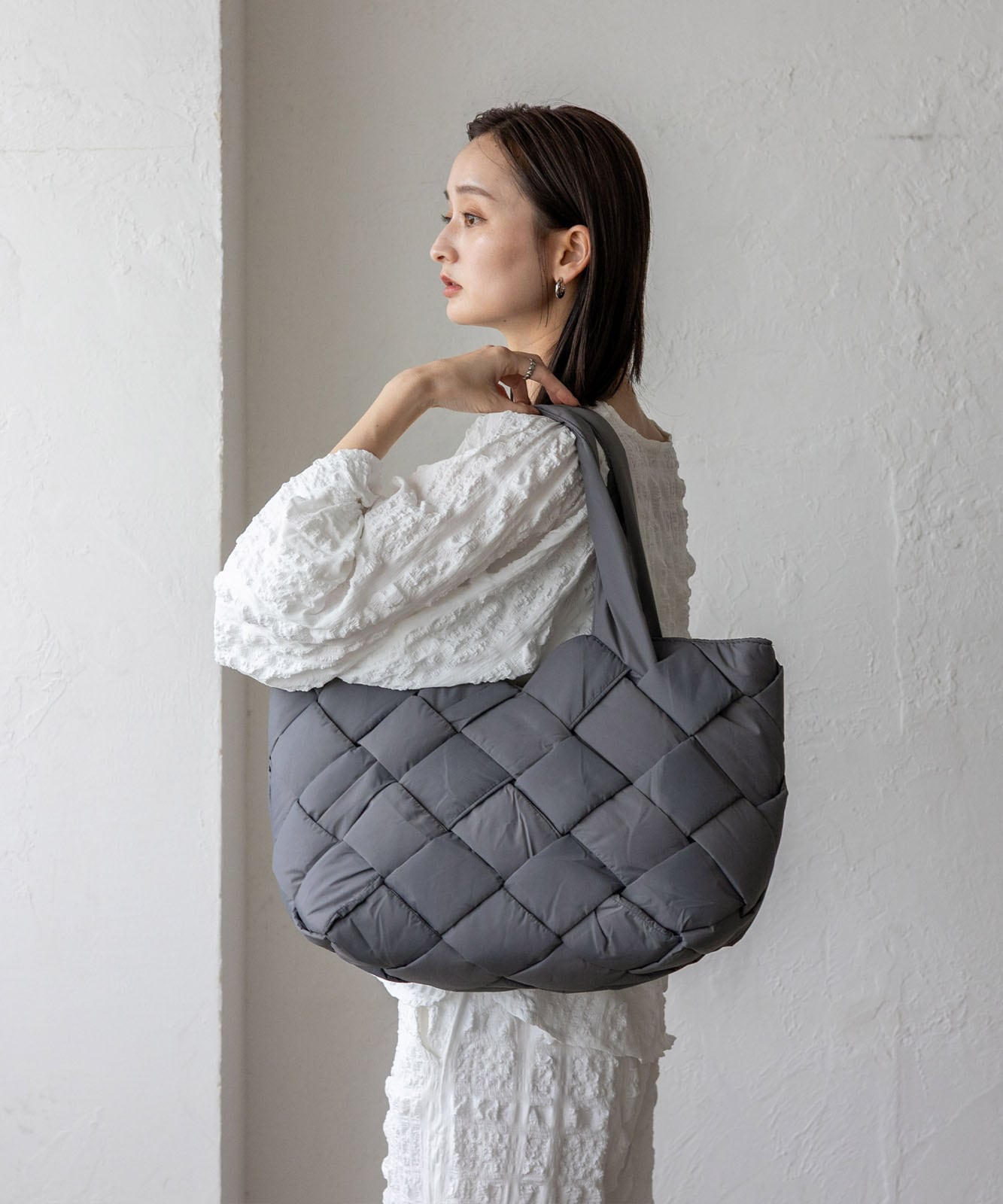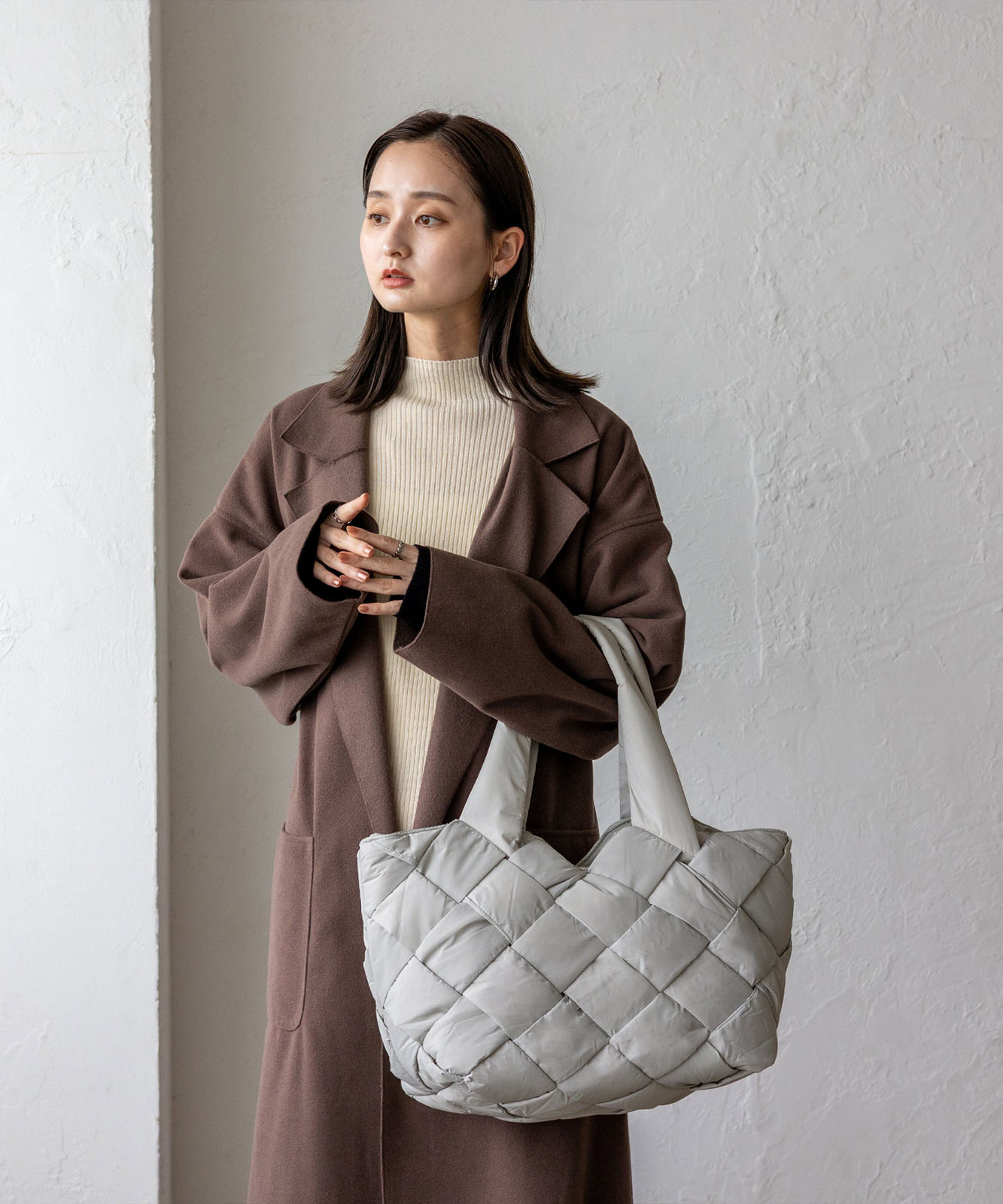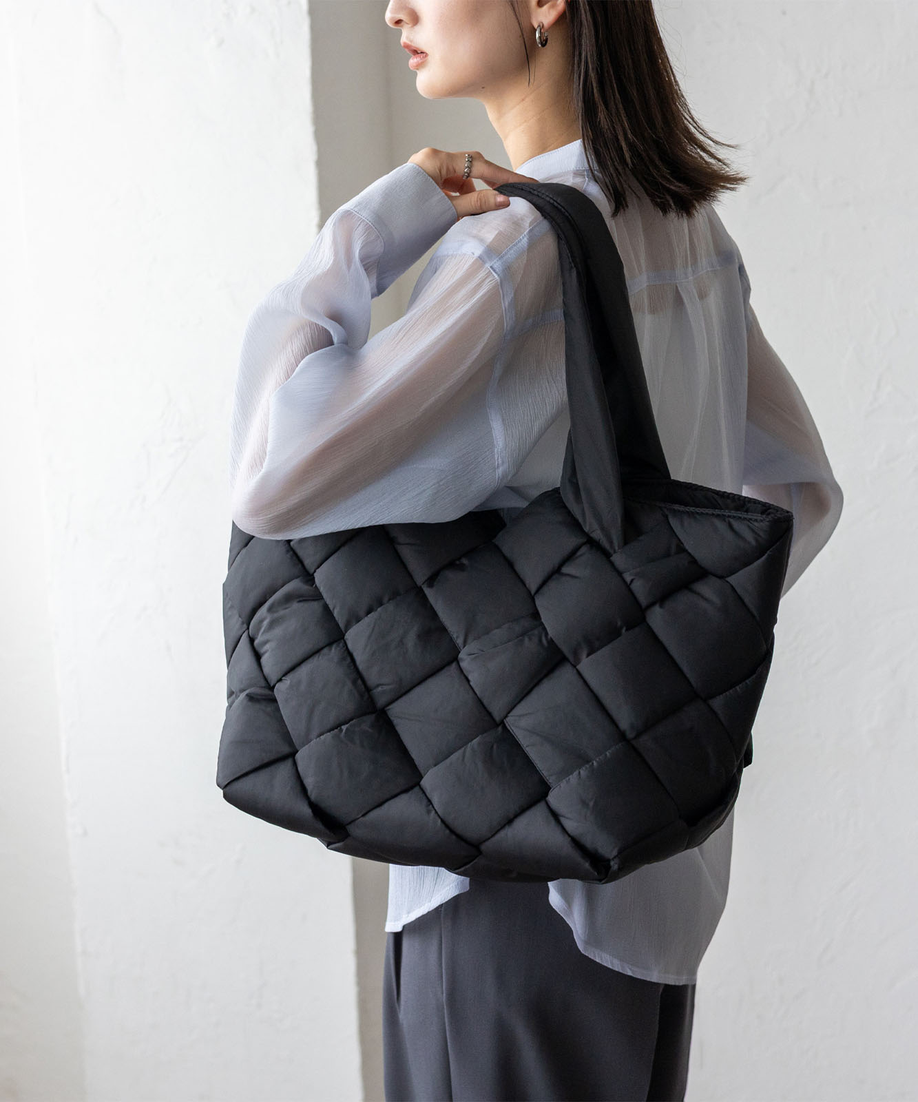 長めのハンドル設計で、アウターを着ても肩掛けしやすく、季節を問わず使える実用的なデザイン。