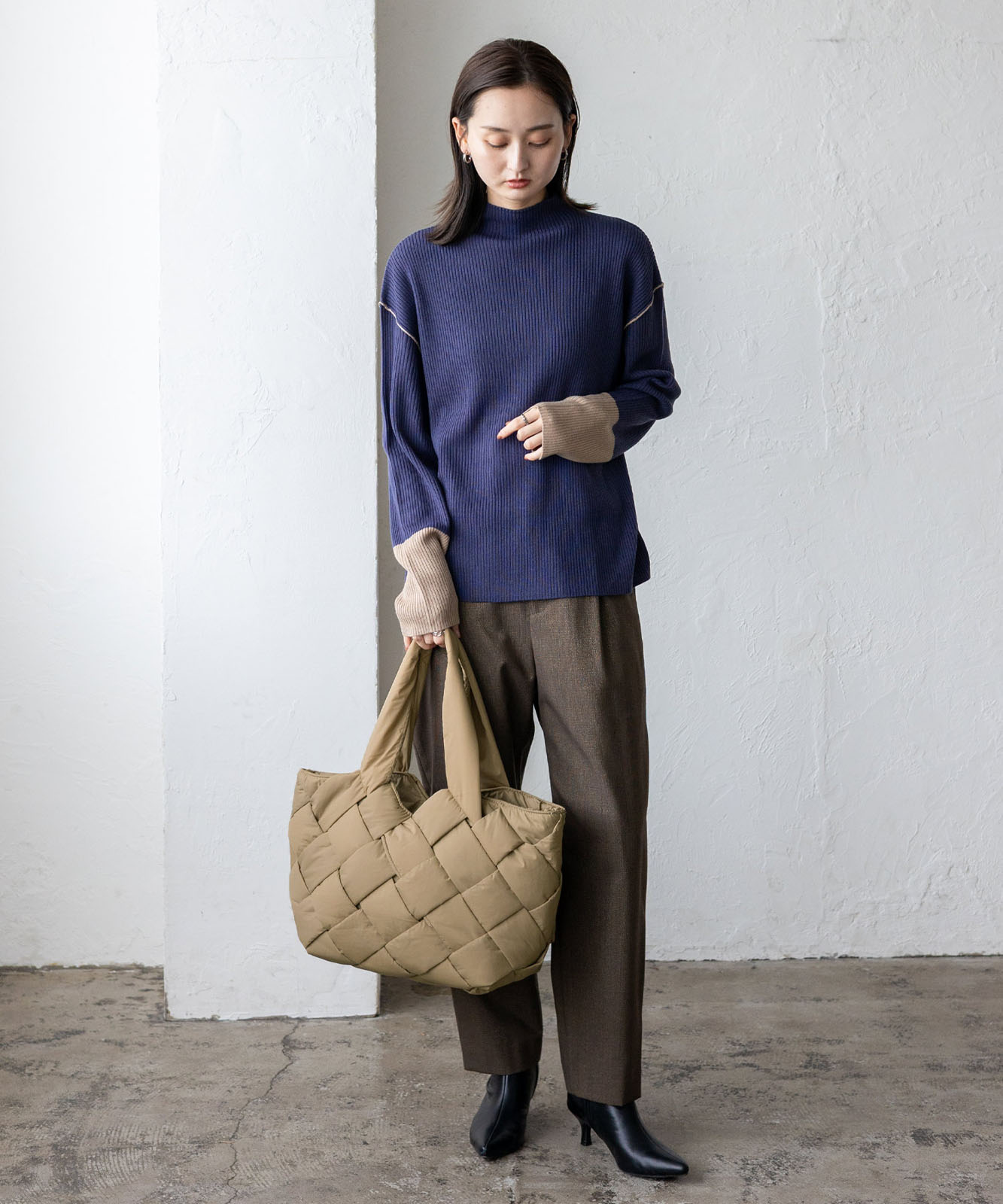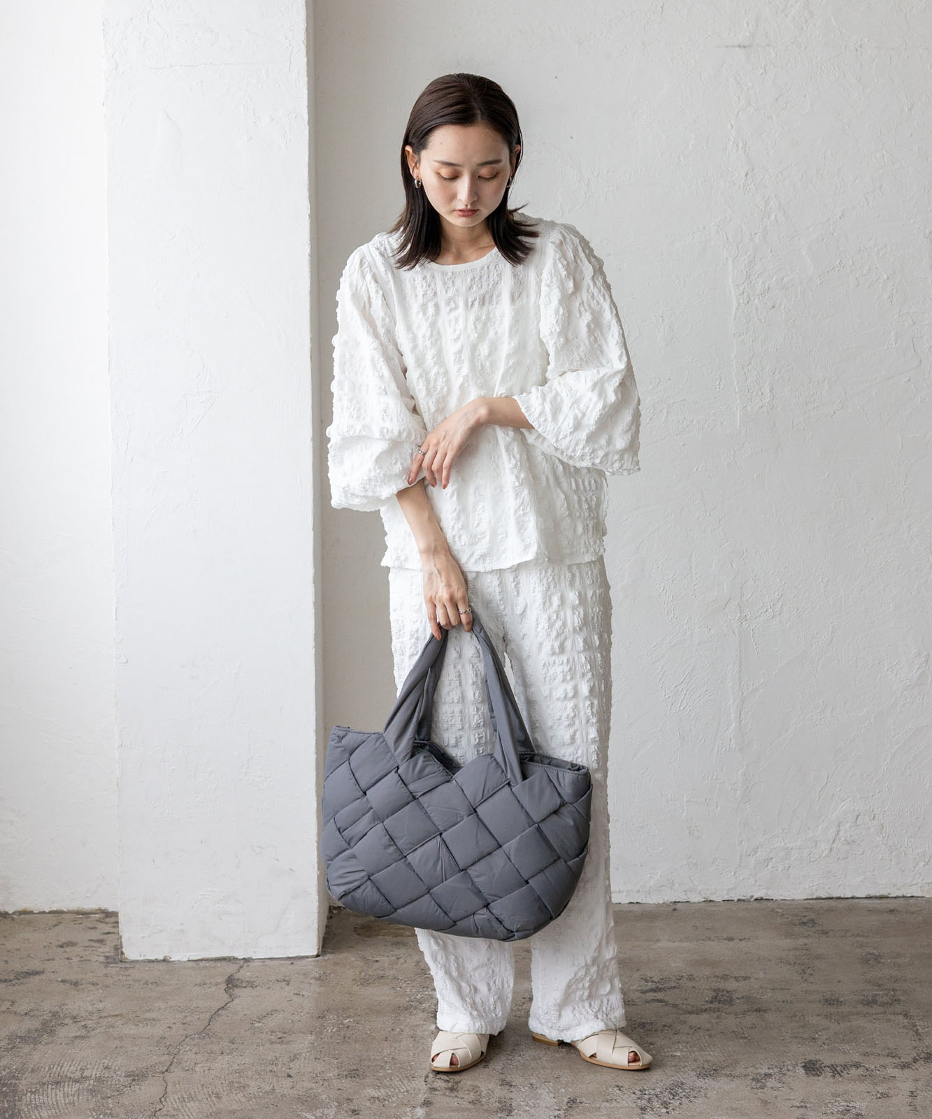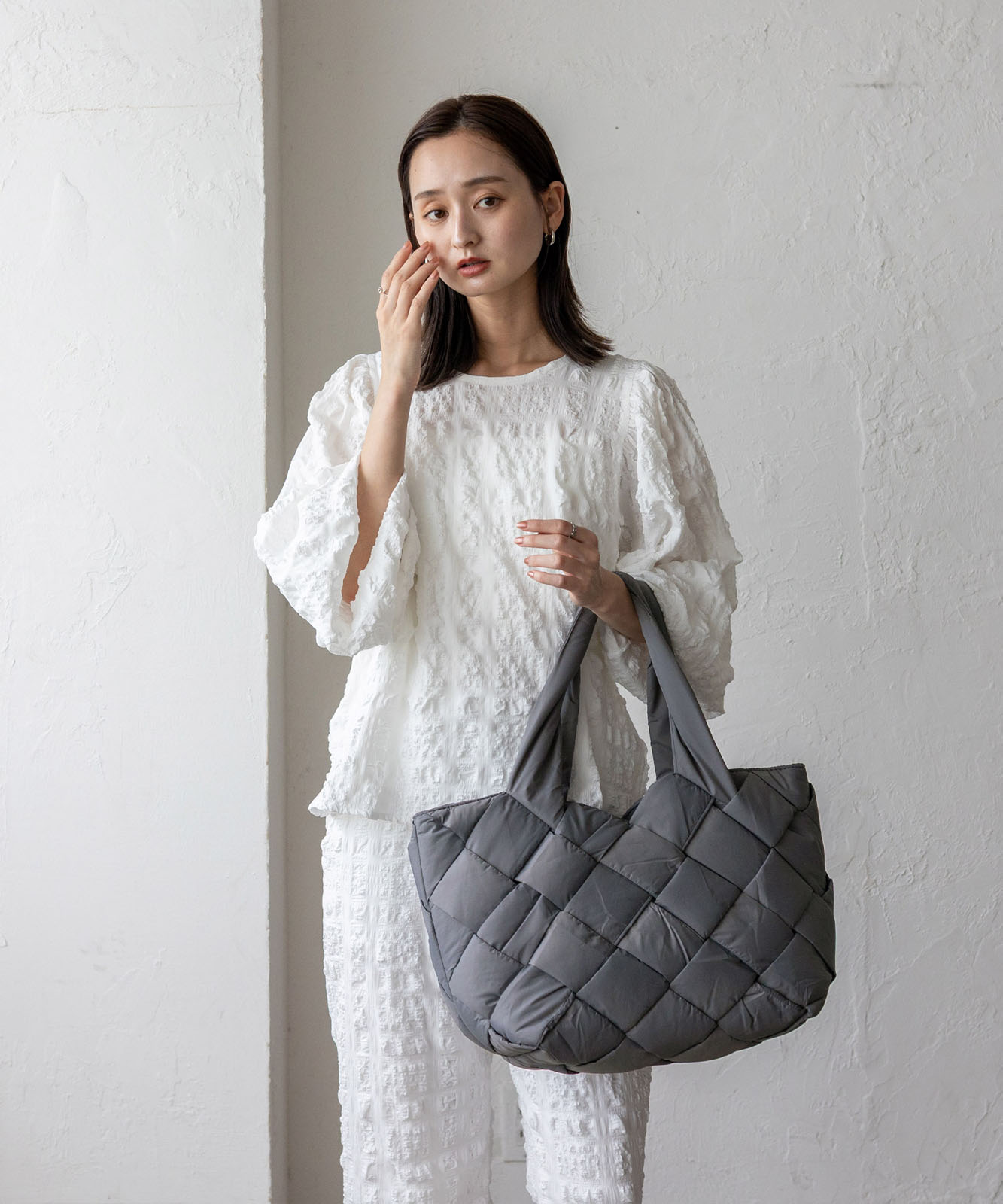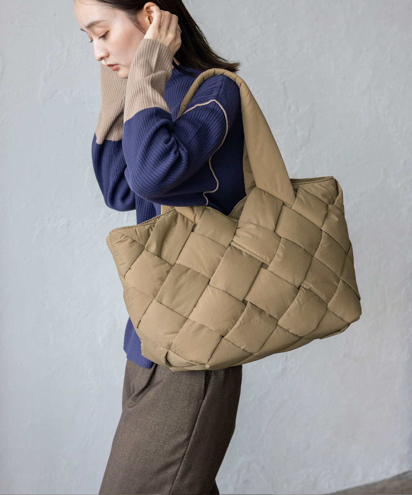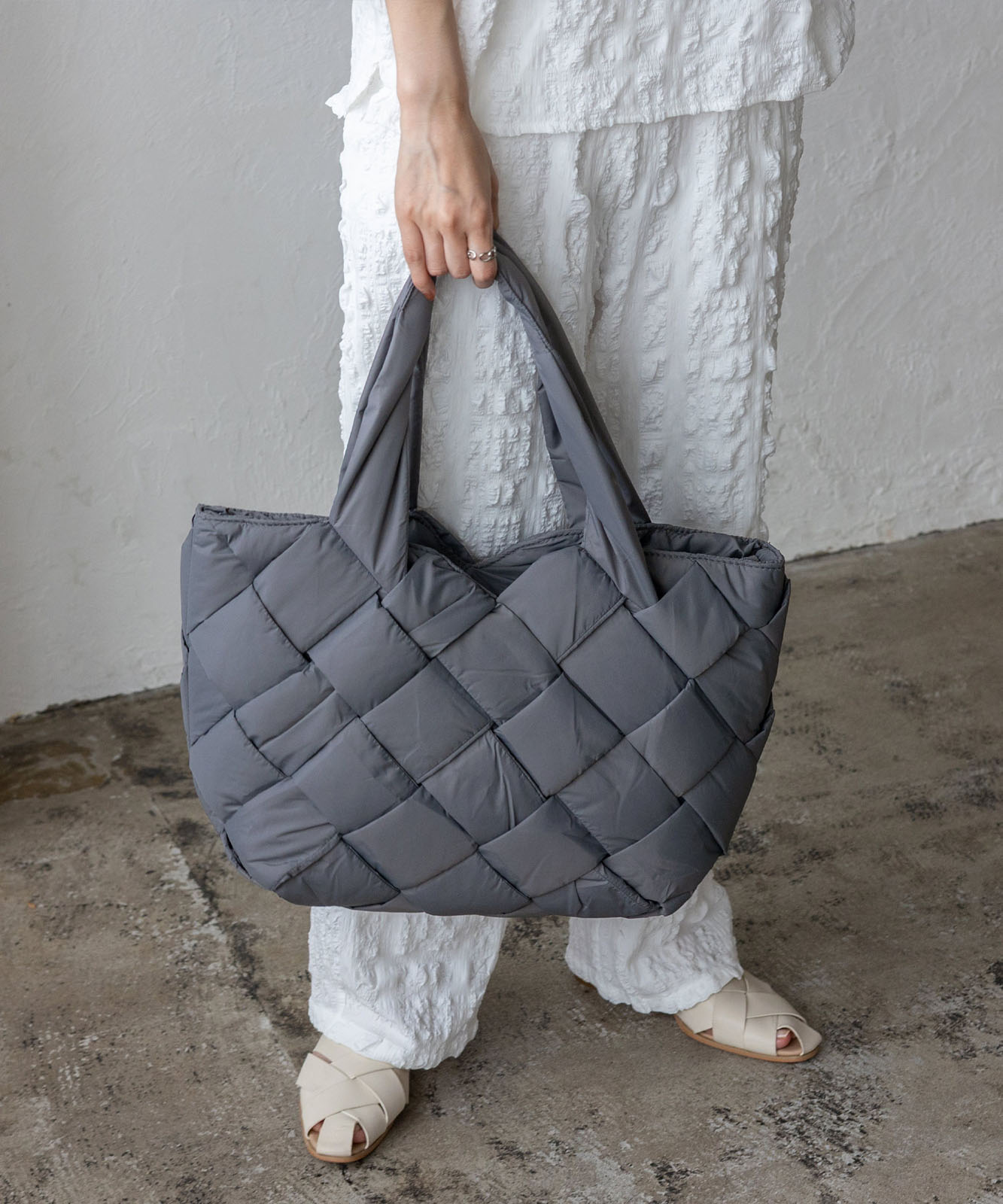 長めのハンドル設計で、アウターを着ても肩掛けしやすく、季節を問わず使える実用的なデザイン。