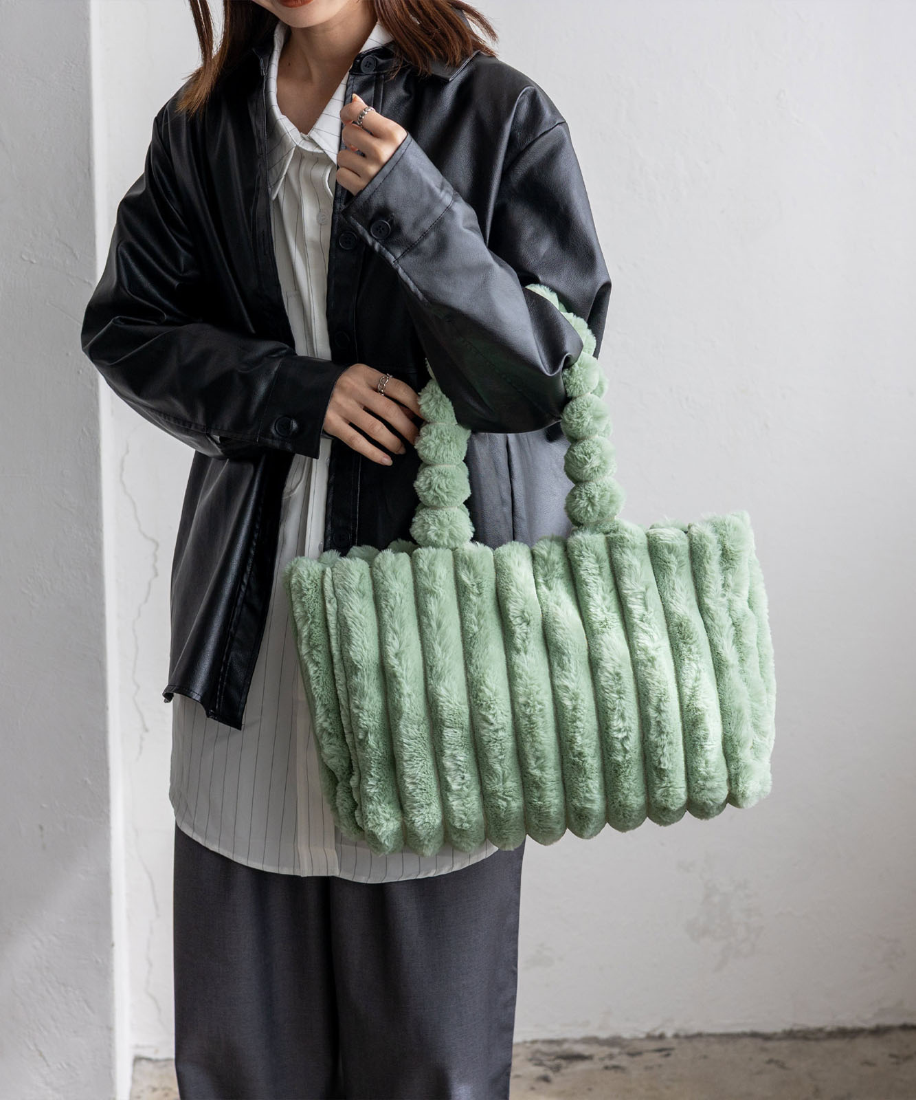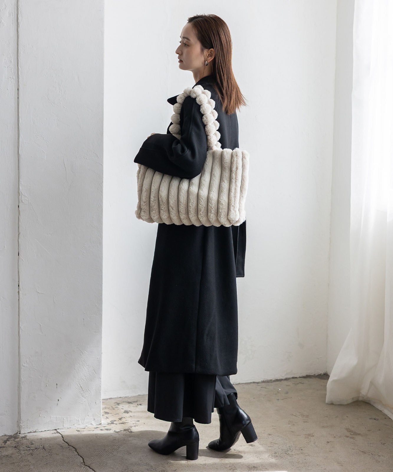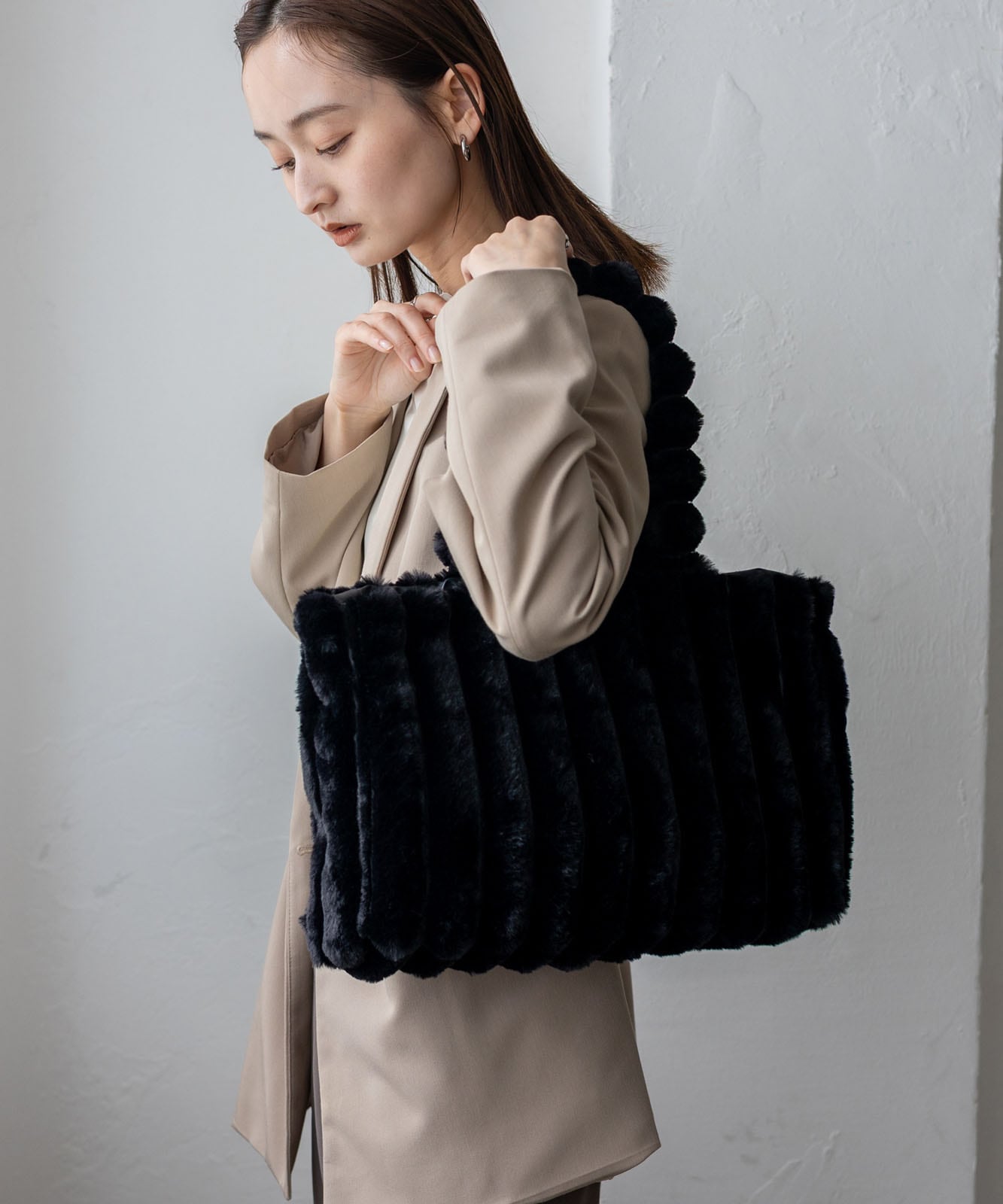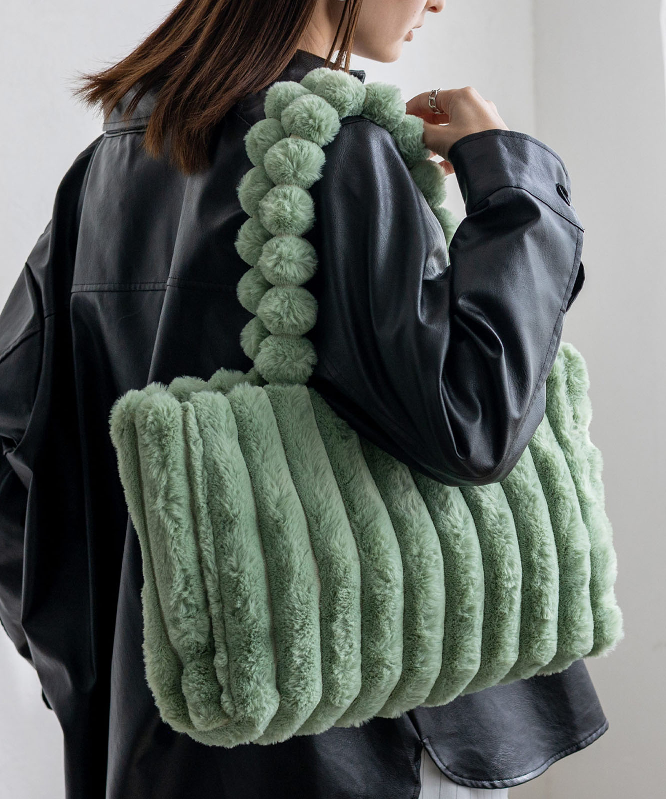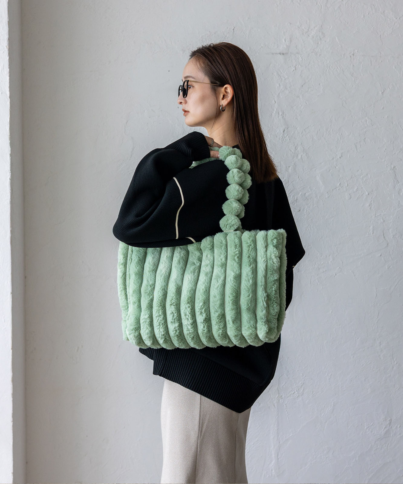 ころんとしたフォルムとふわもこ感が、冬のコーデに季節感と華やかさをプラス。