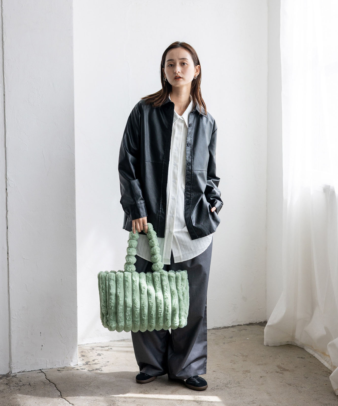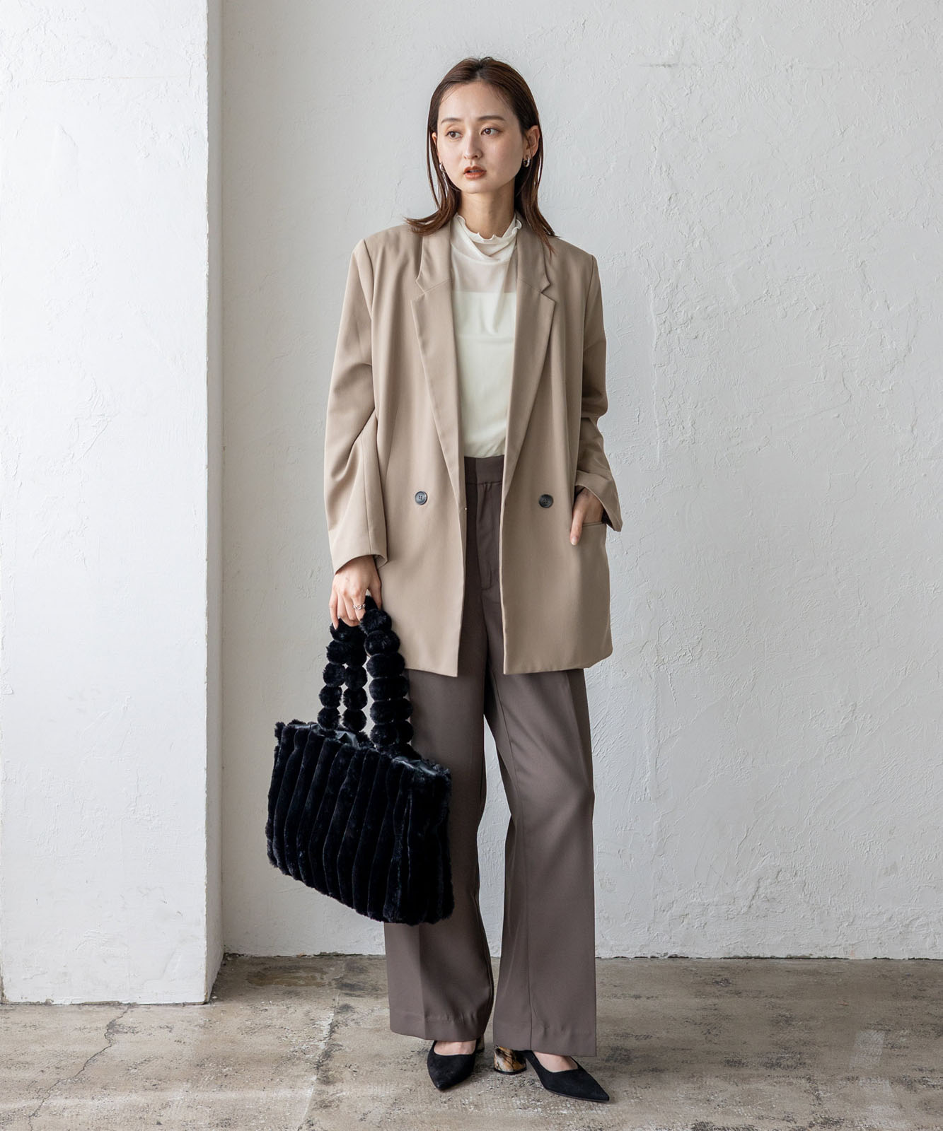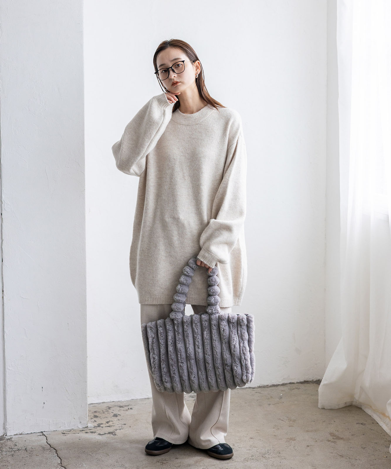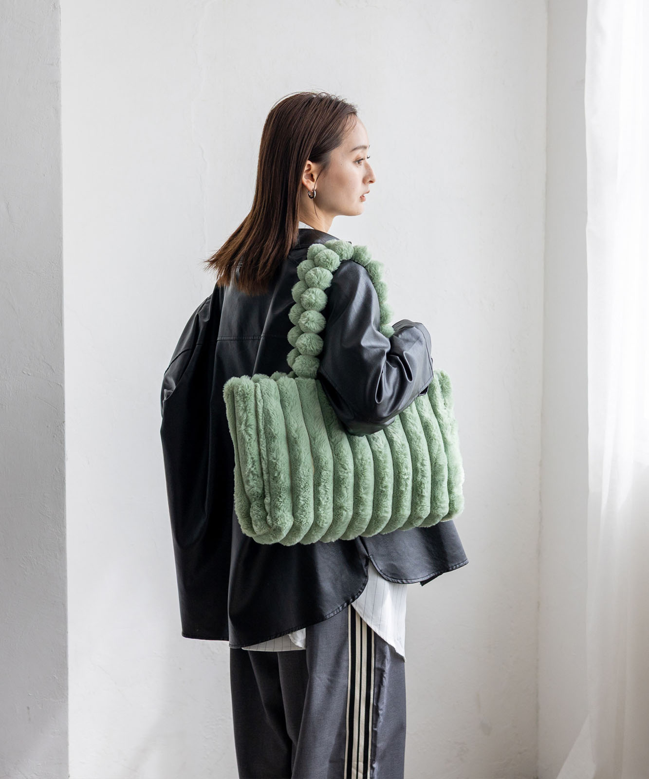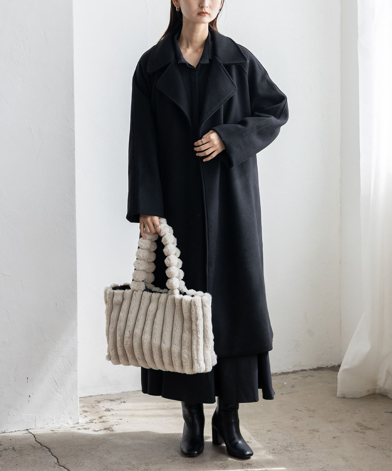 ころんとしたフォルムとふわもこ感が、冬のコーデに季節感と華やかさをプラス。