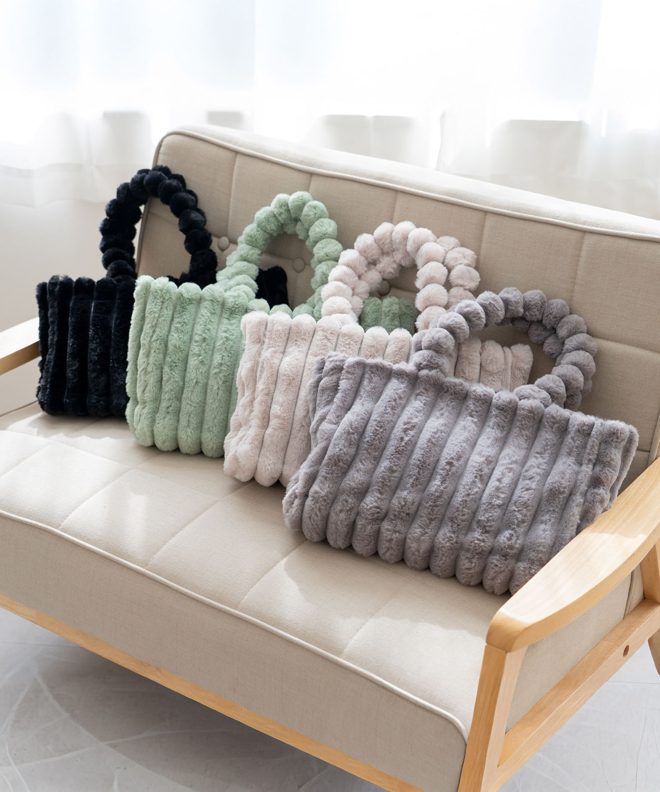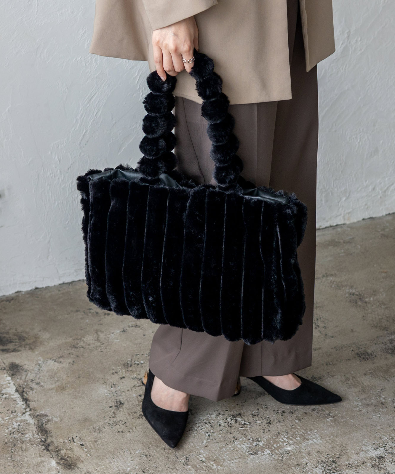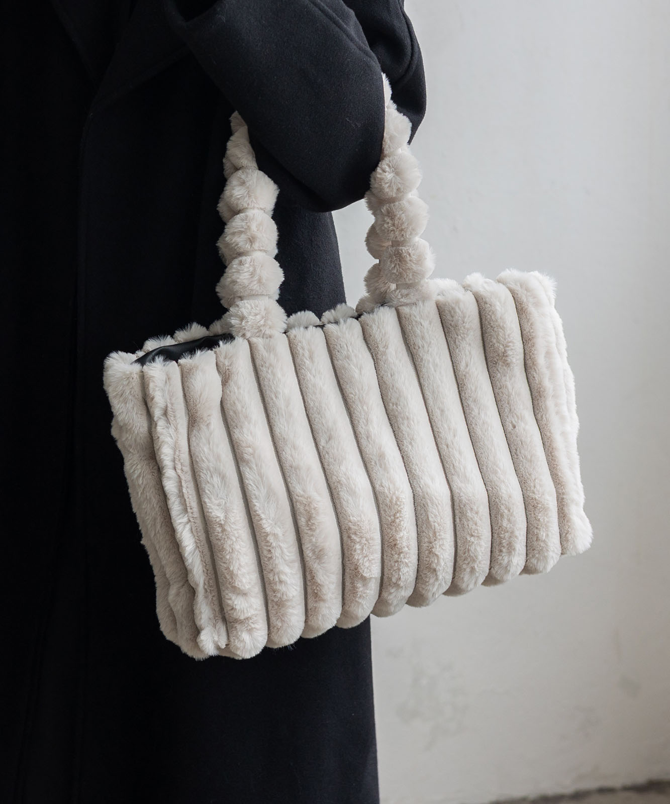 丸みのあるボールハンドルと、上質なフェイクファー素材が印象的なボールハンドル ファートートバッグ。