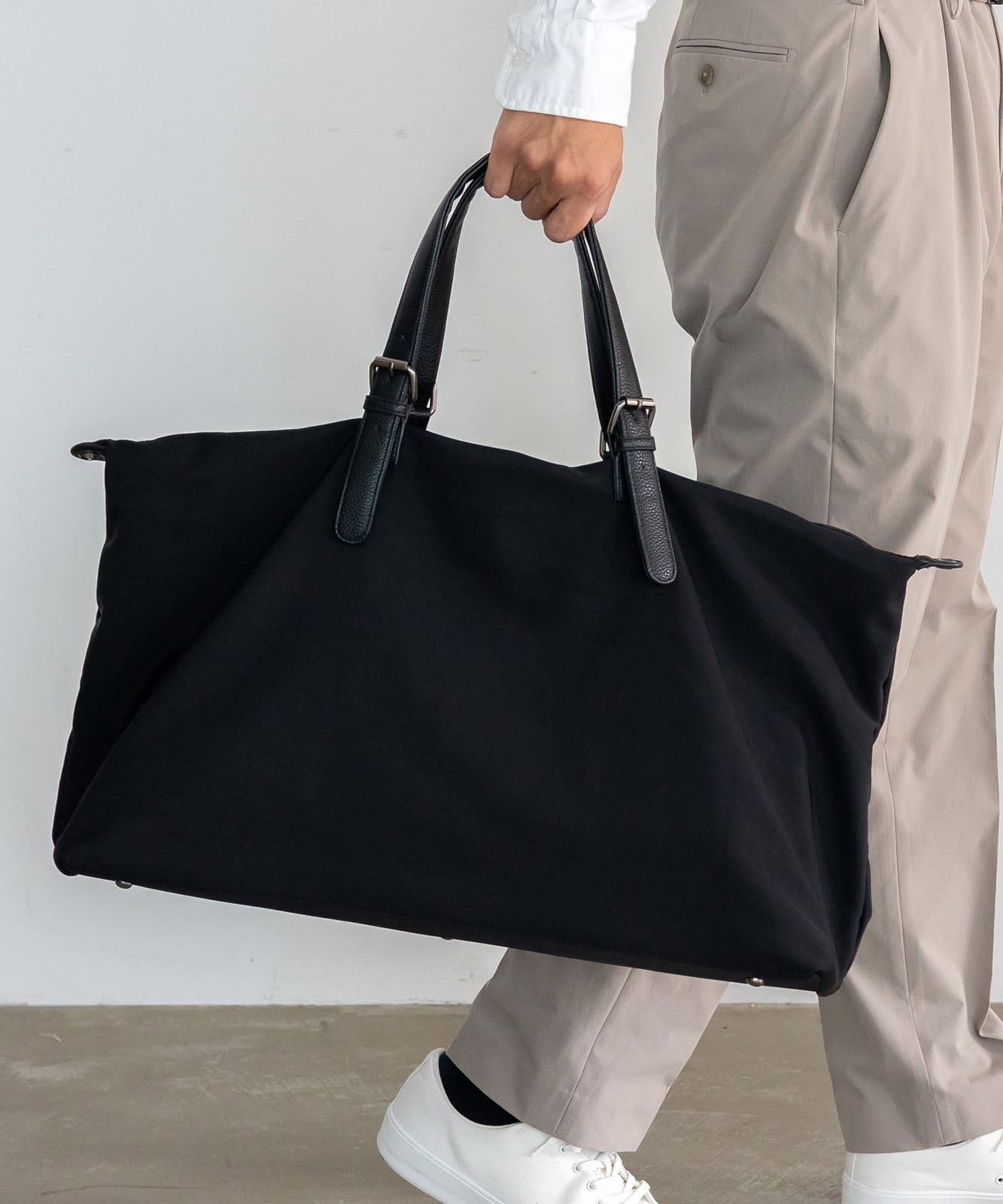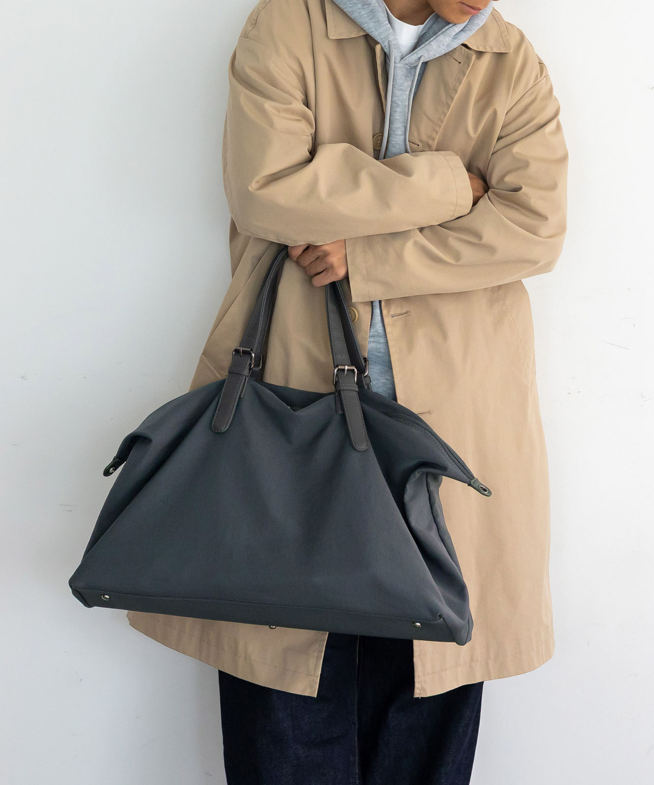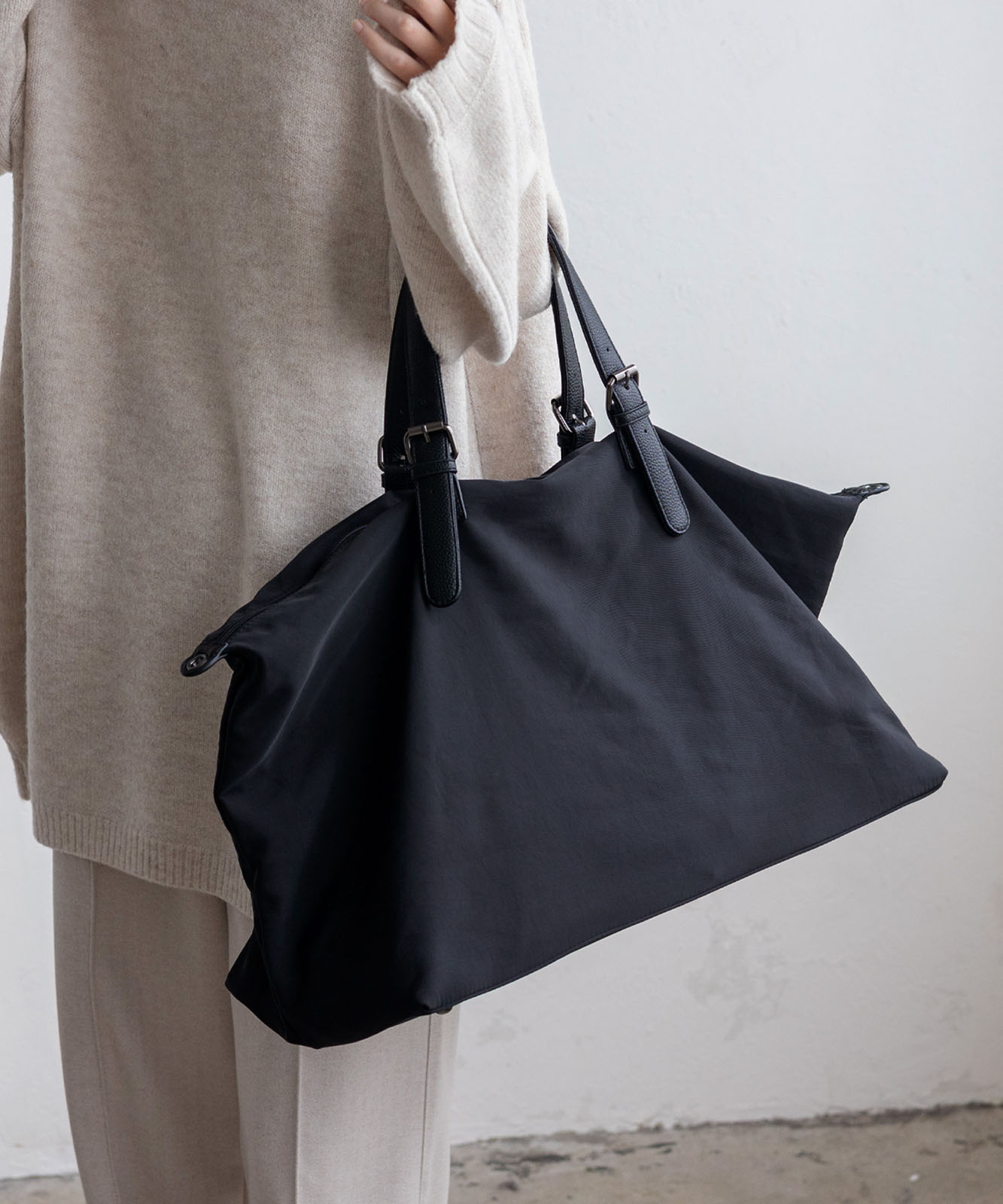 しなやかなナイロン素材を使用し、荷物の量に合わせて自然にシルエットが変化。