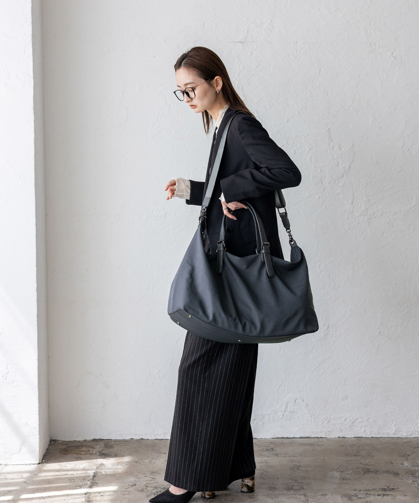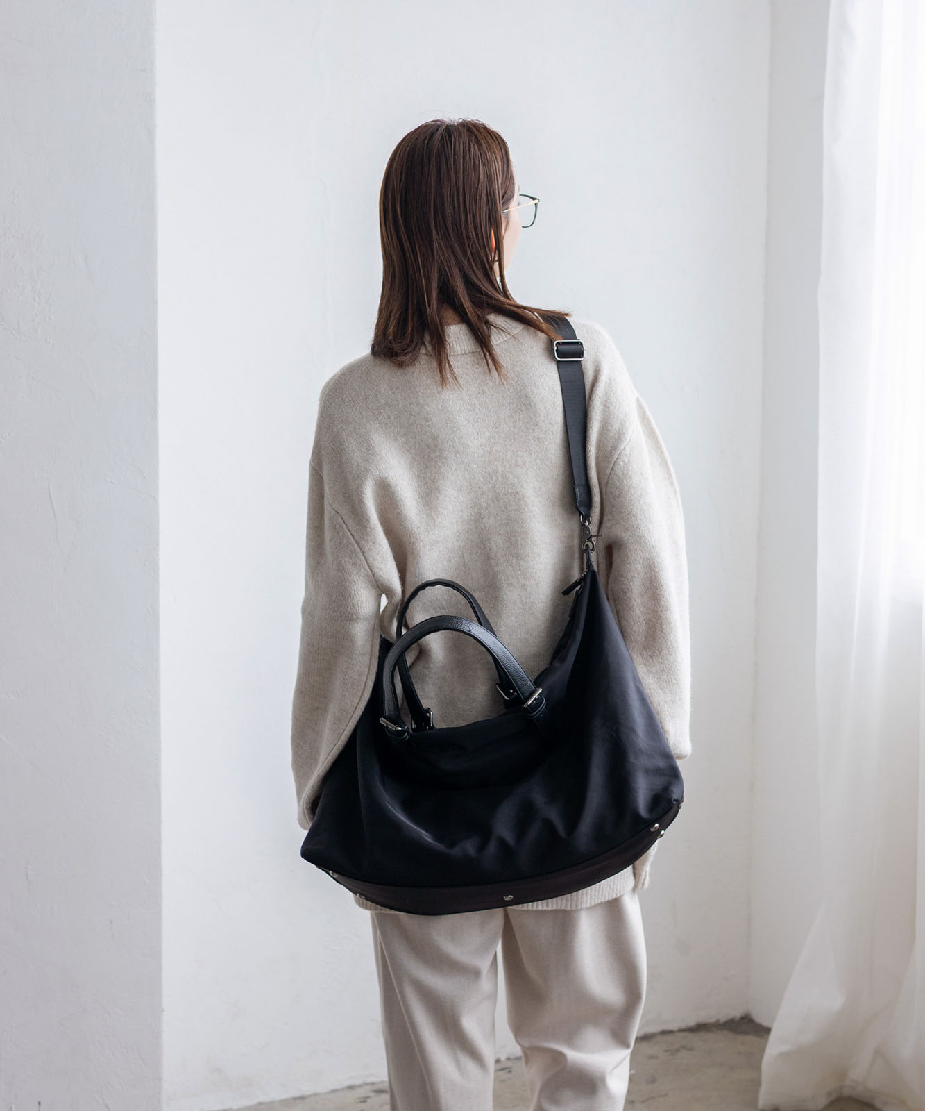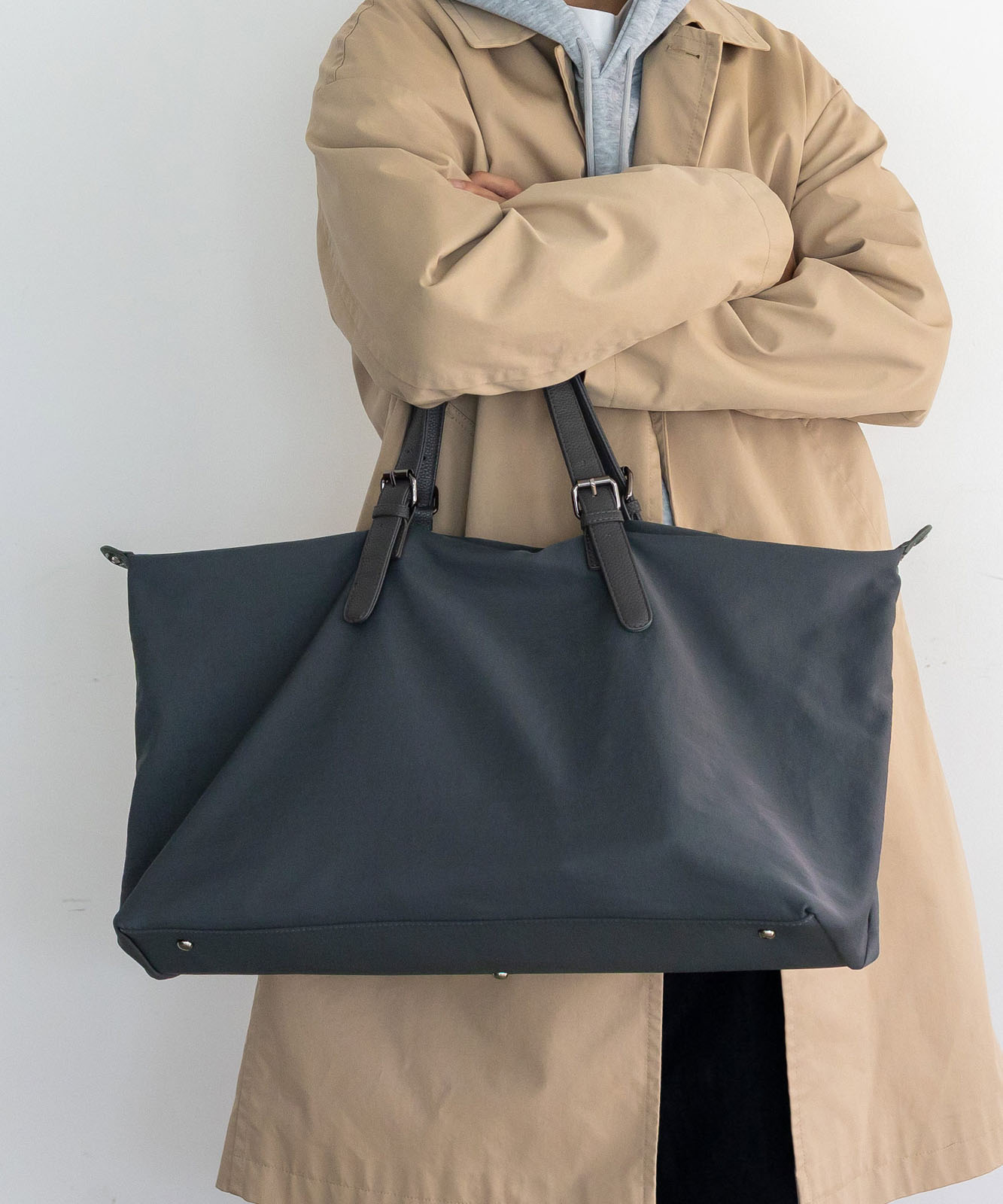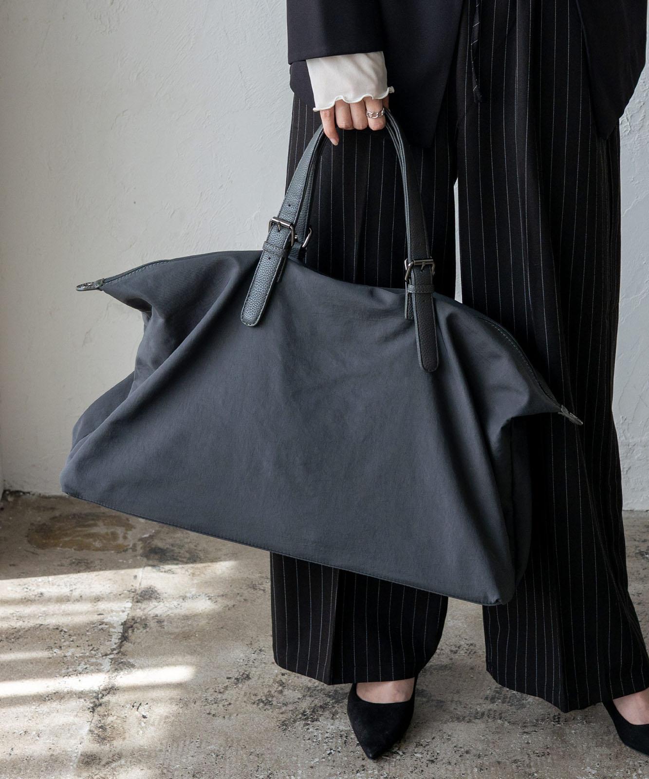 しなやかなナイロン素材を使用し、荷物の量に合わせて自然にシルエットが変化。