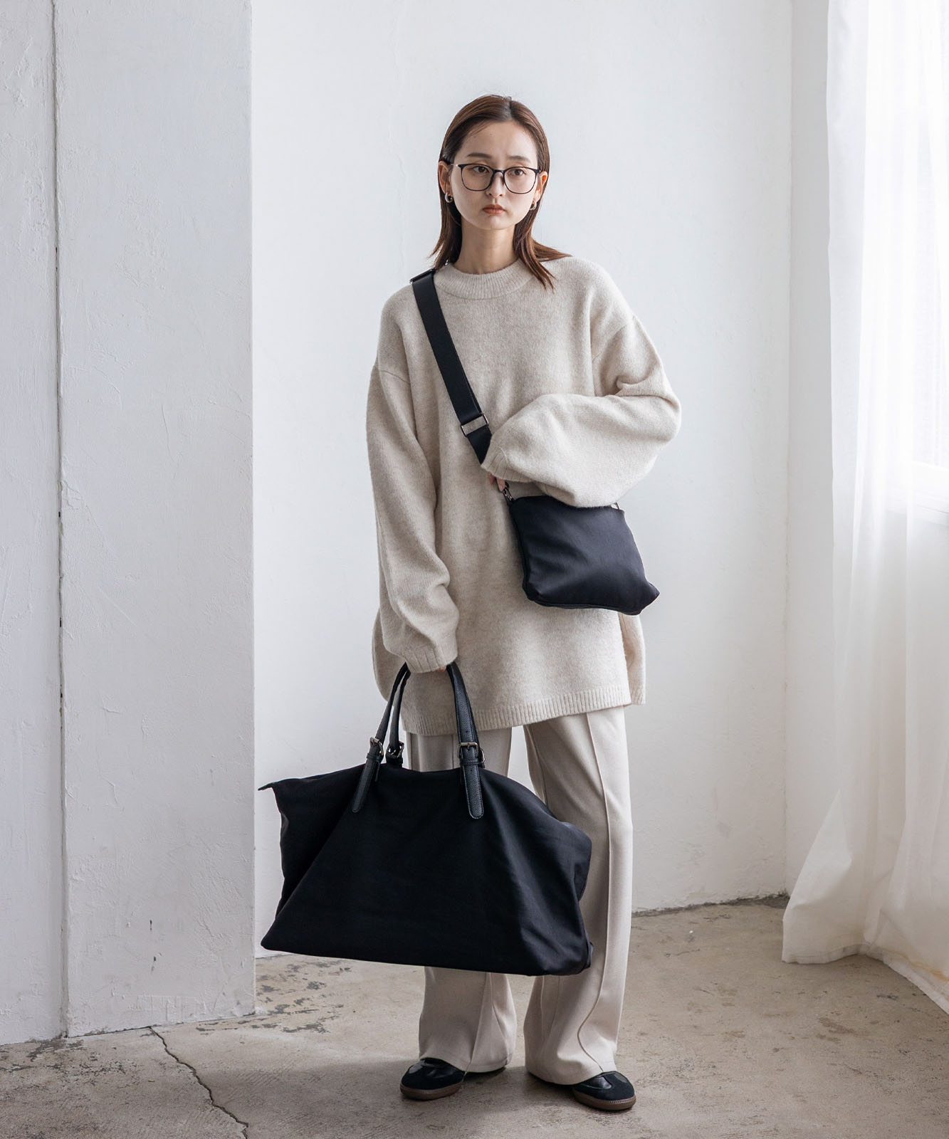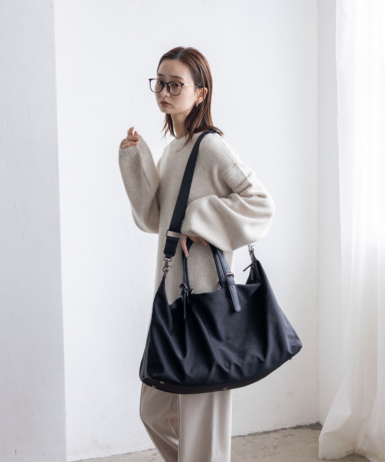 たっぷり入れても軽く、荷物が少ない時はくったりコンパクトに持てます。