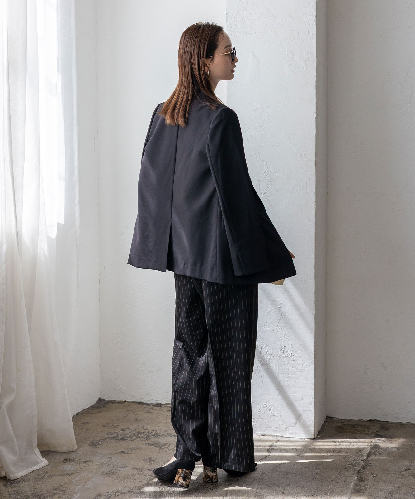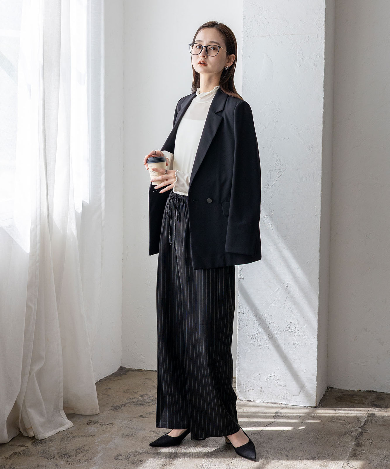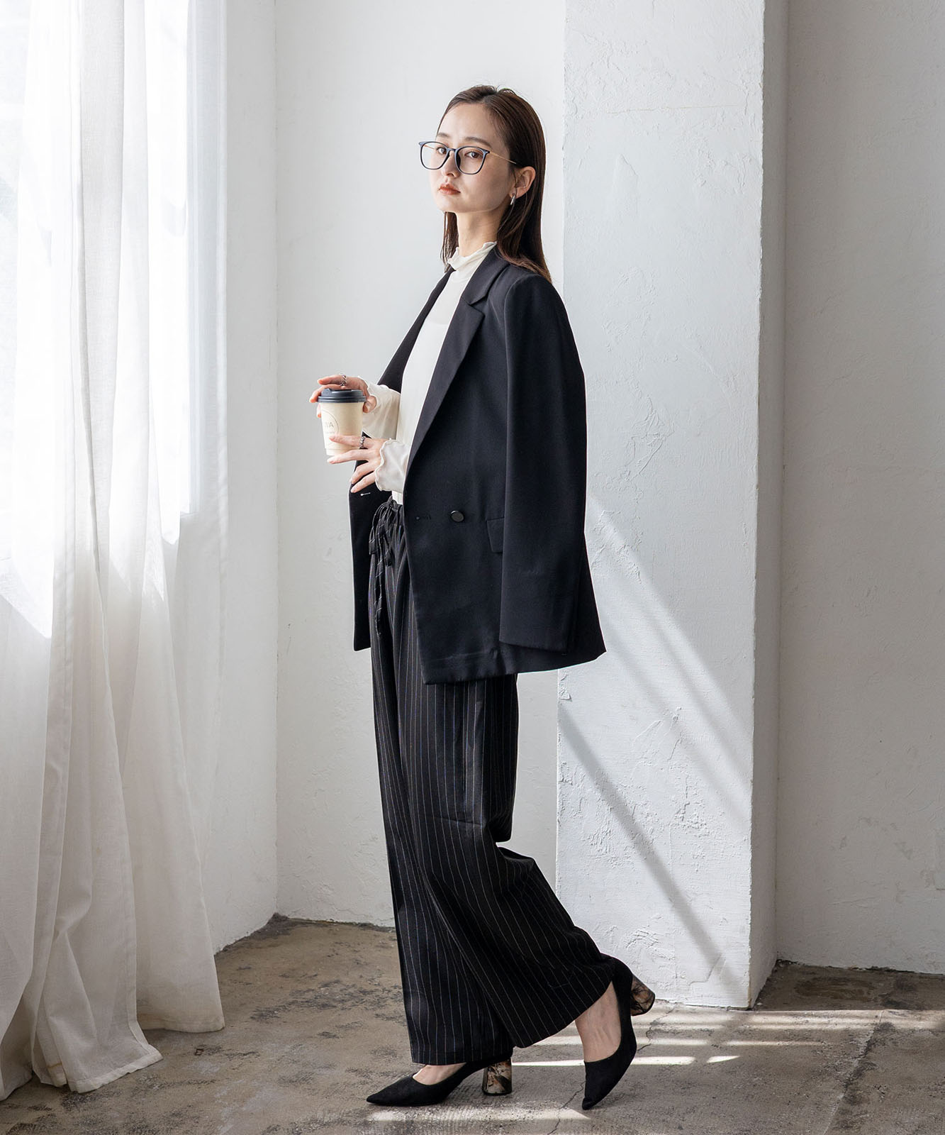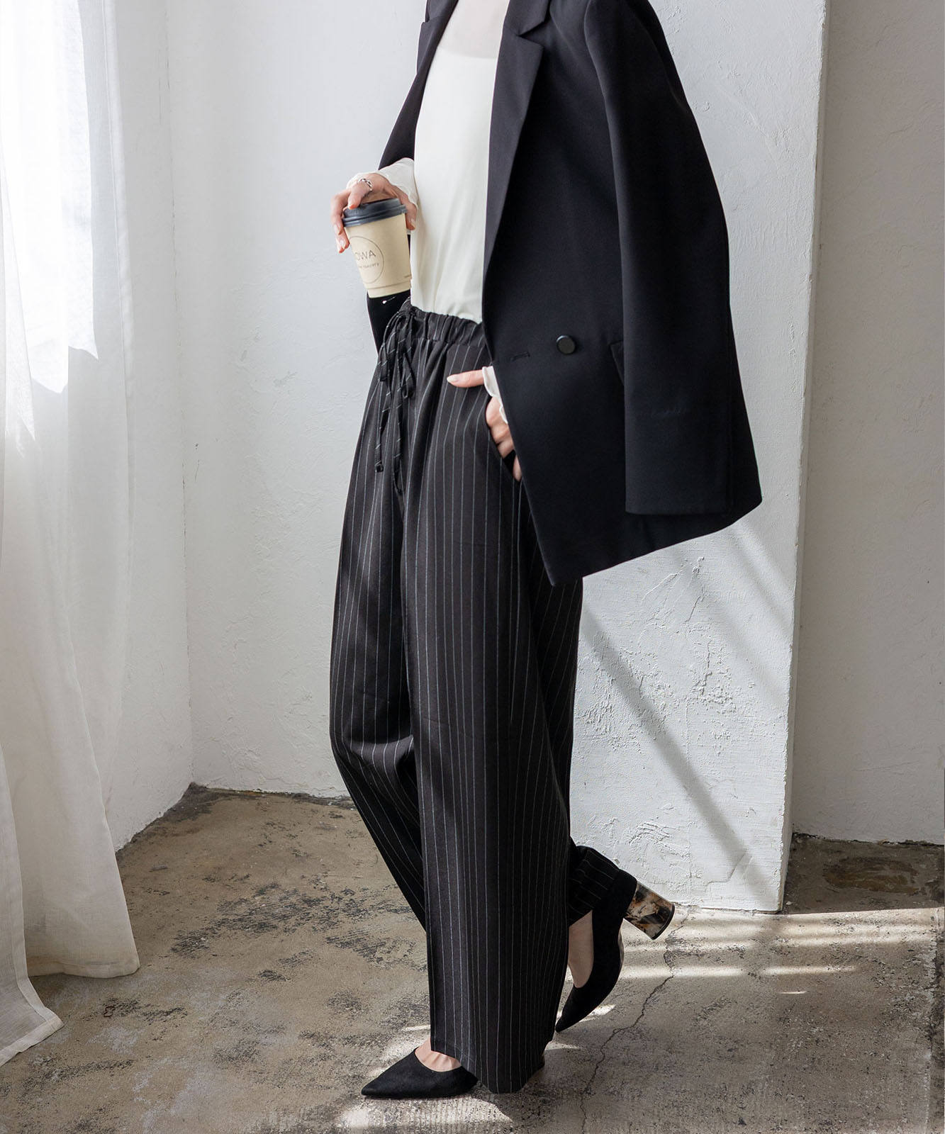 ピンストライプの縦ラインが、全体をスマートに引き締め。