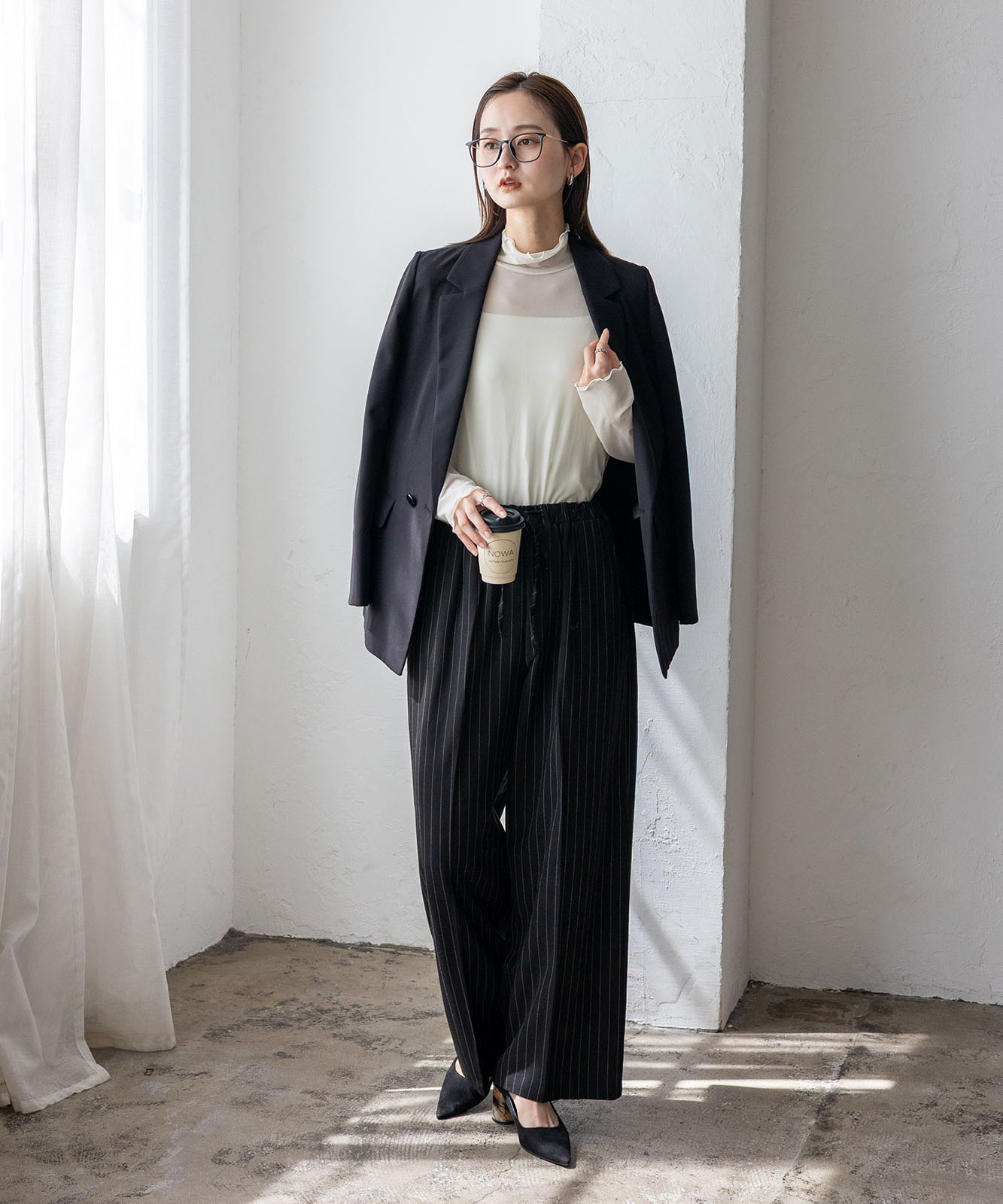 ワイドシルエットでもすっきりとした印象で、スタイルアップ効果も◎。