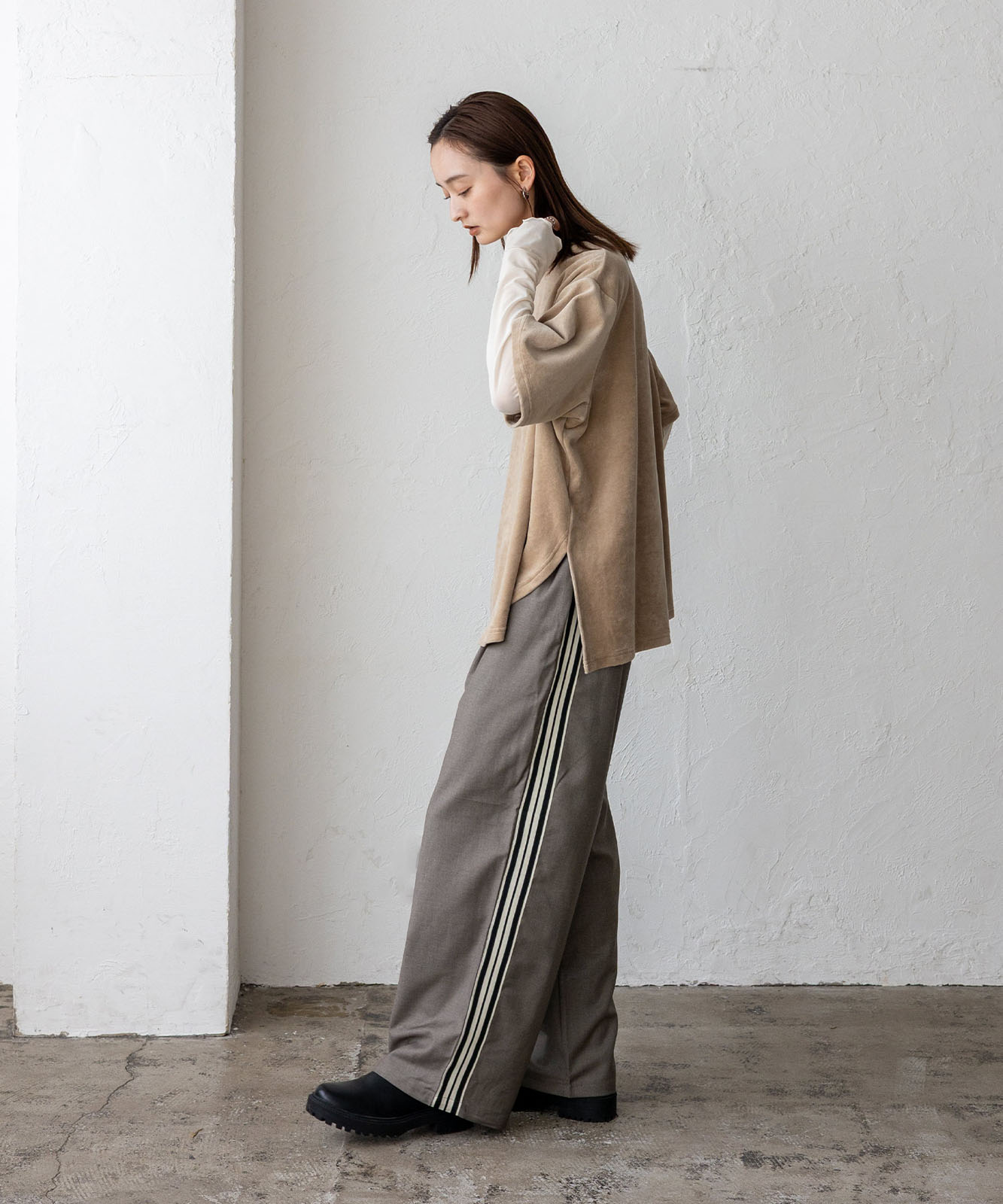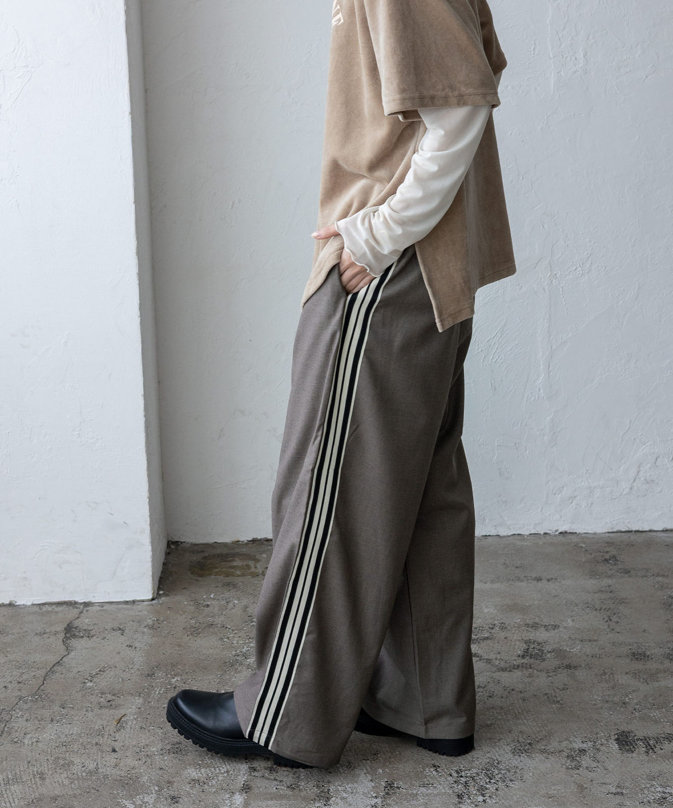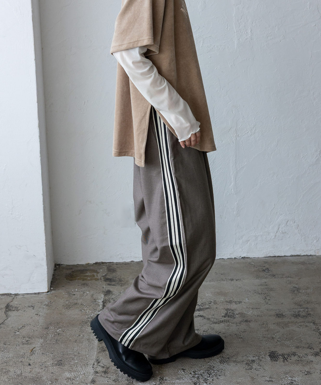 サイドに施されたラインテープが、スポーティでありながら洗練されたモード感を演出します。