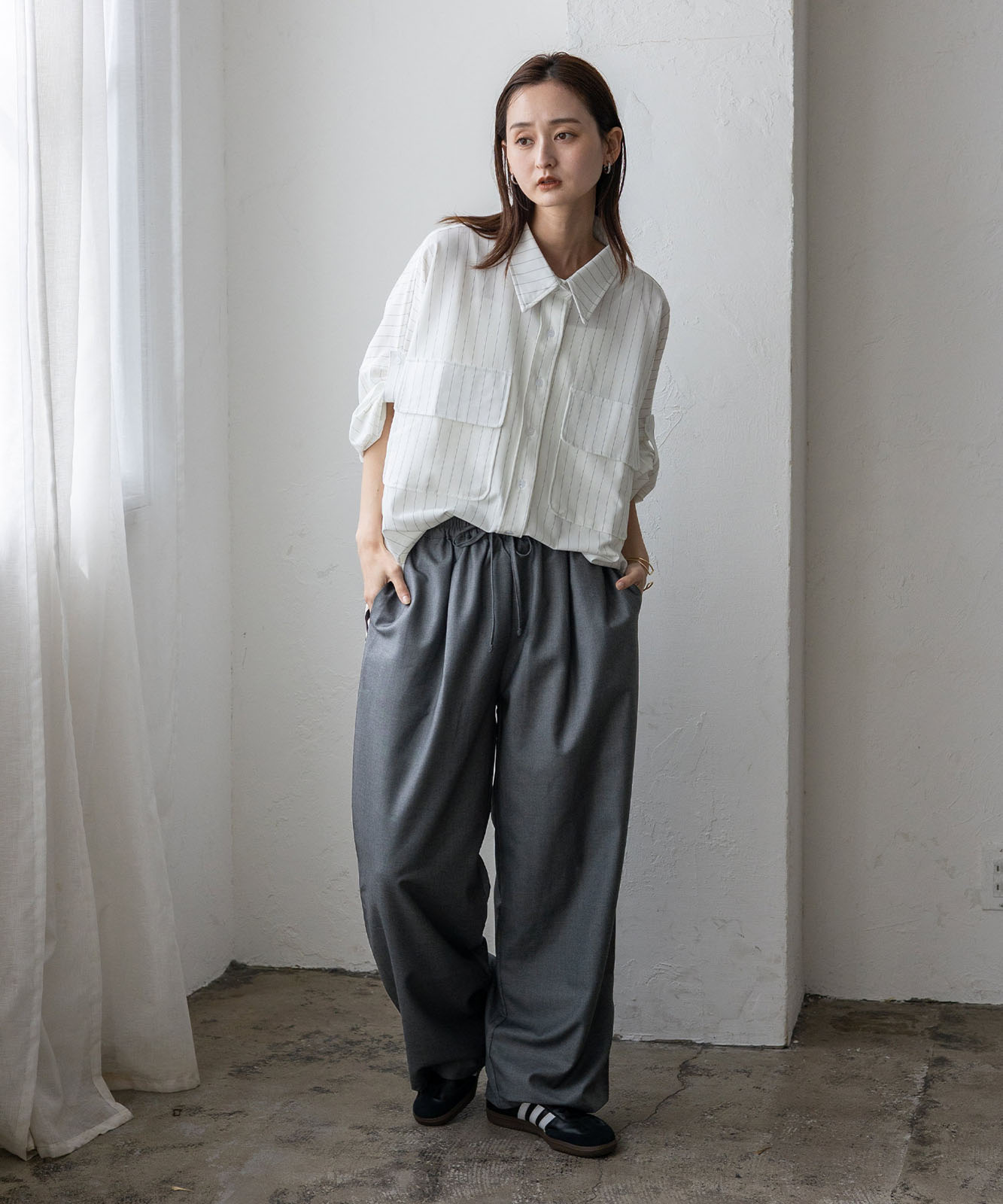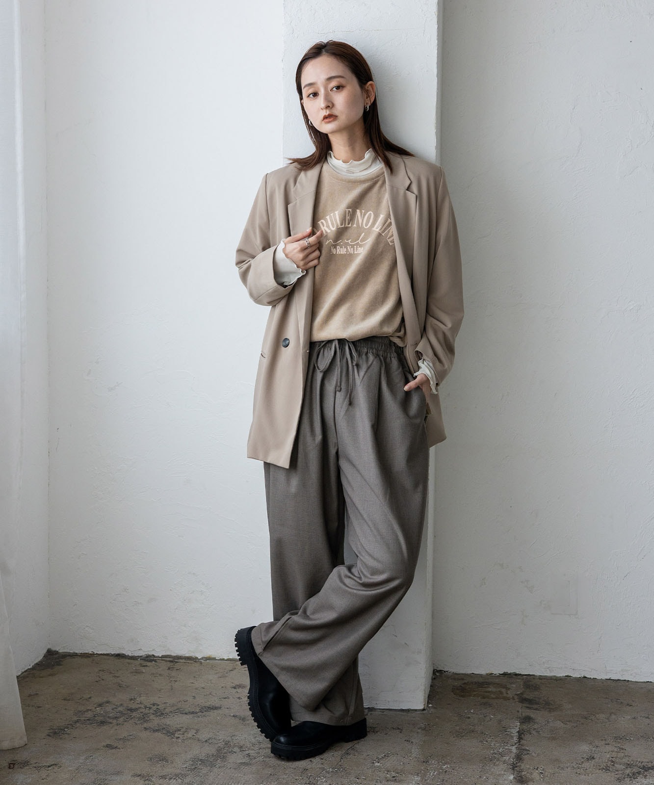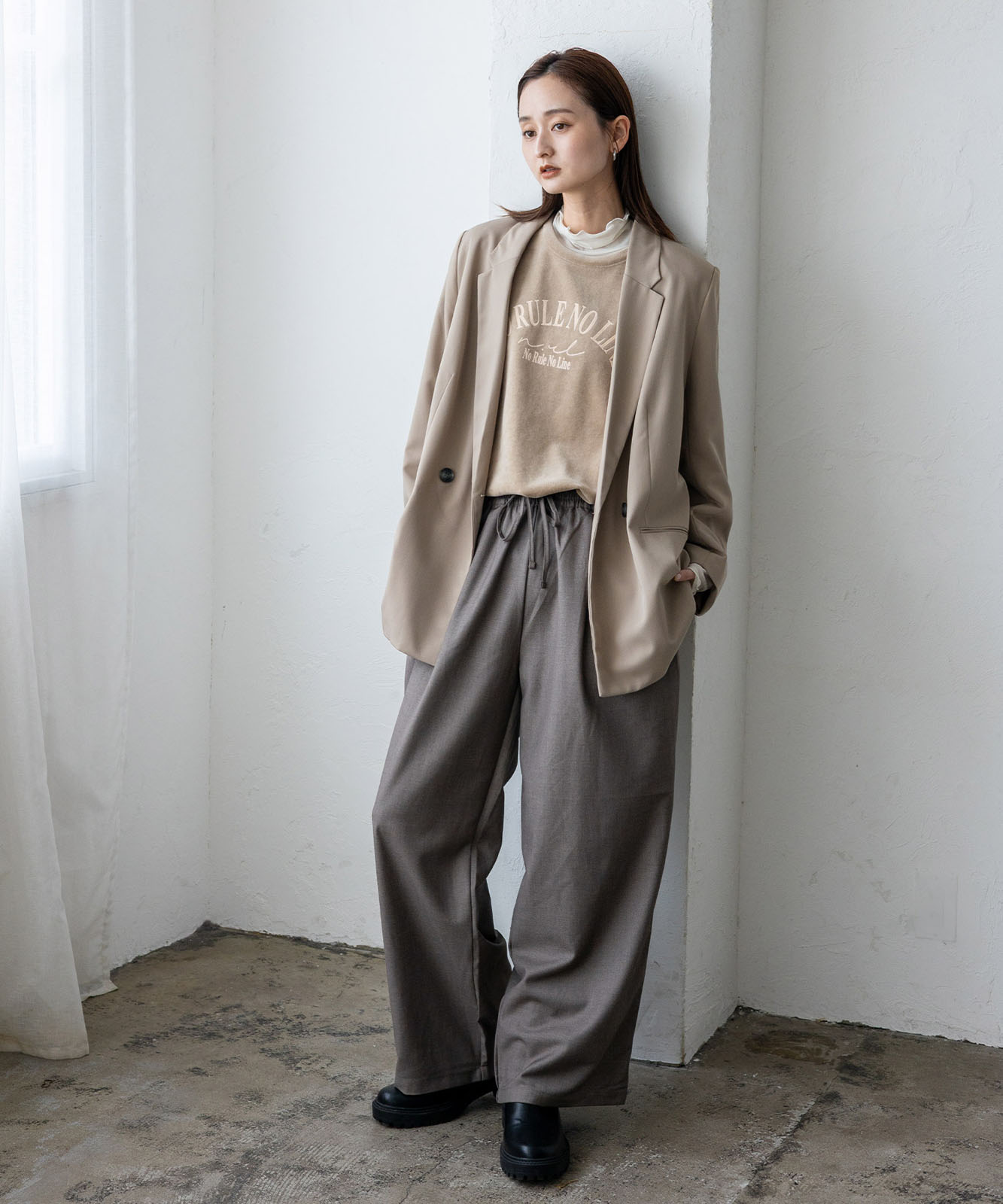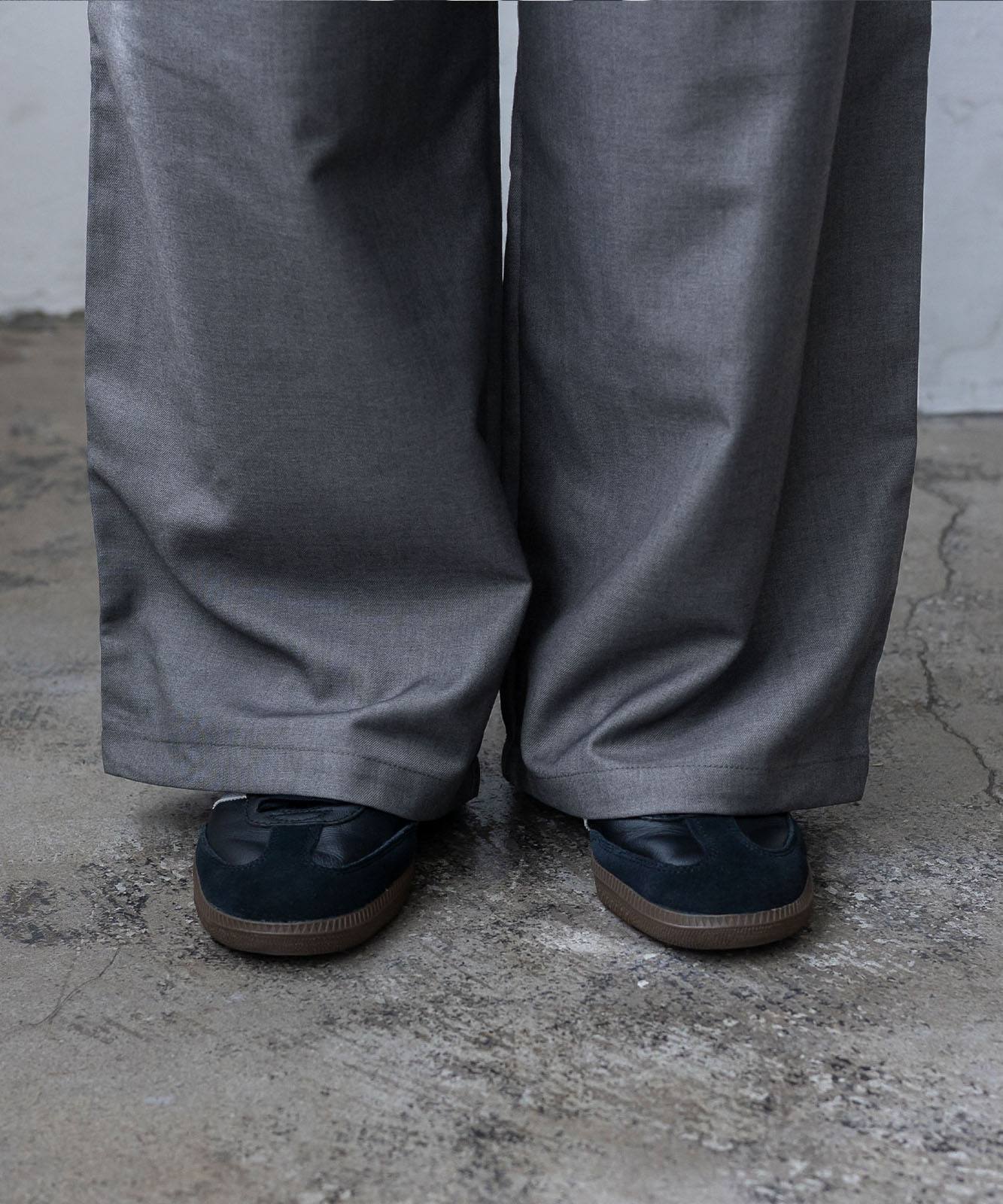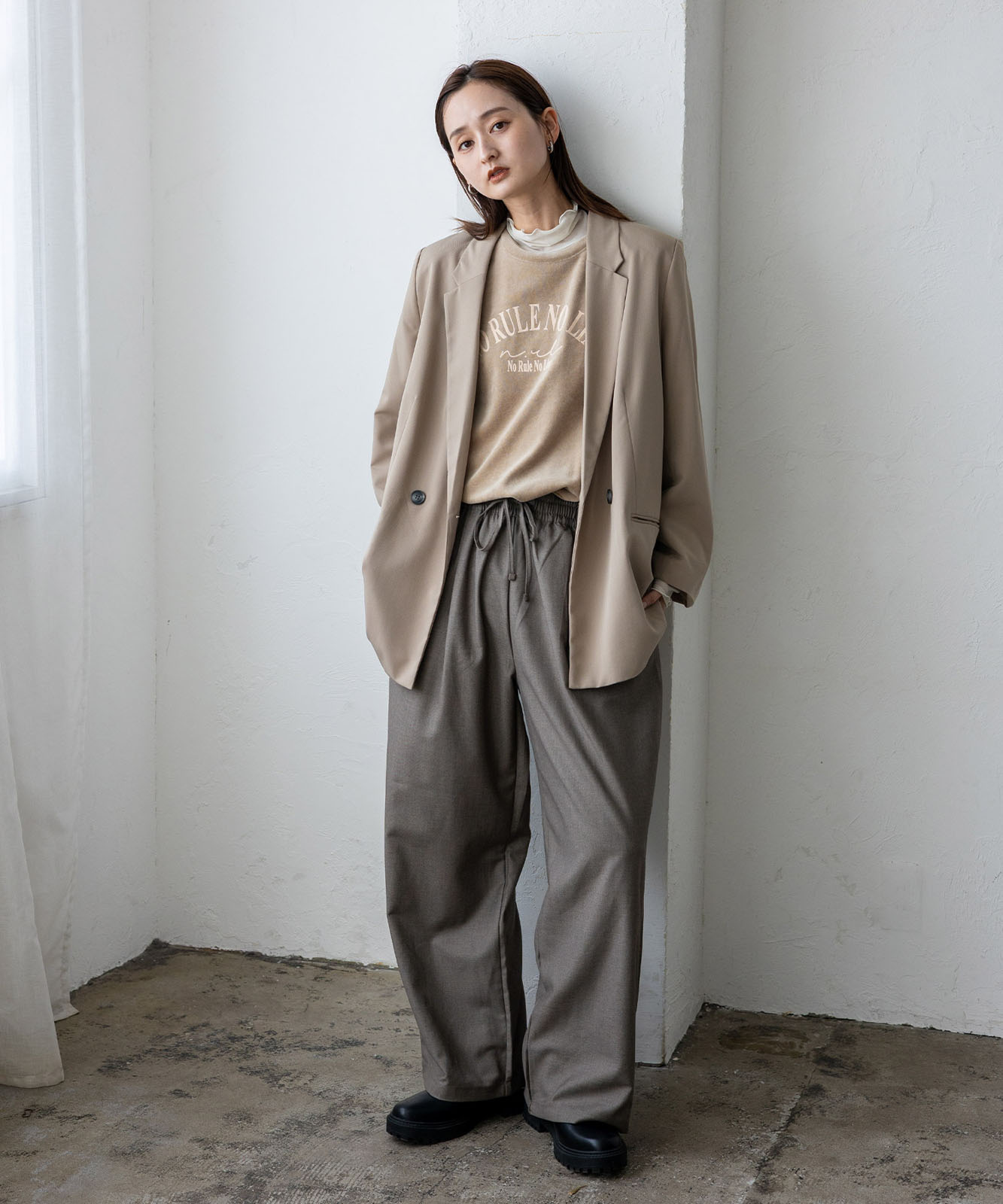 動きのあるワイドストレートシルエットが、こなれ感と脚長効果を両立。自然な抜け感をプラスします。