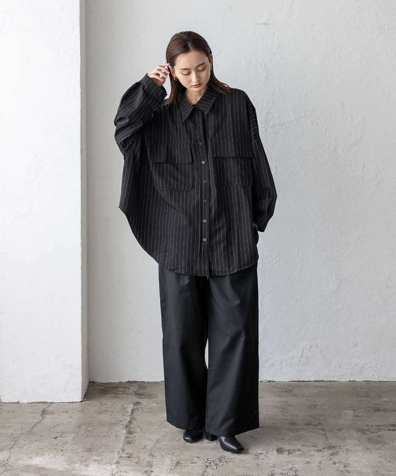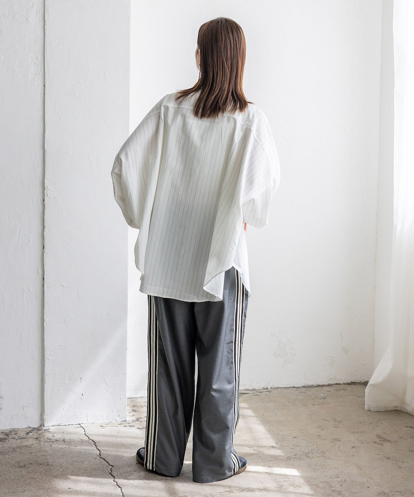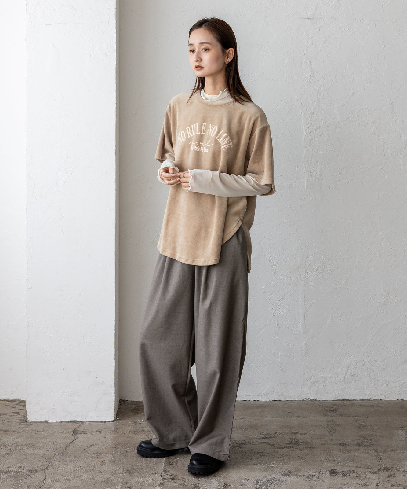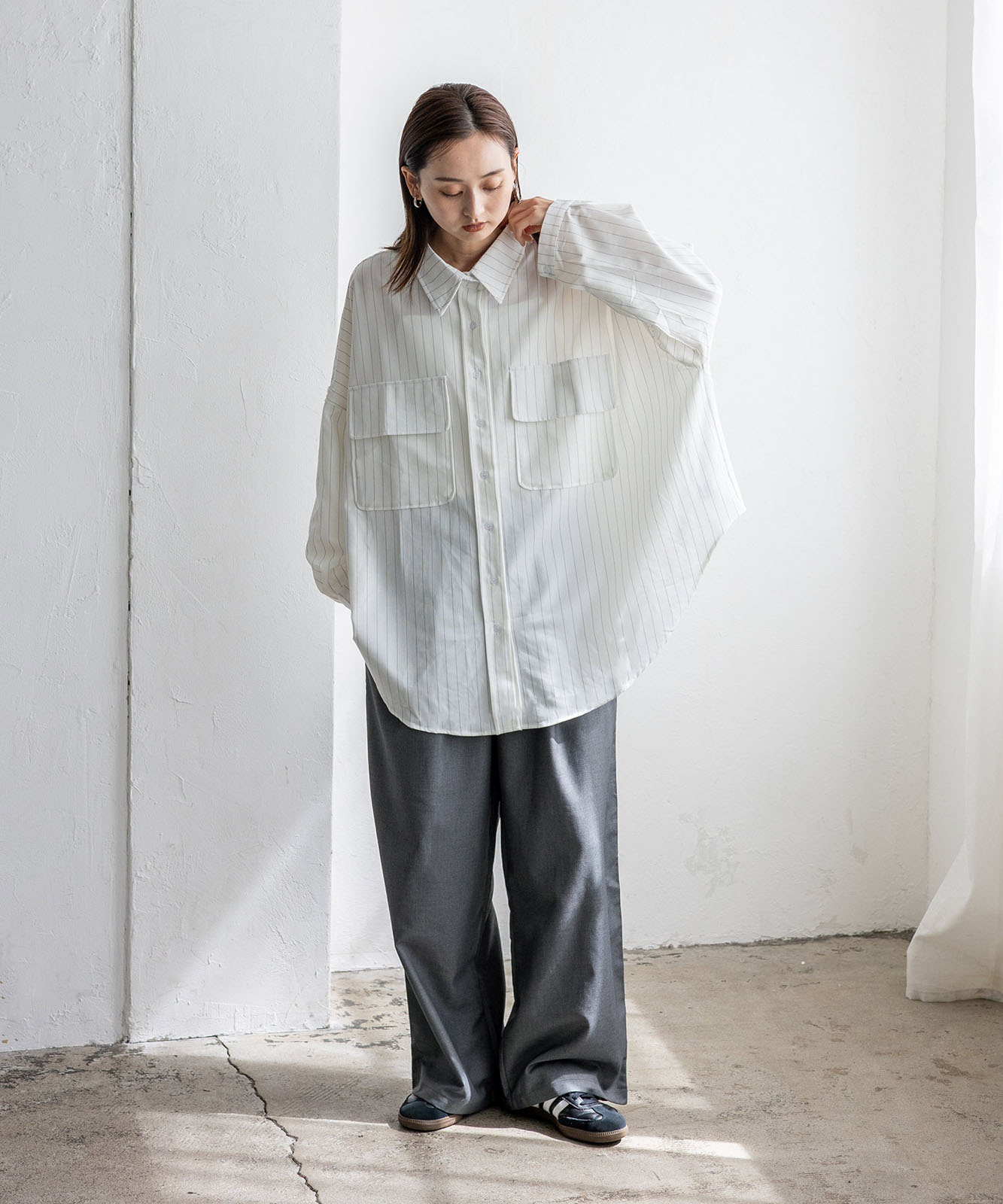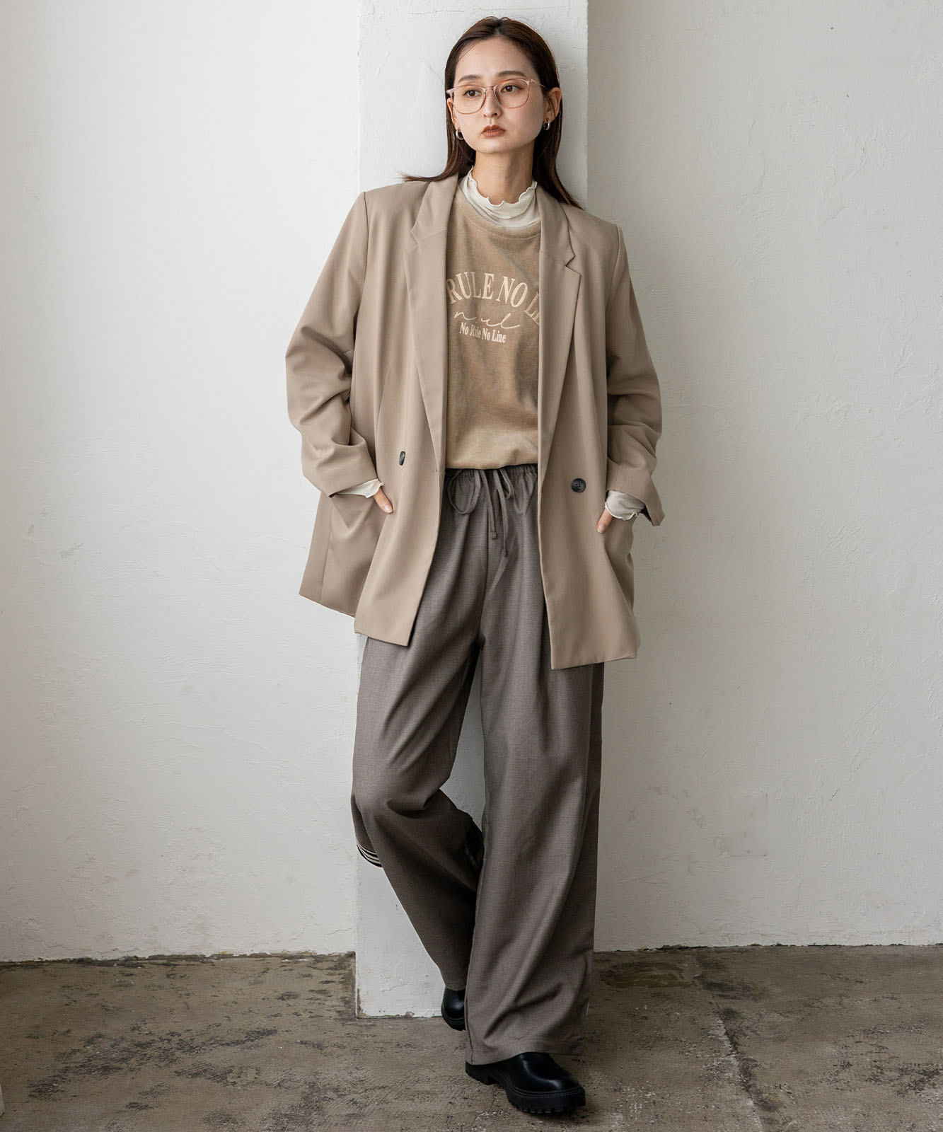 動きのあるワイドストレートシルエットが、こなれ感と脚長効果を両立。自然な抜け感をプラスします。