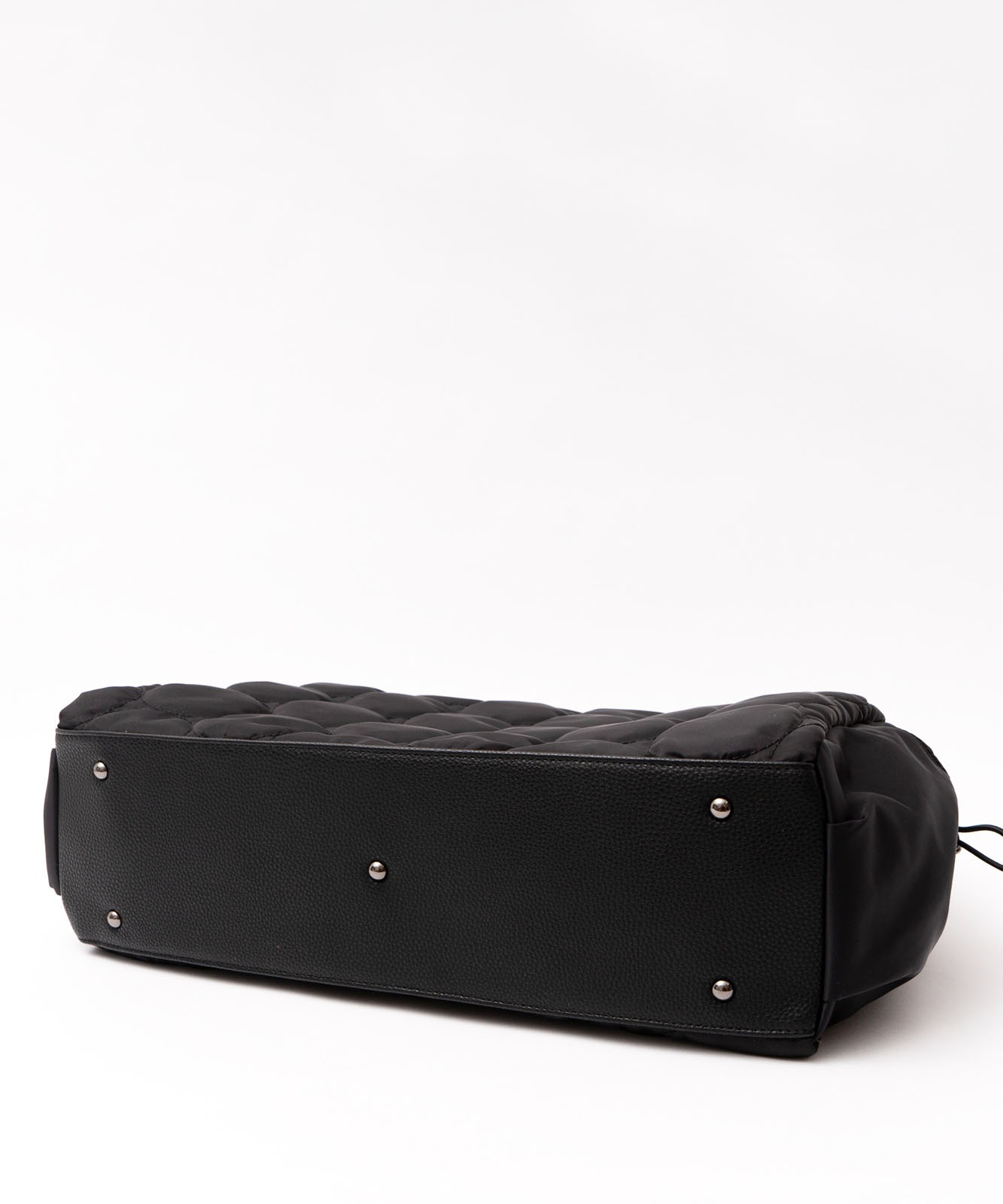 バッグ底部に鋲を施し、地面に置いても汚れや傷が付きにくい仕様です。