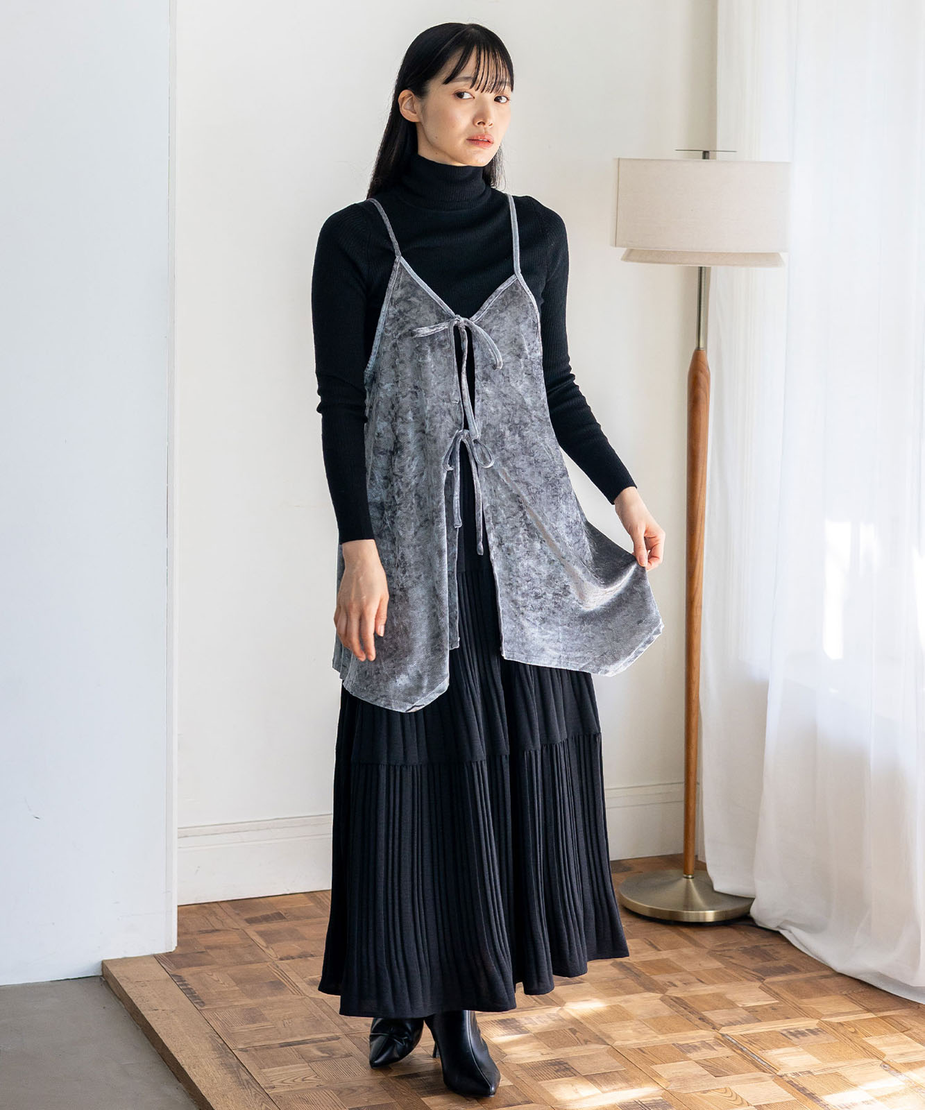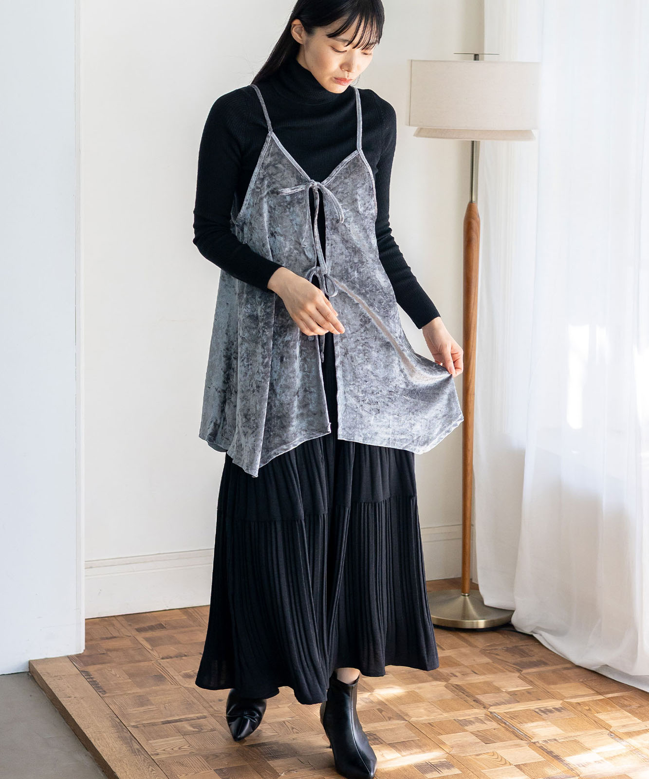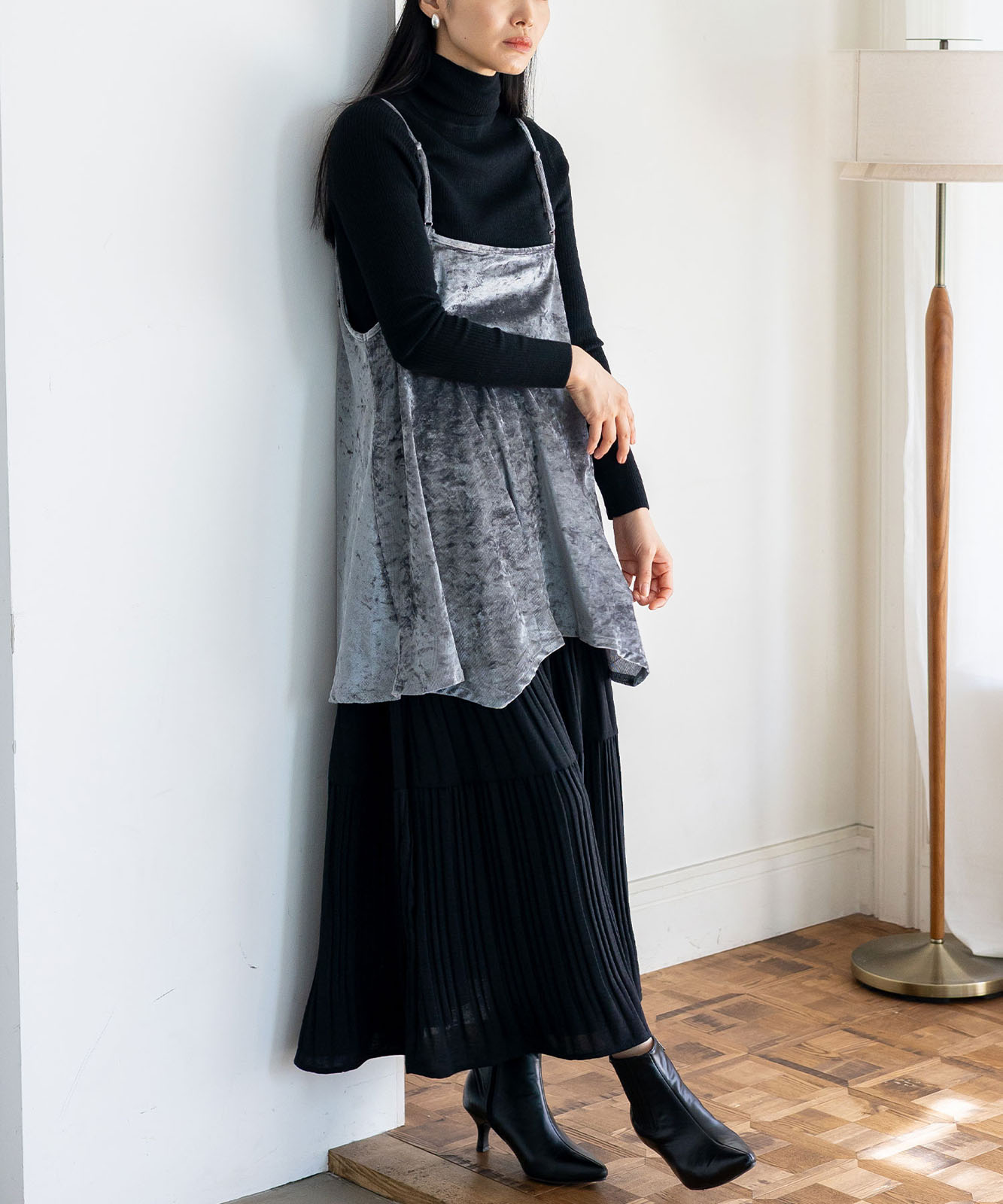 今季注目のクラッシュベロア素材を使用。