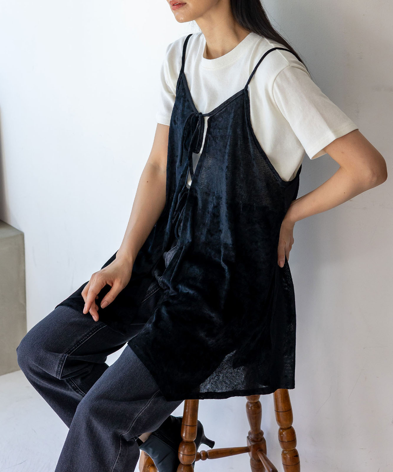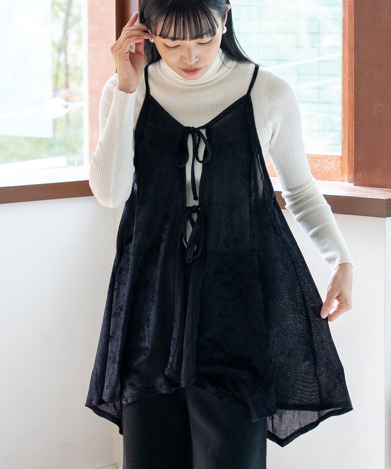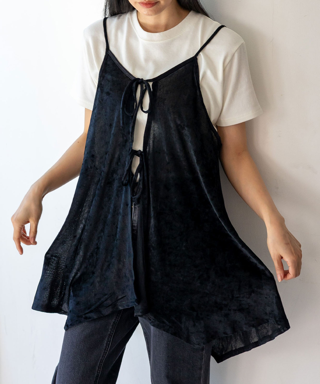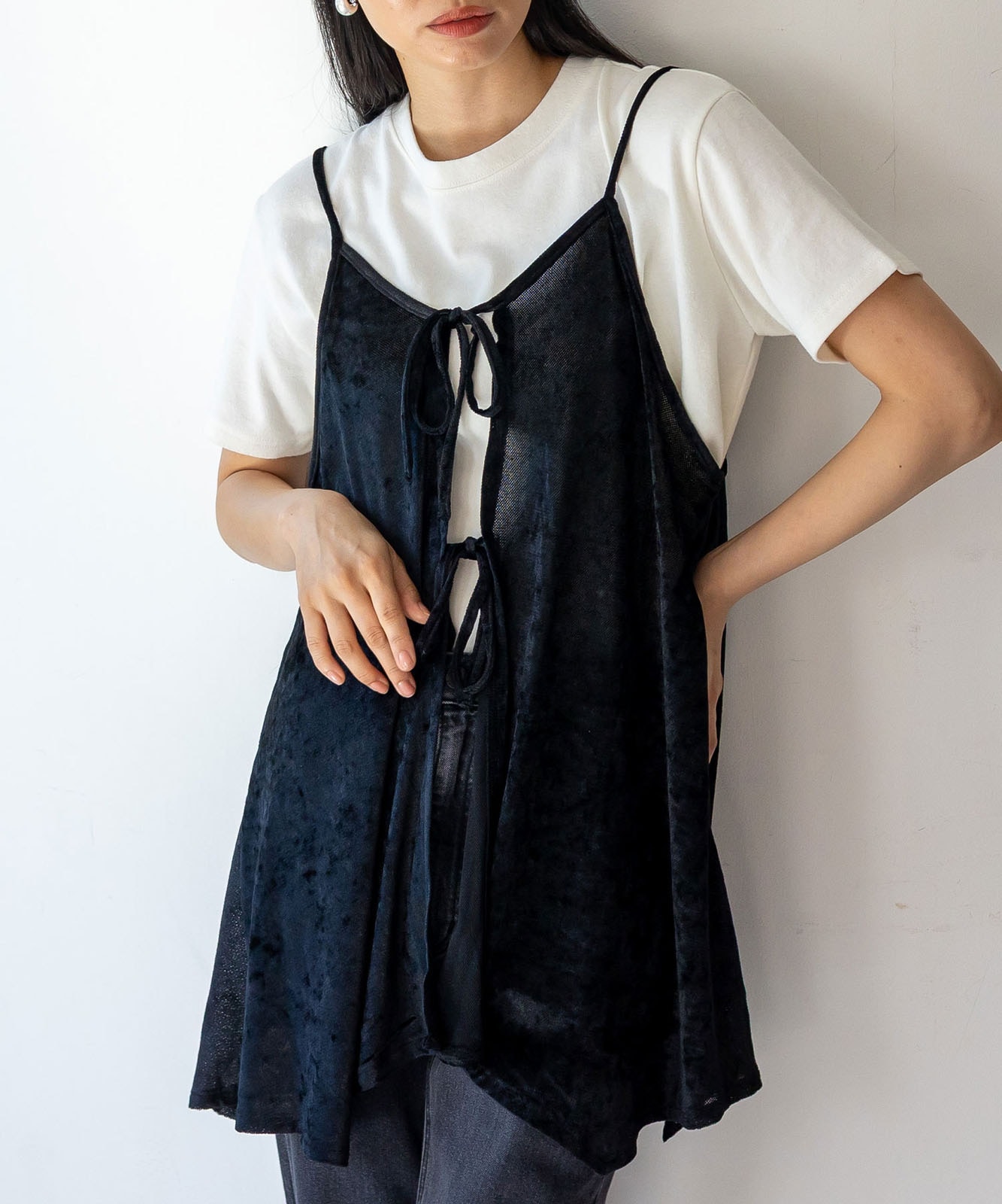前後2WAYで楽しむ、リュクスなリボンキャミ。