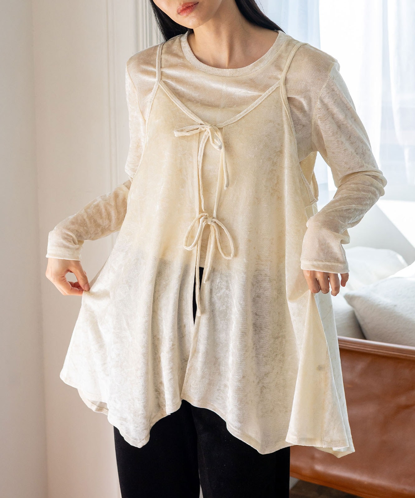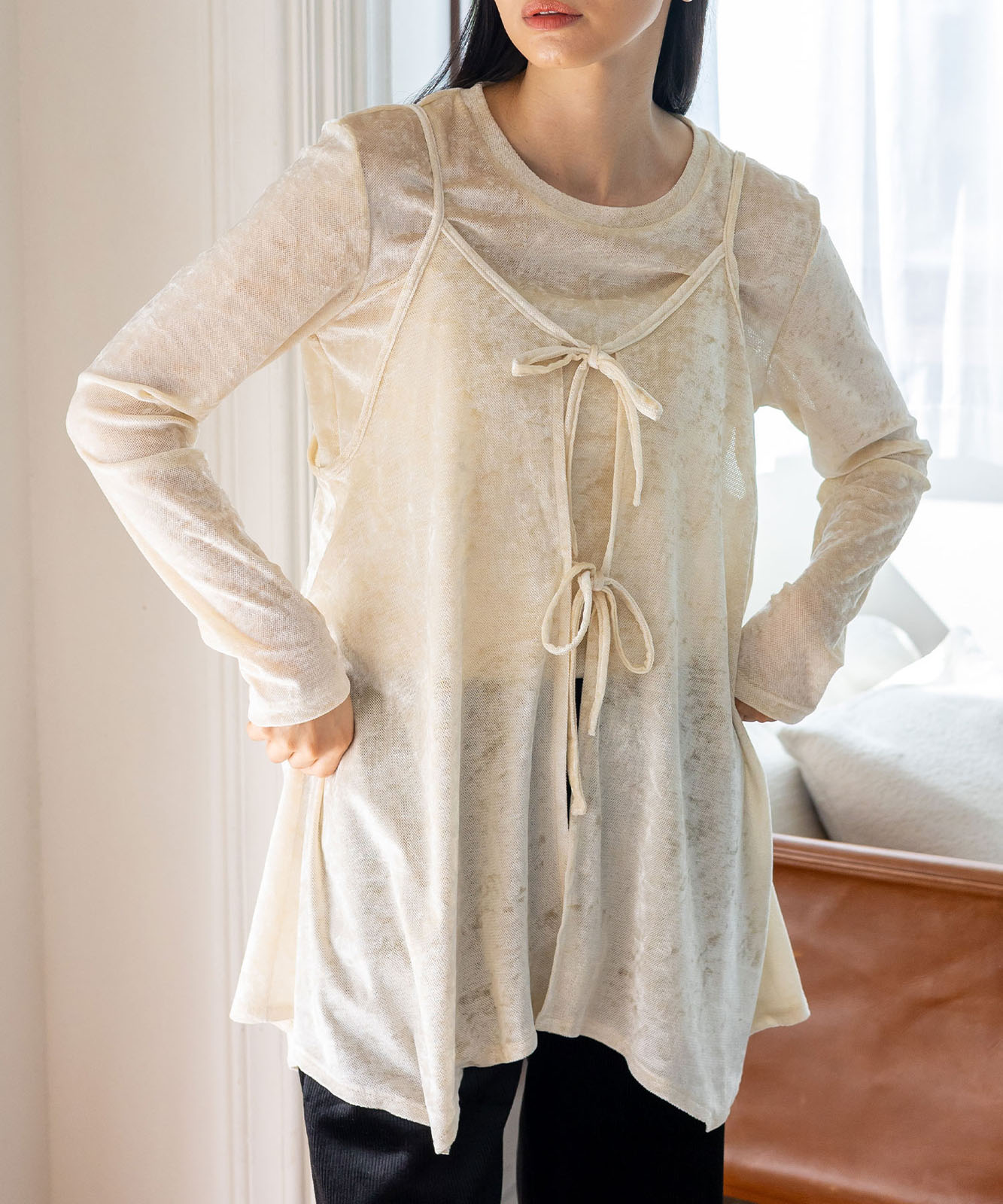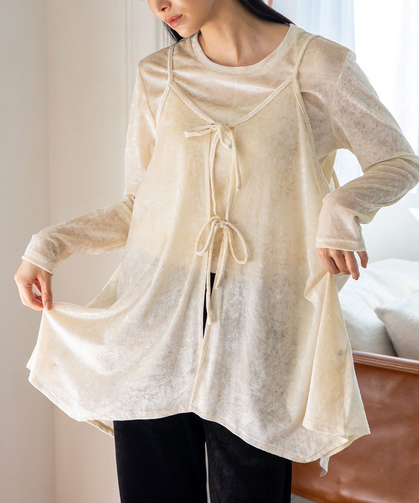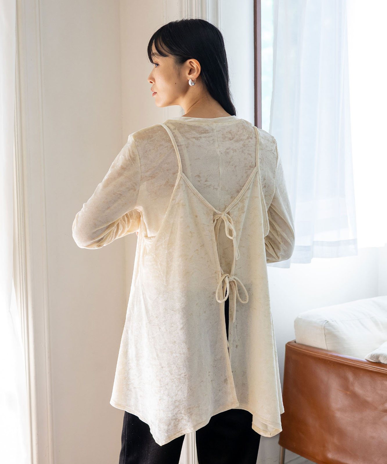 前後2WAYで楽しむ、リュクスなリボンキャミ。