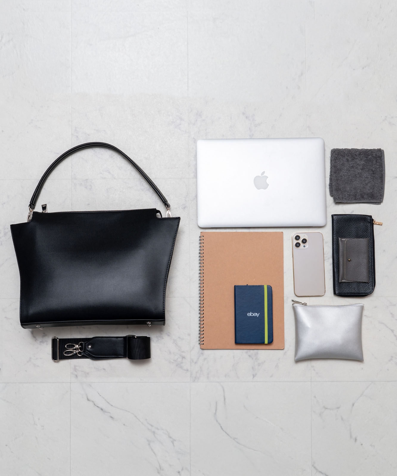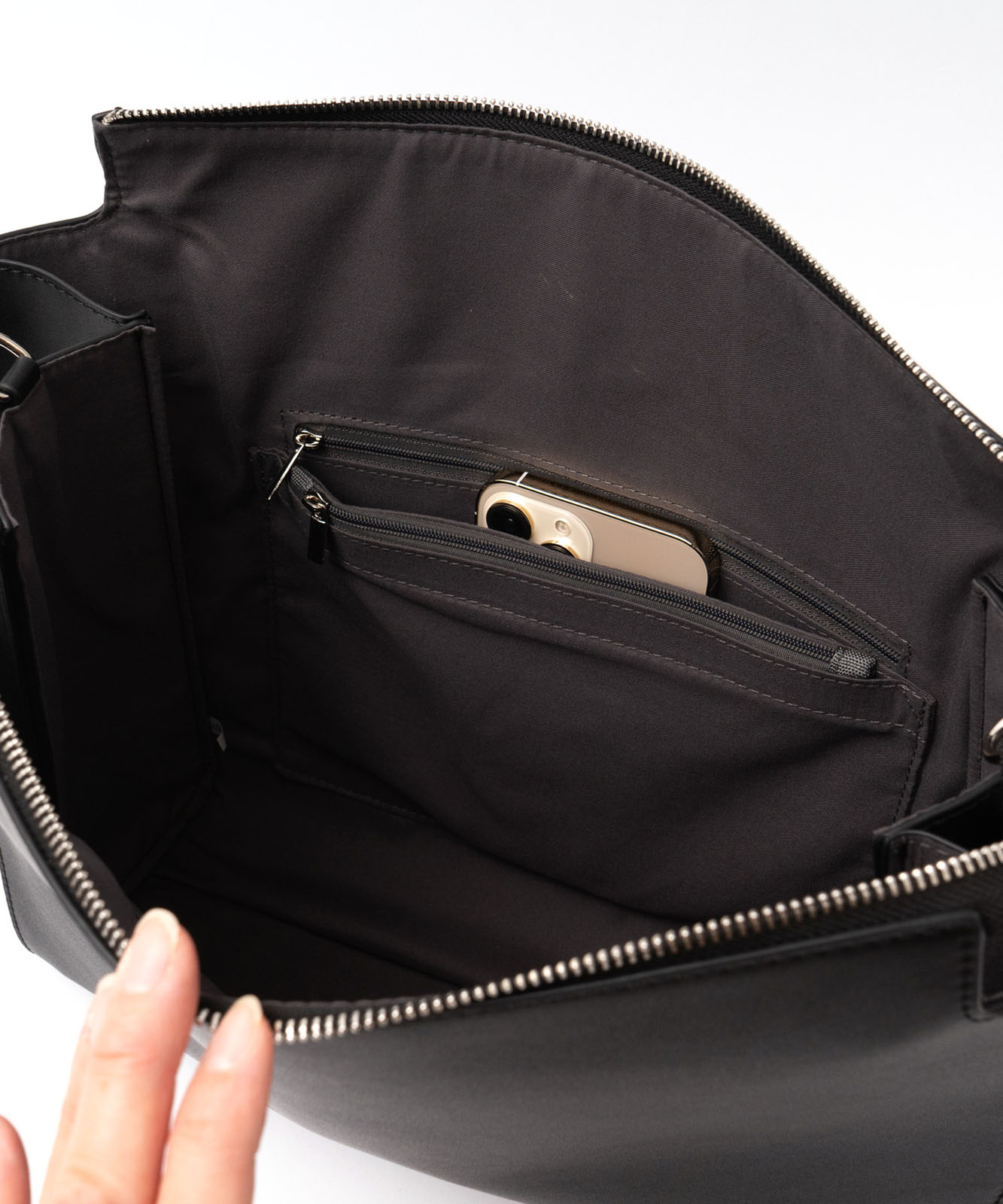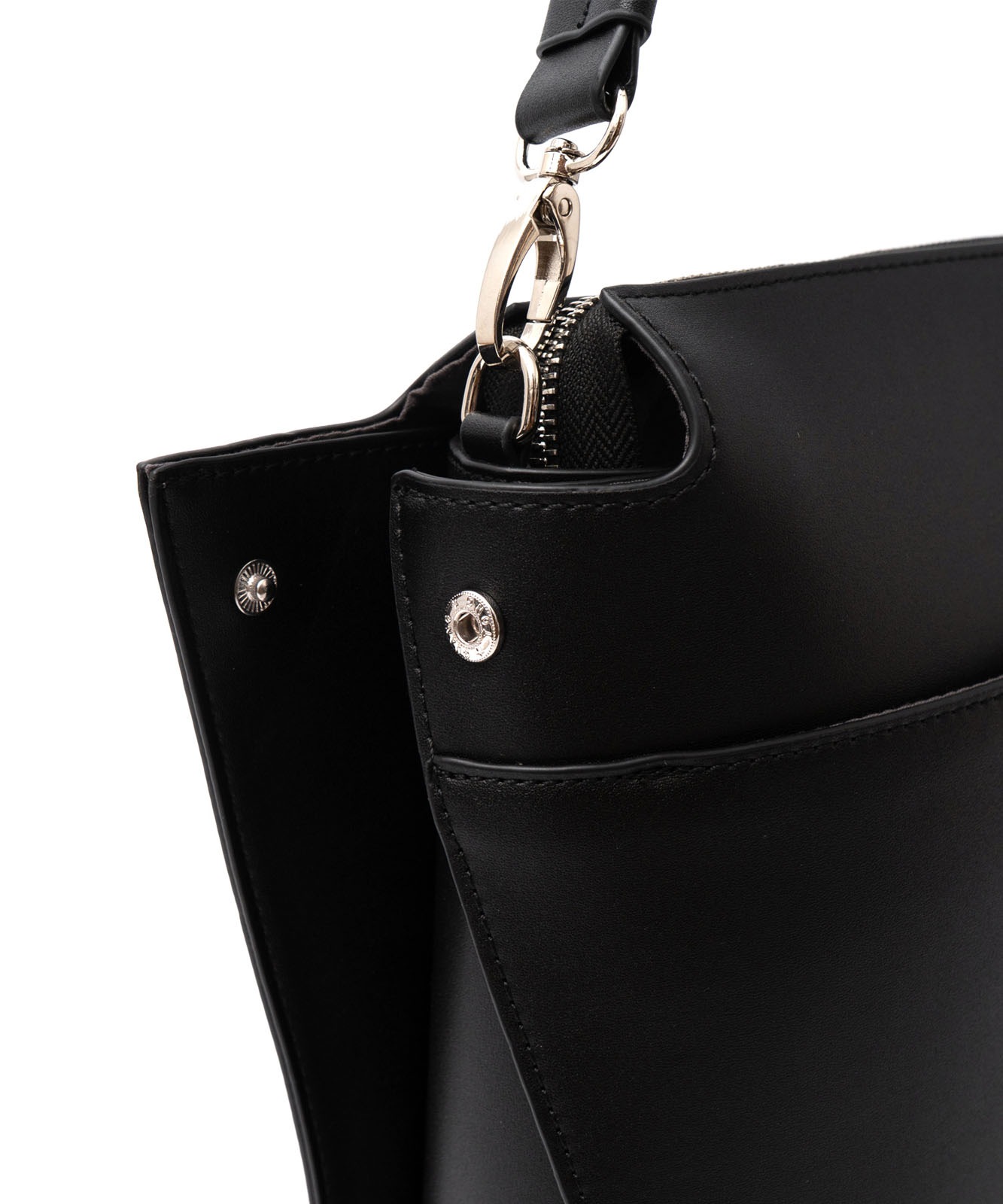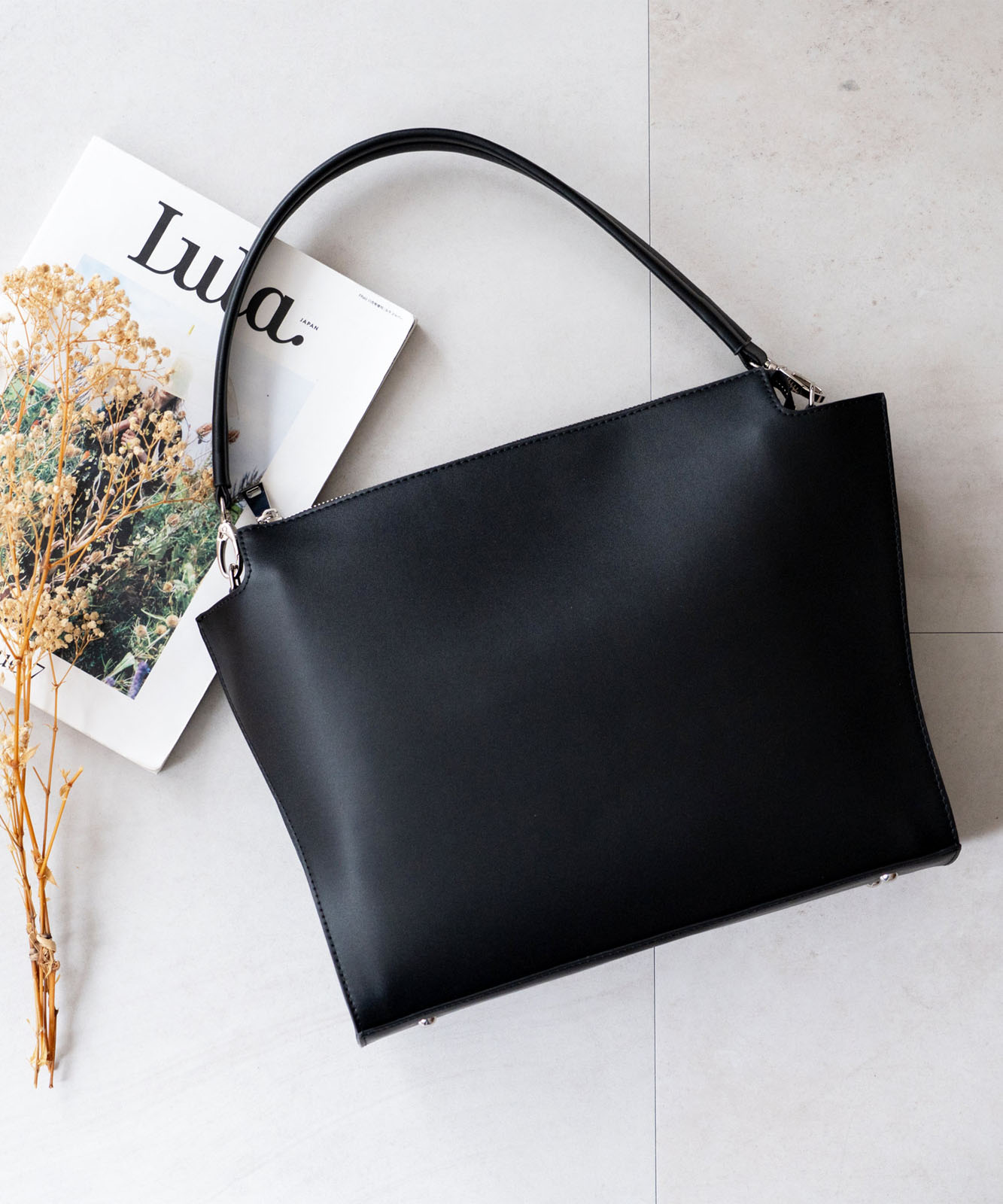 シルバー色の金具を採用し、クールな印象。凛とした佇まいのバッグです。