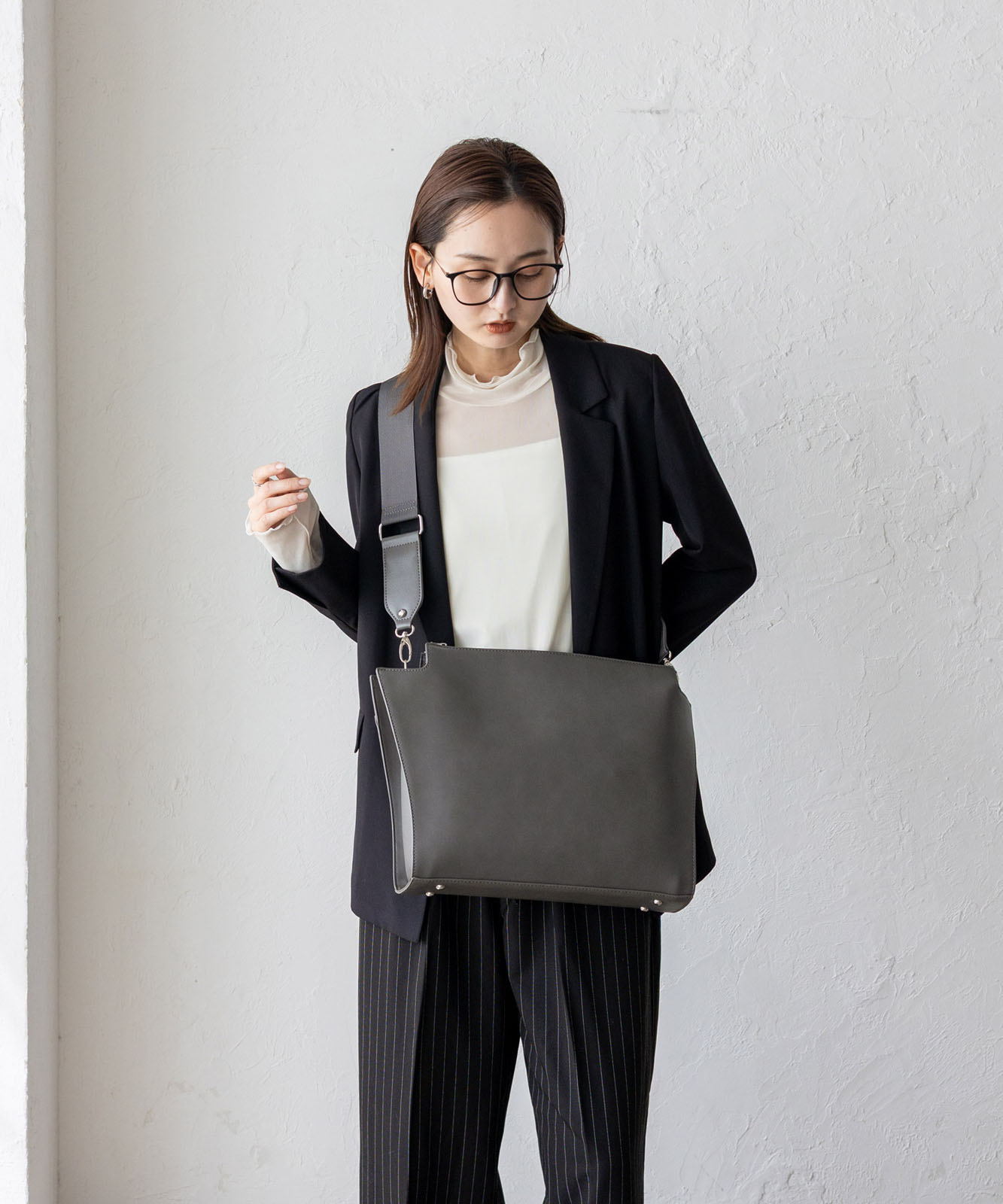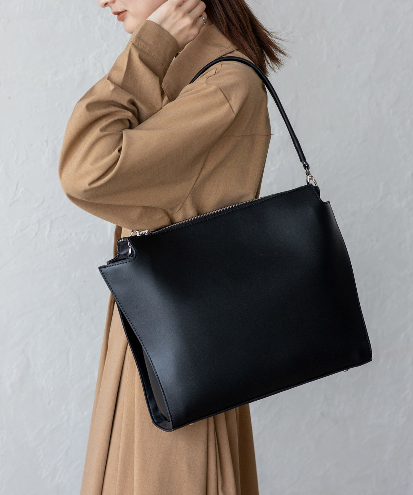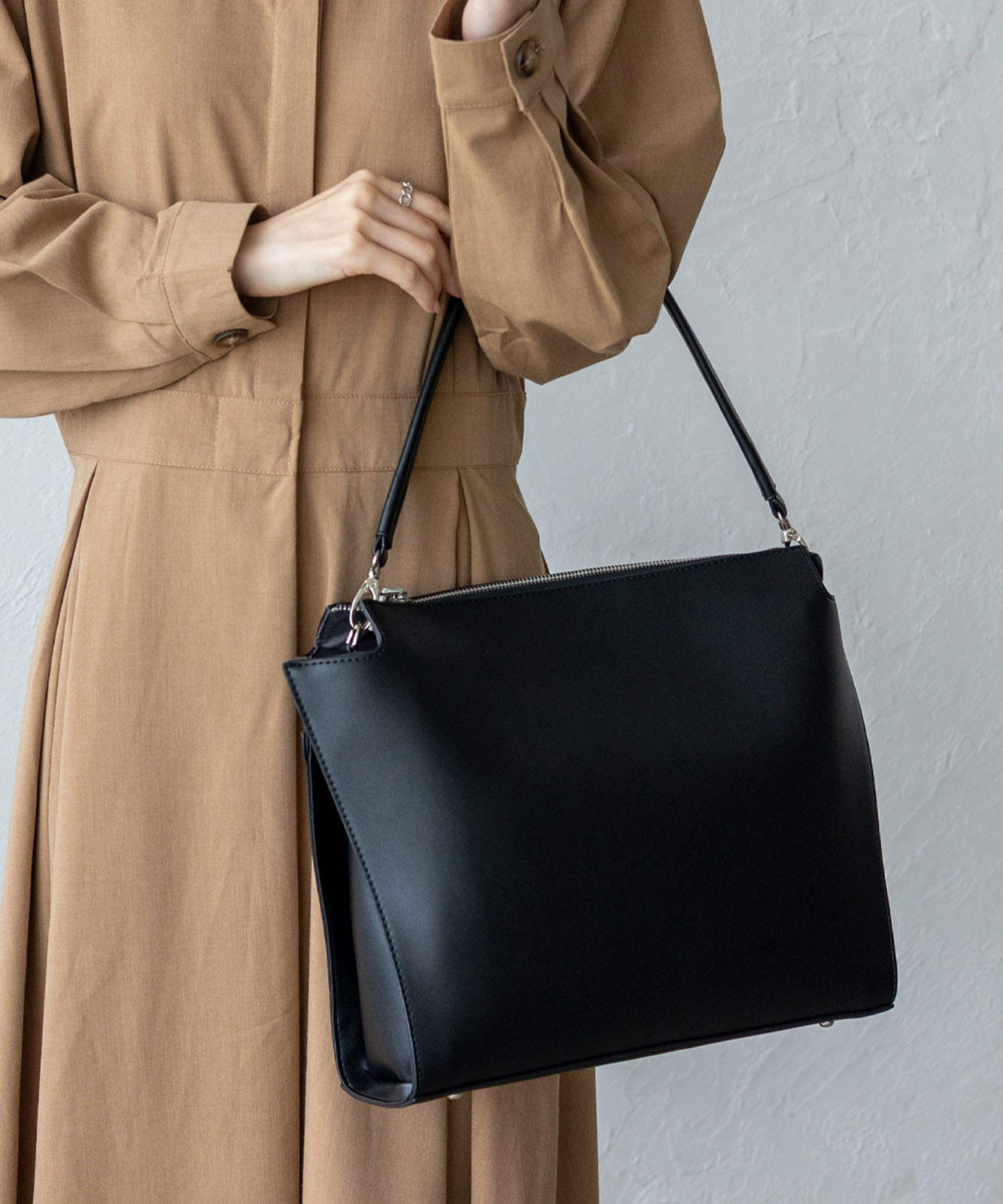 荷物量やコーデに合わせて表情を変えられる、使い勝手の良いショルダーバッグです。