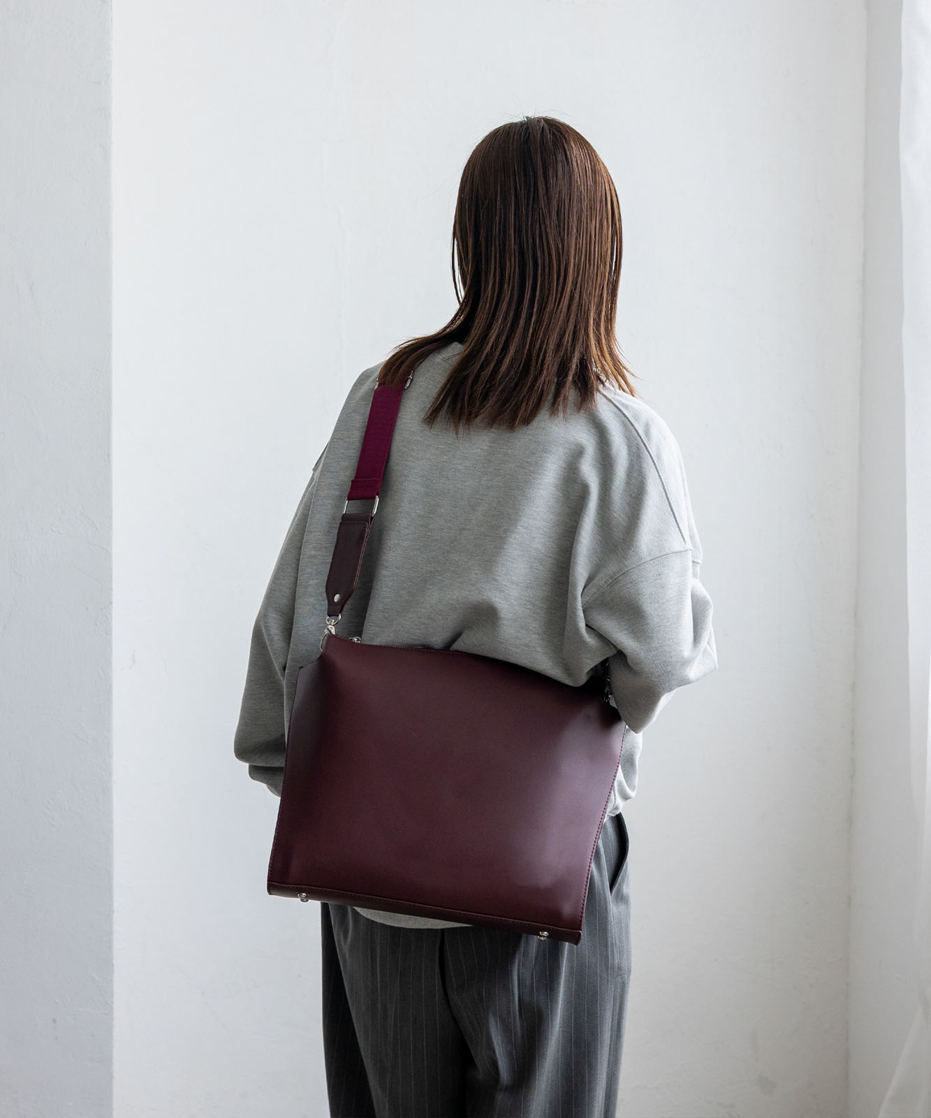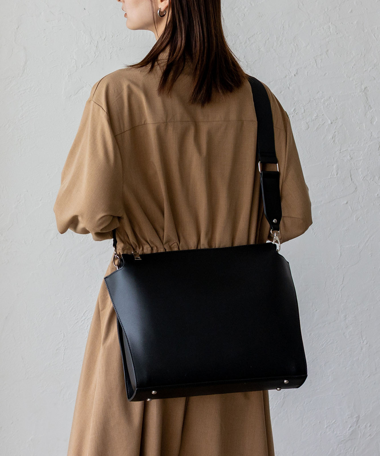 ミニマルさとコンパクトさにこだわったスクエアショルダーバッグは、