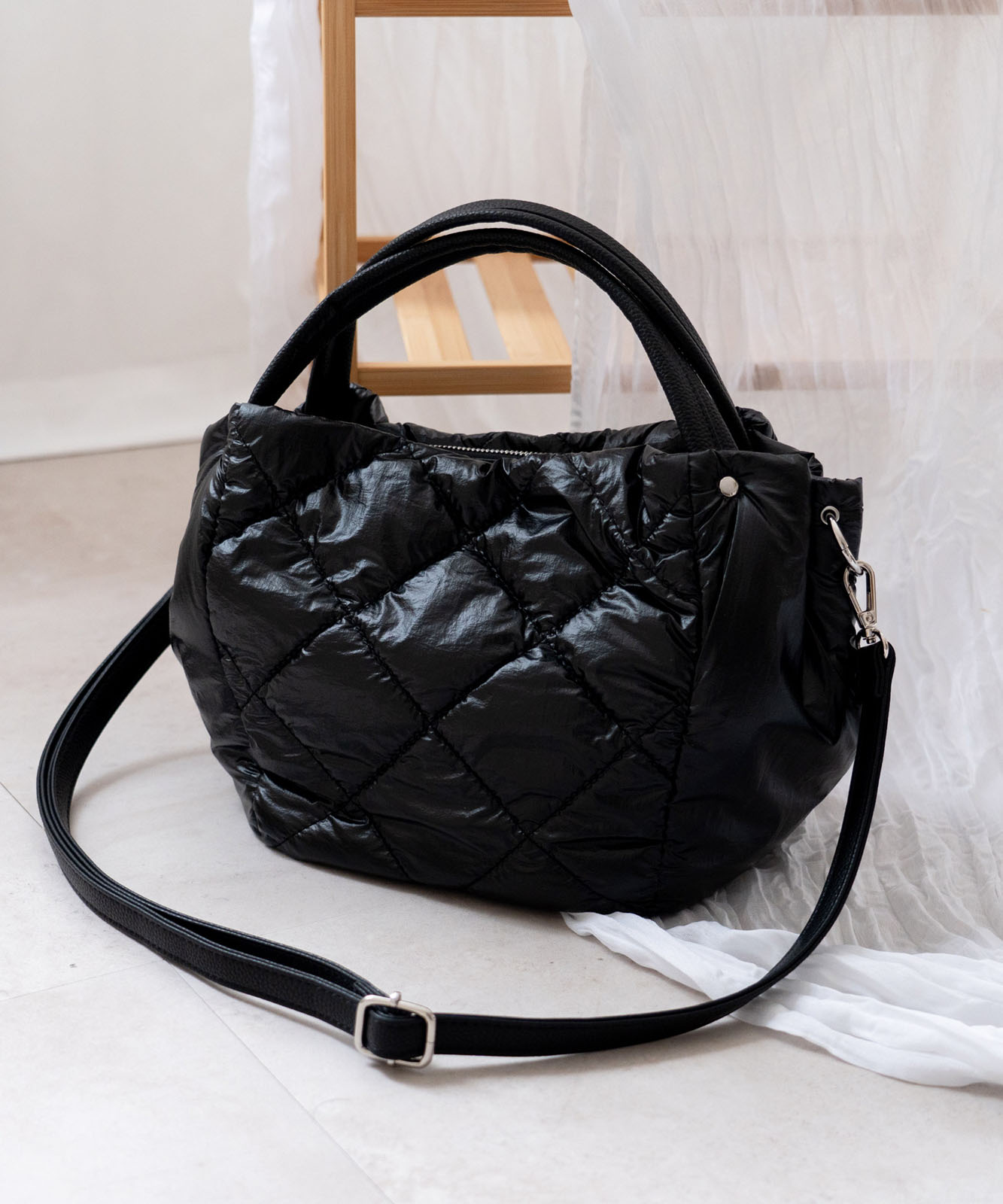 ハンドルとショルダーには合皮を使用し、耐久性も◎。