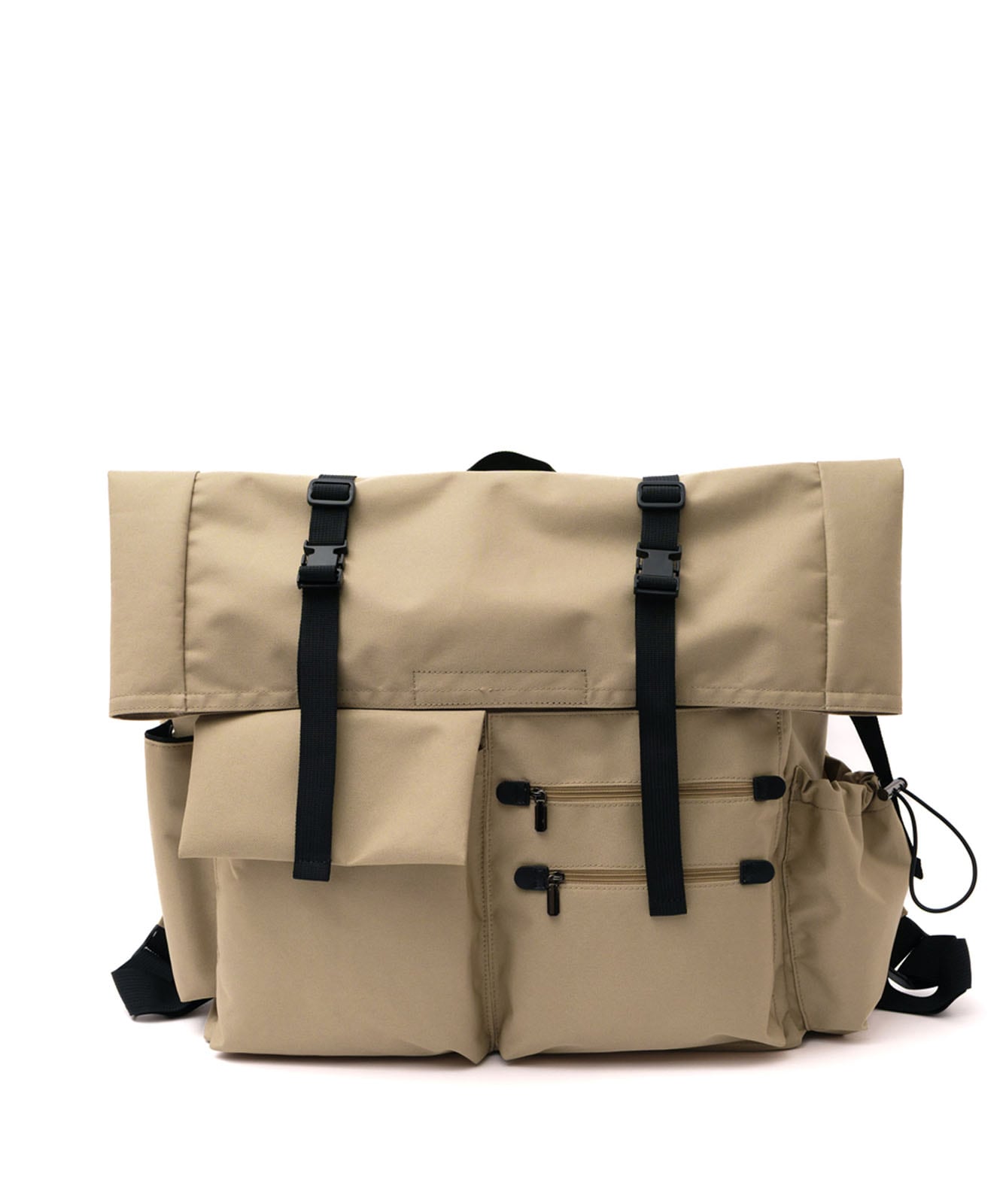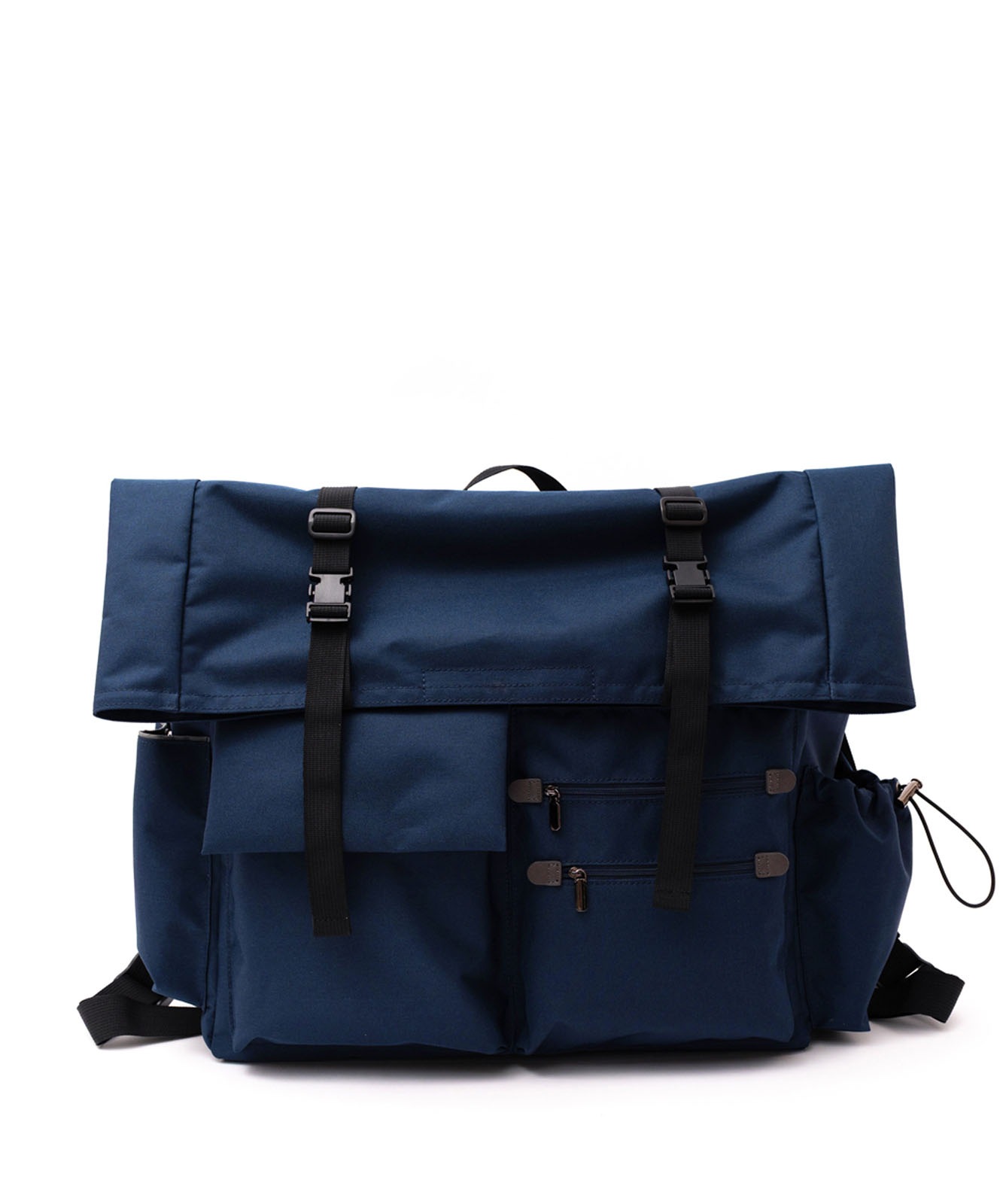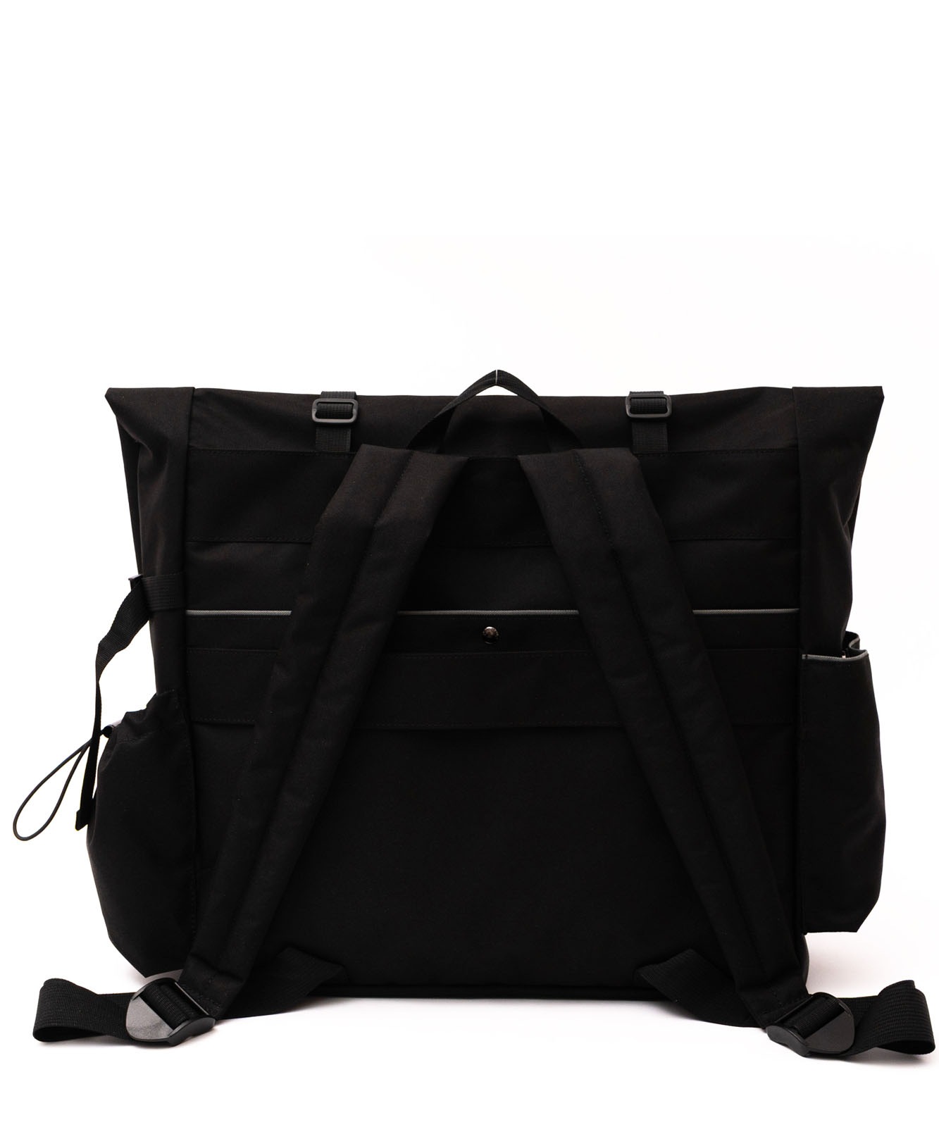 マチポケットの片方はゴム紐と調整可能な固定用のベルト付き、もう片方はマグホック仕様です。