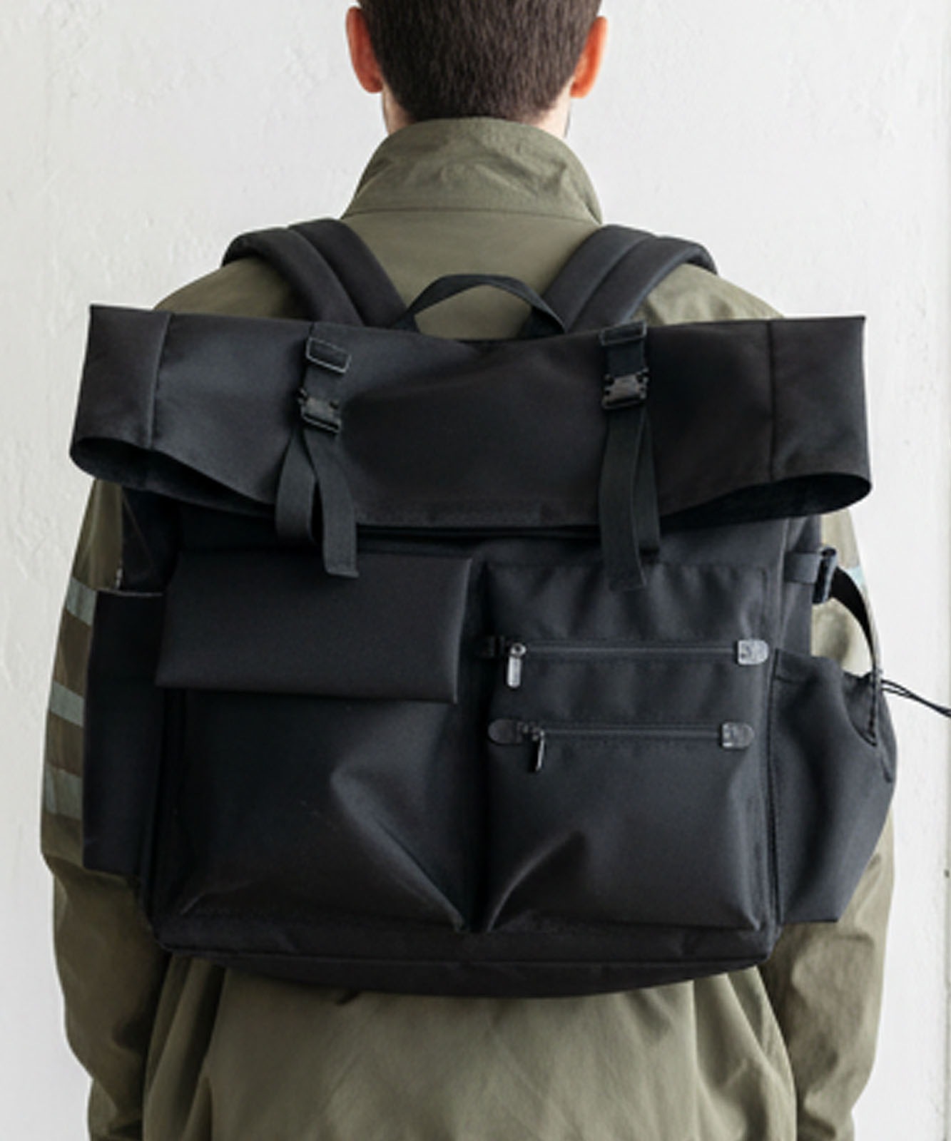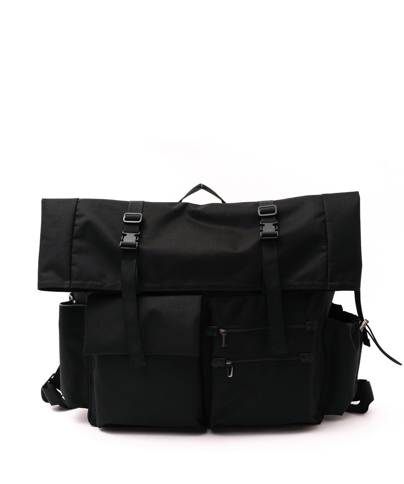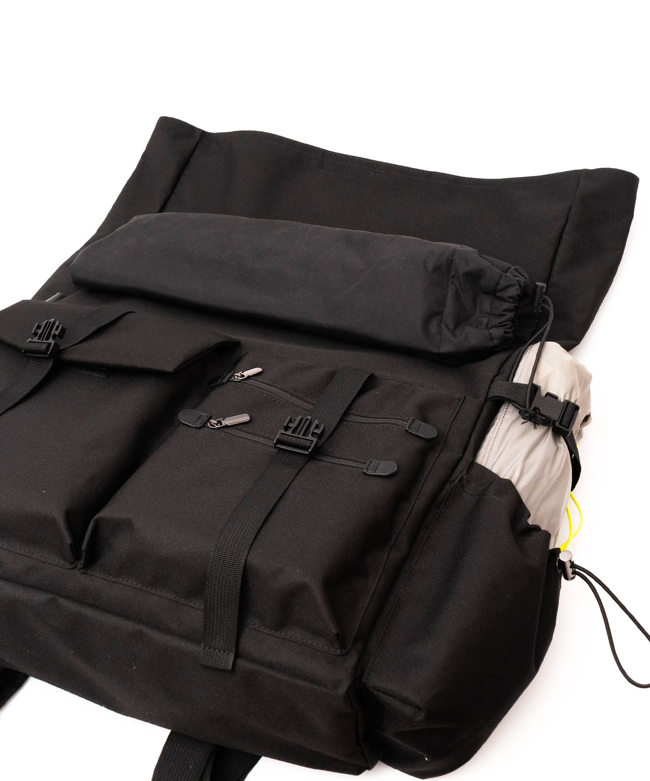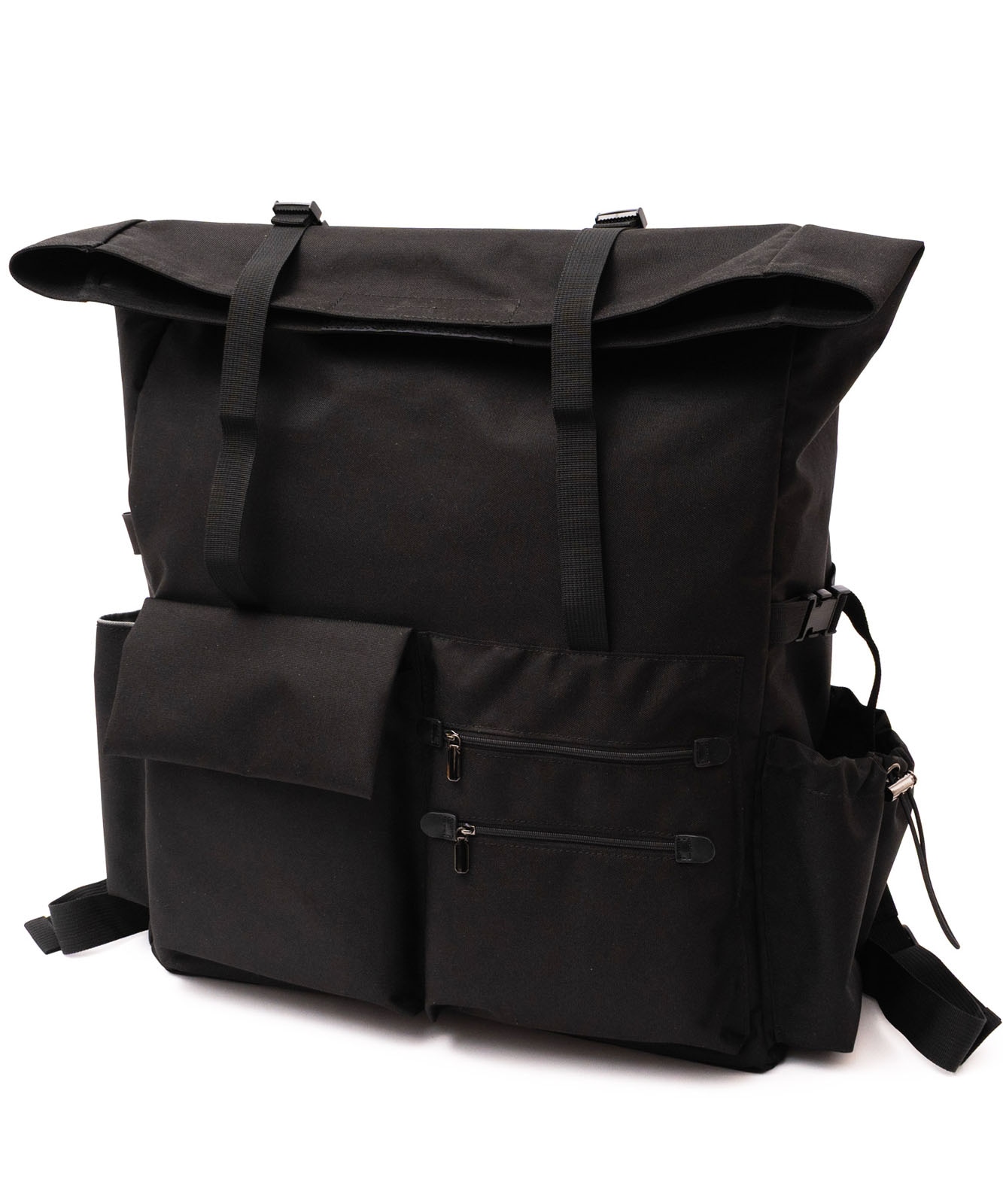 マチポケットの片方はゴム紐と調整可能な固定用のベルト付き、もう片方はマグホック仕様です。