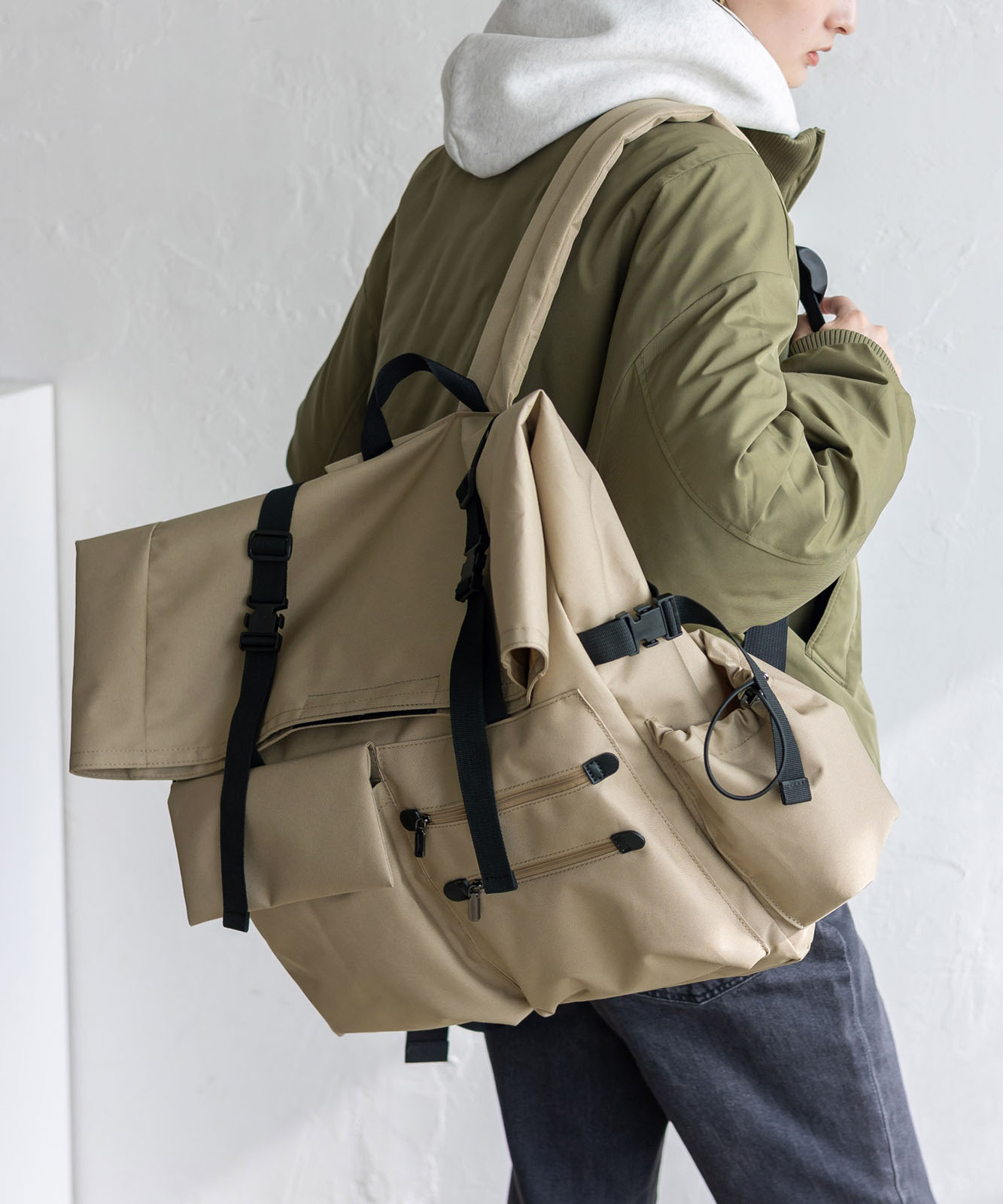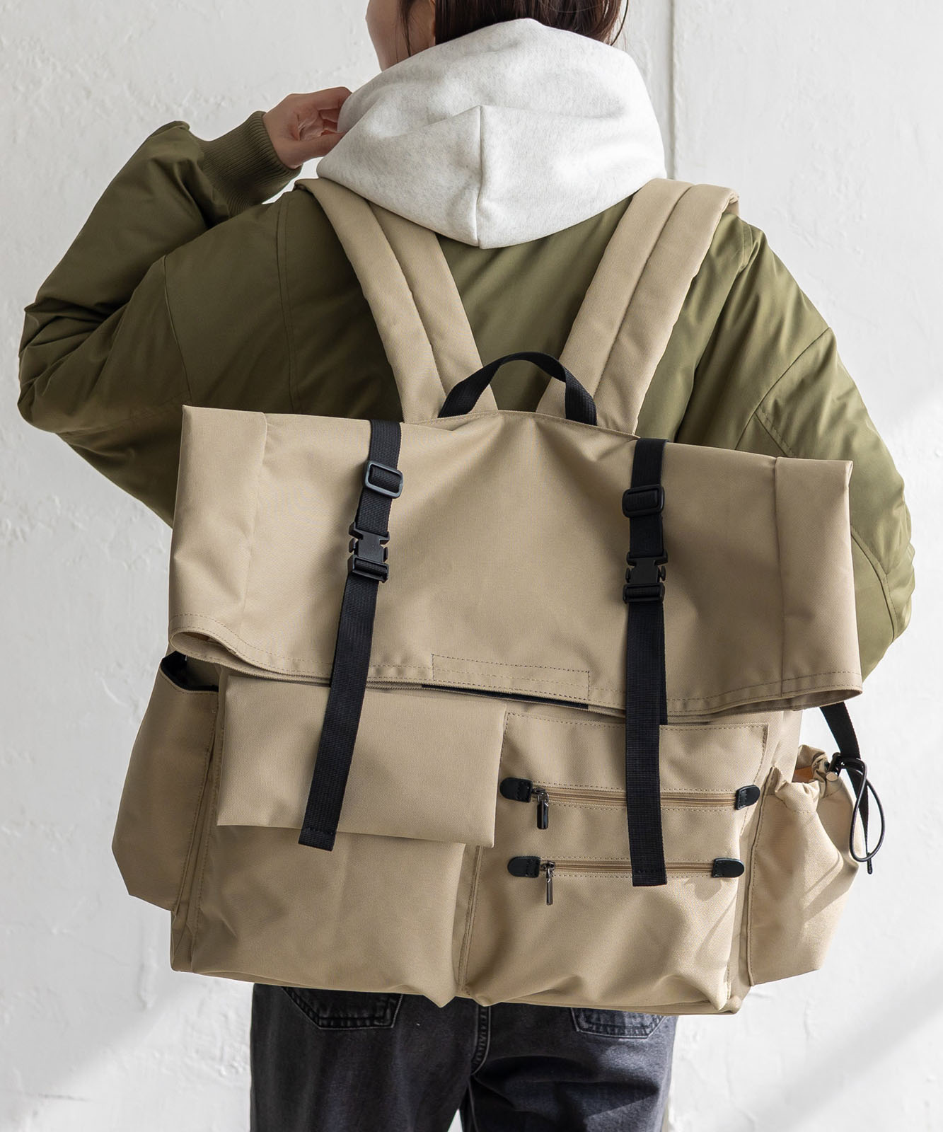 バッグ内外に複数のポケットを配置しているので細やかな収納を叶えます。