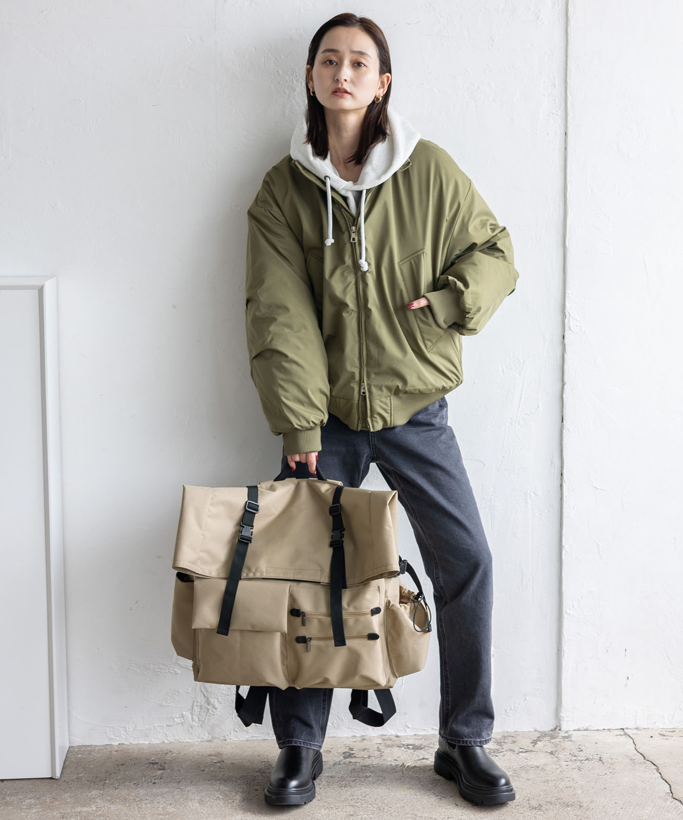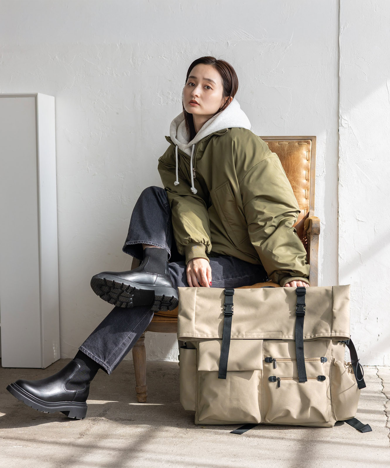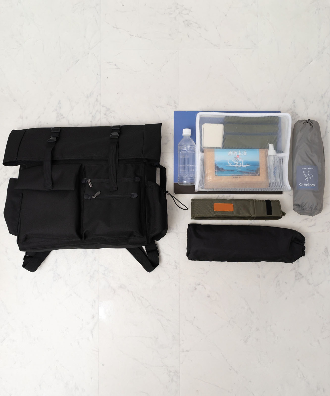 ●マチや前面のベルト部分にはイーゼル・折り畳み椅子が収納可能