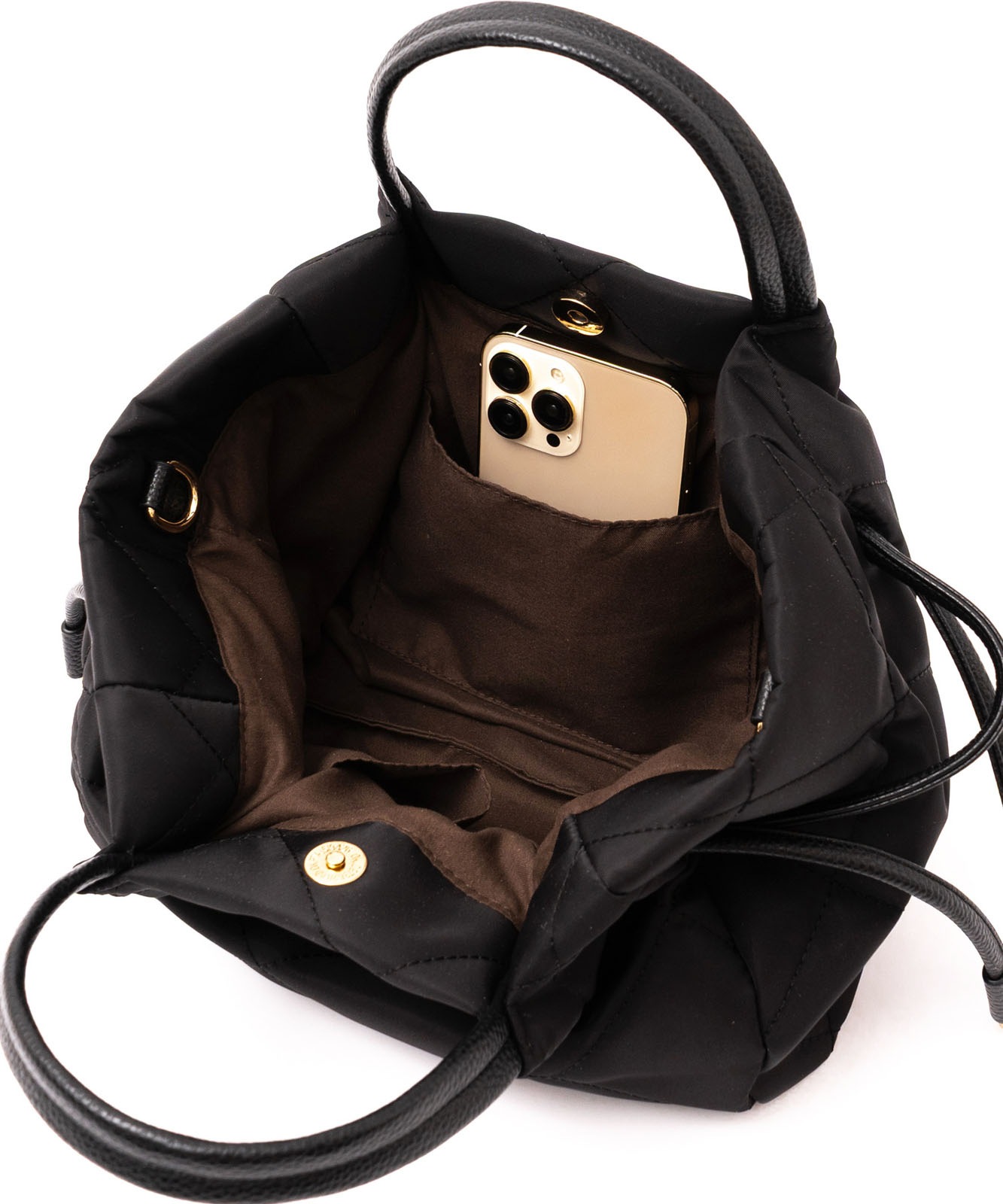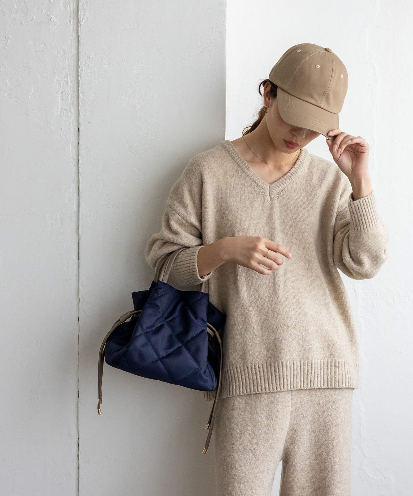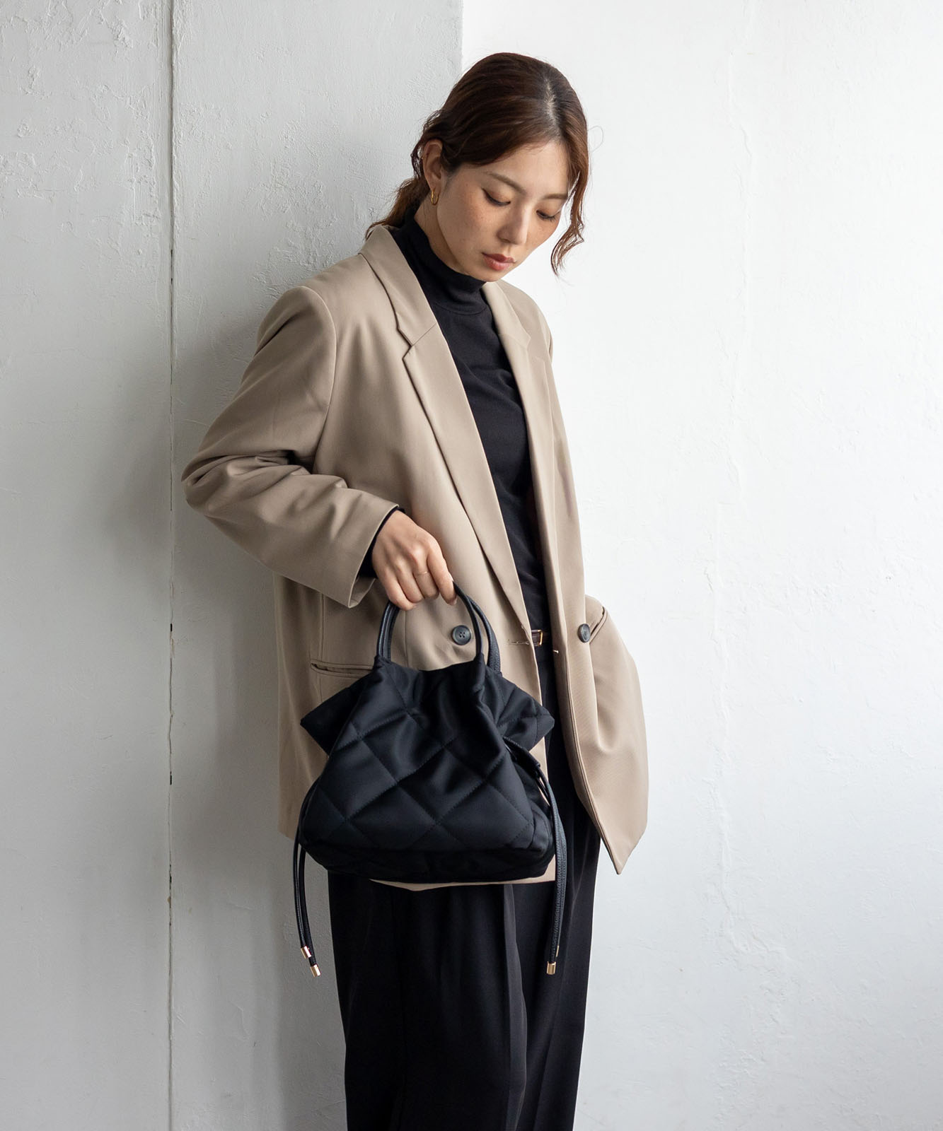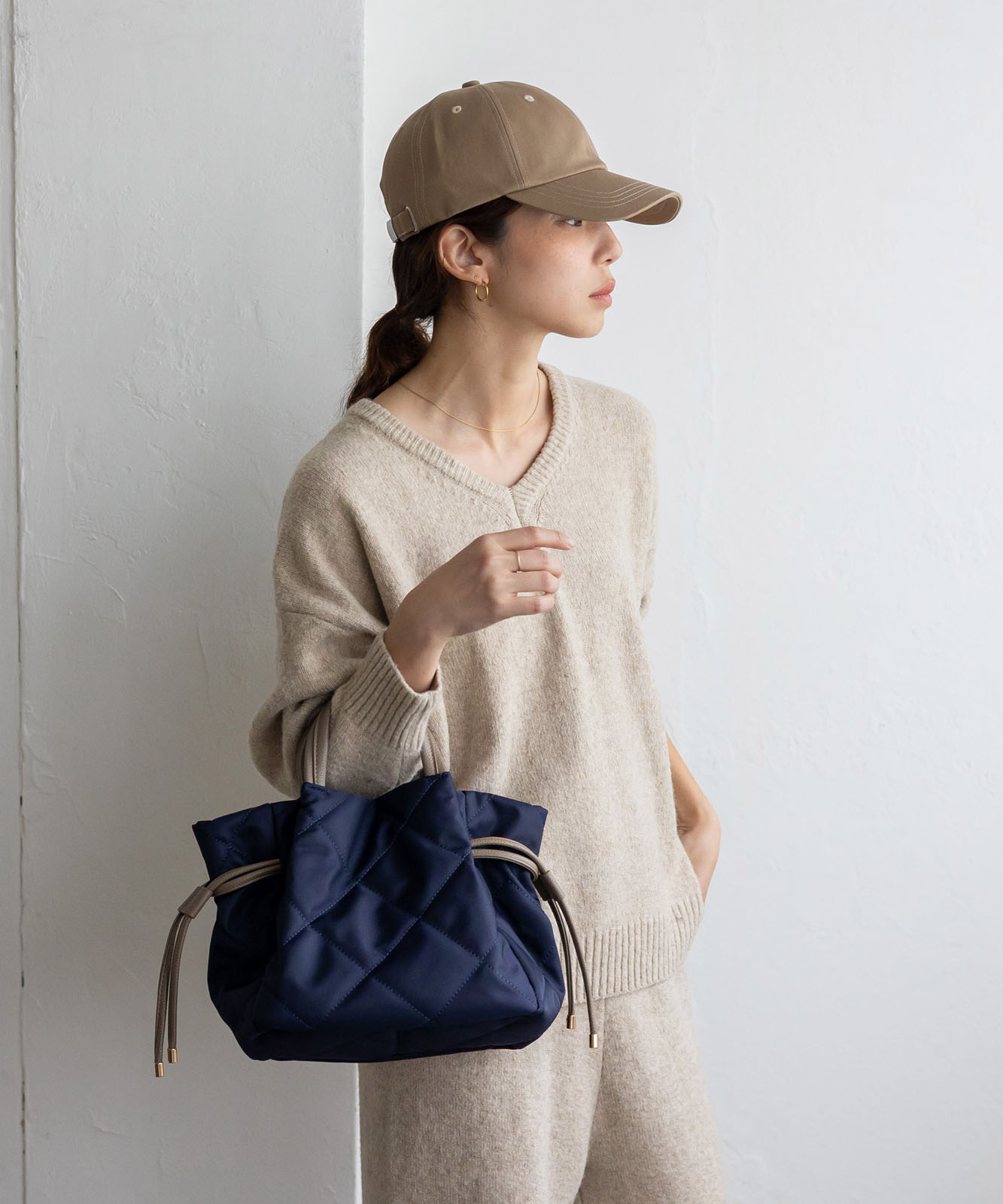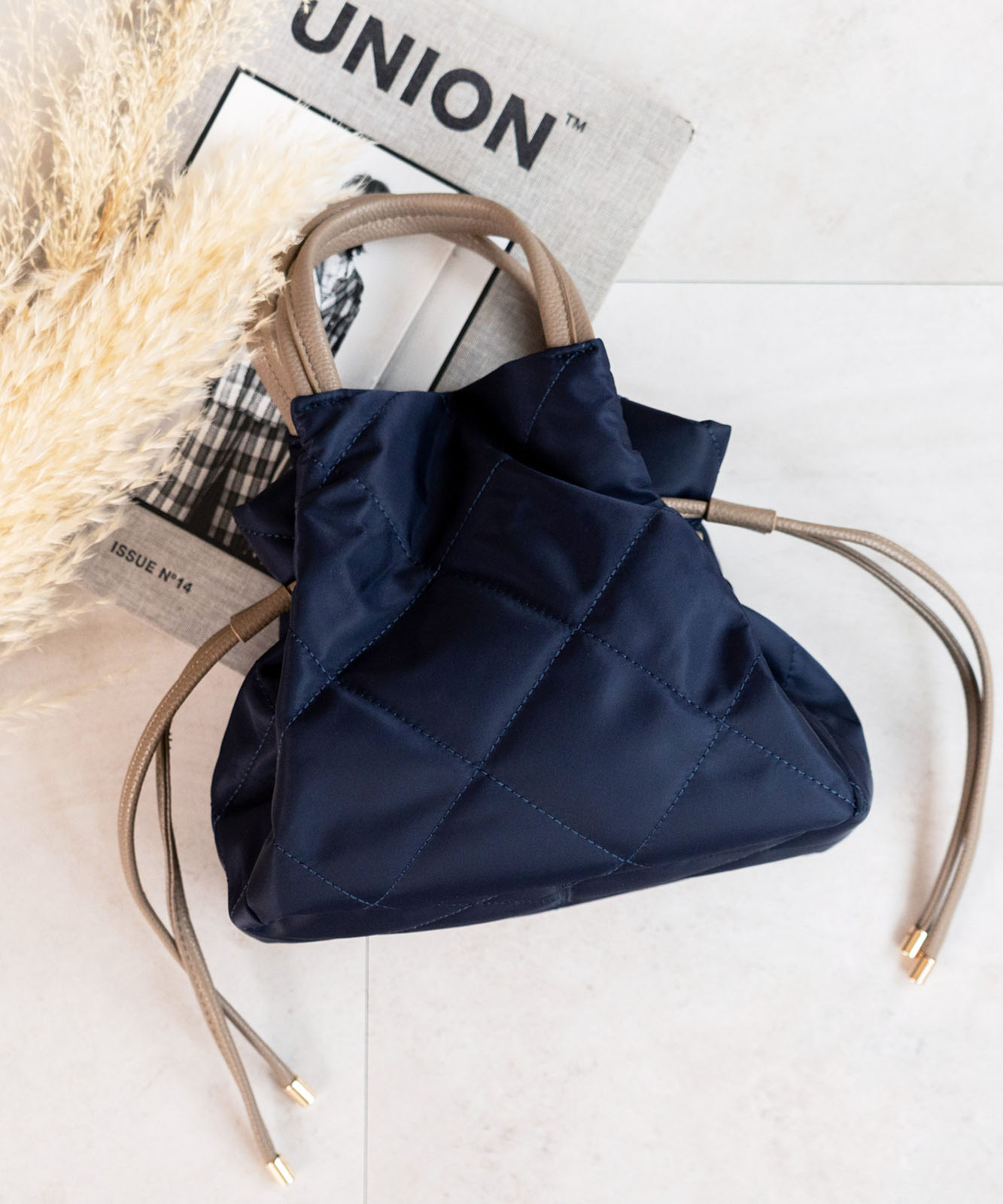 ●高密度ナイロン使用キルティング加工を施した丈夫な高密度ナイロンを使用し、上品で優しい雰囲気のバッグに仕上げました。