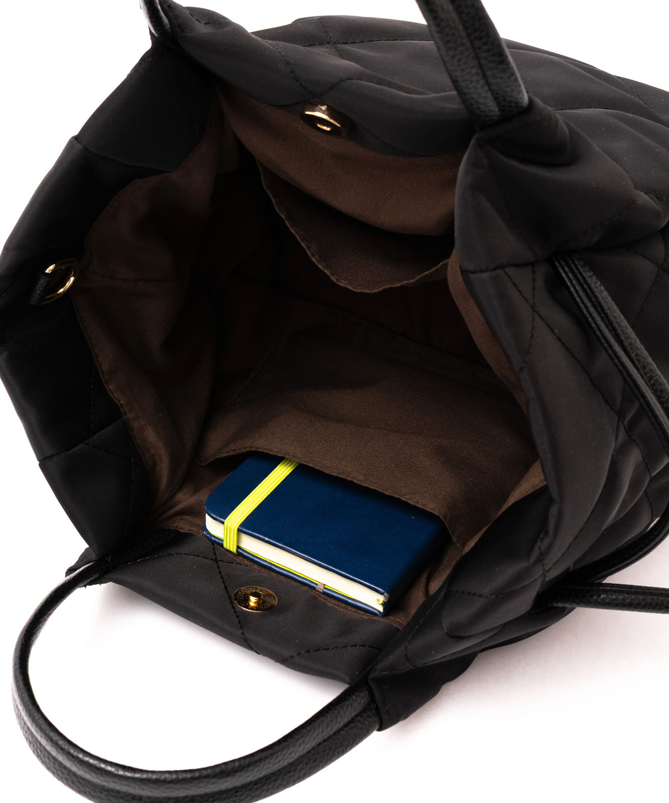 紐を絞ると巾着フォルム、開くと舟形トートバッグに。