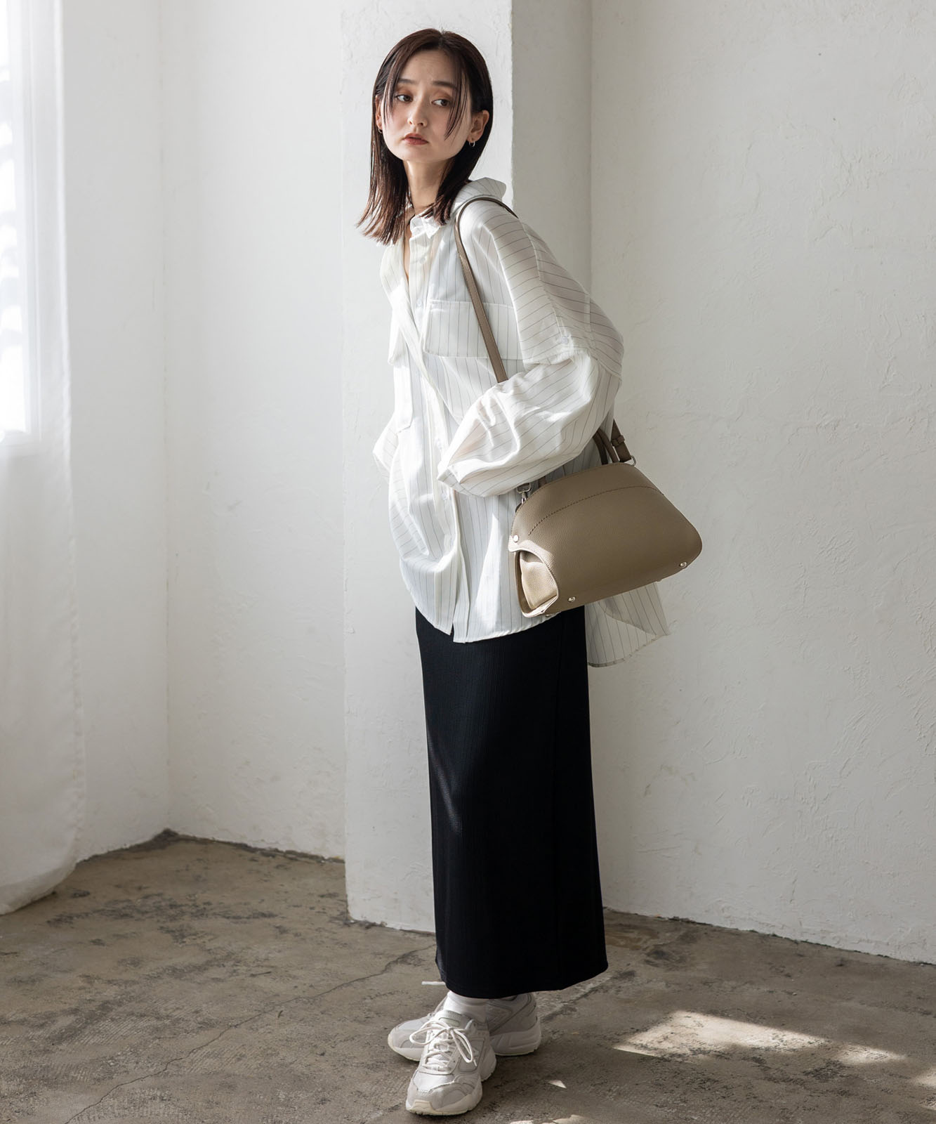 サイドのホックを留めるとコンパクトな三角フォルムになり、可愛らしい印象に。