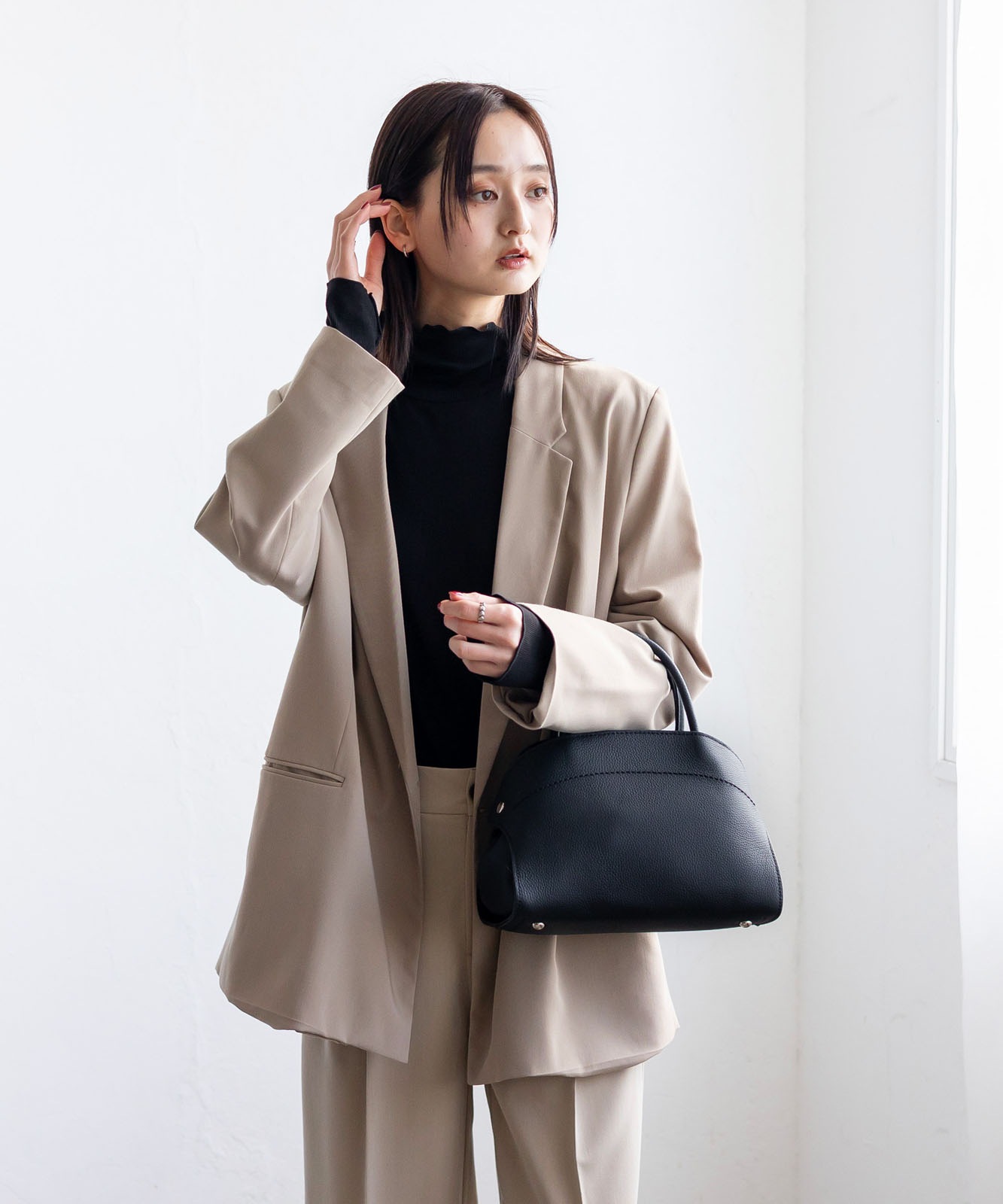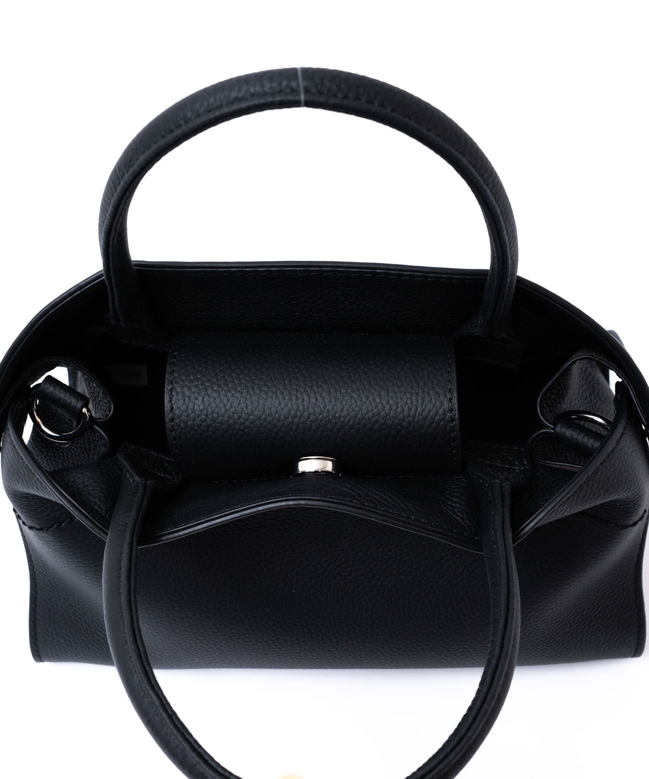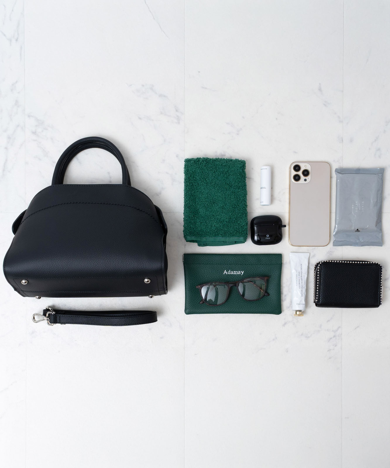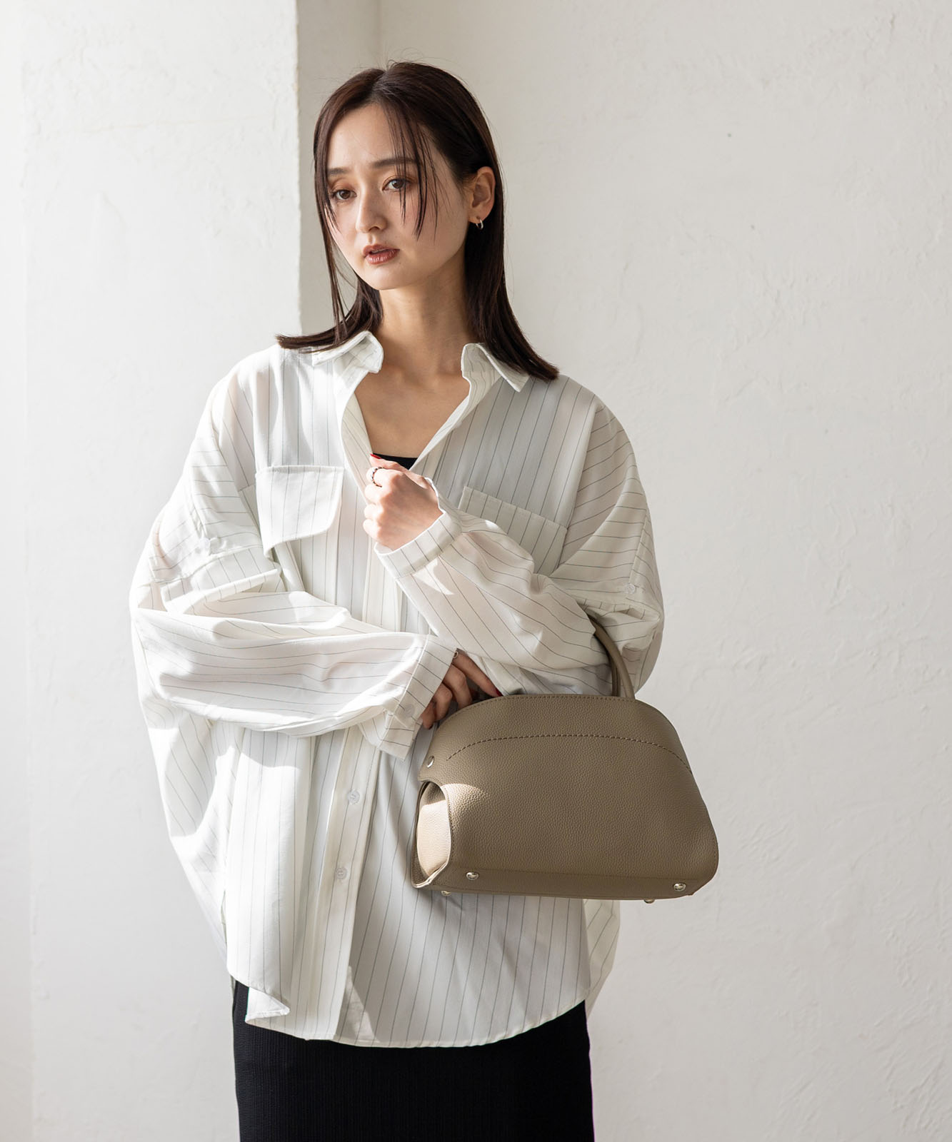 シンプルなラウンド型フォルムに、さりげないステッチがアクセントになった上品なハンドバッグ。