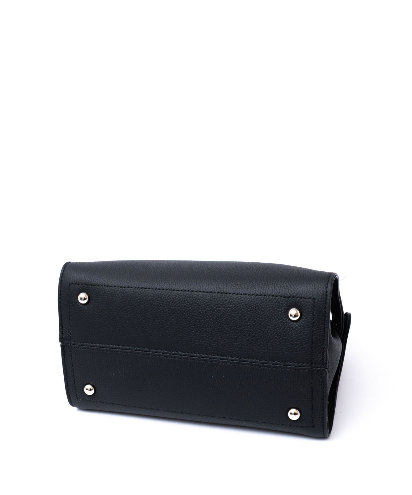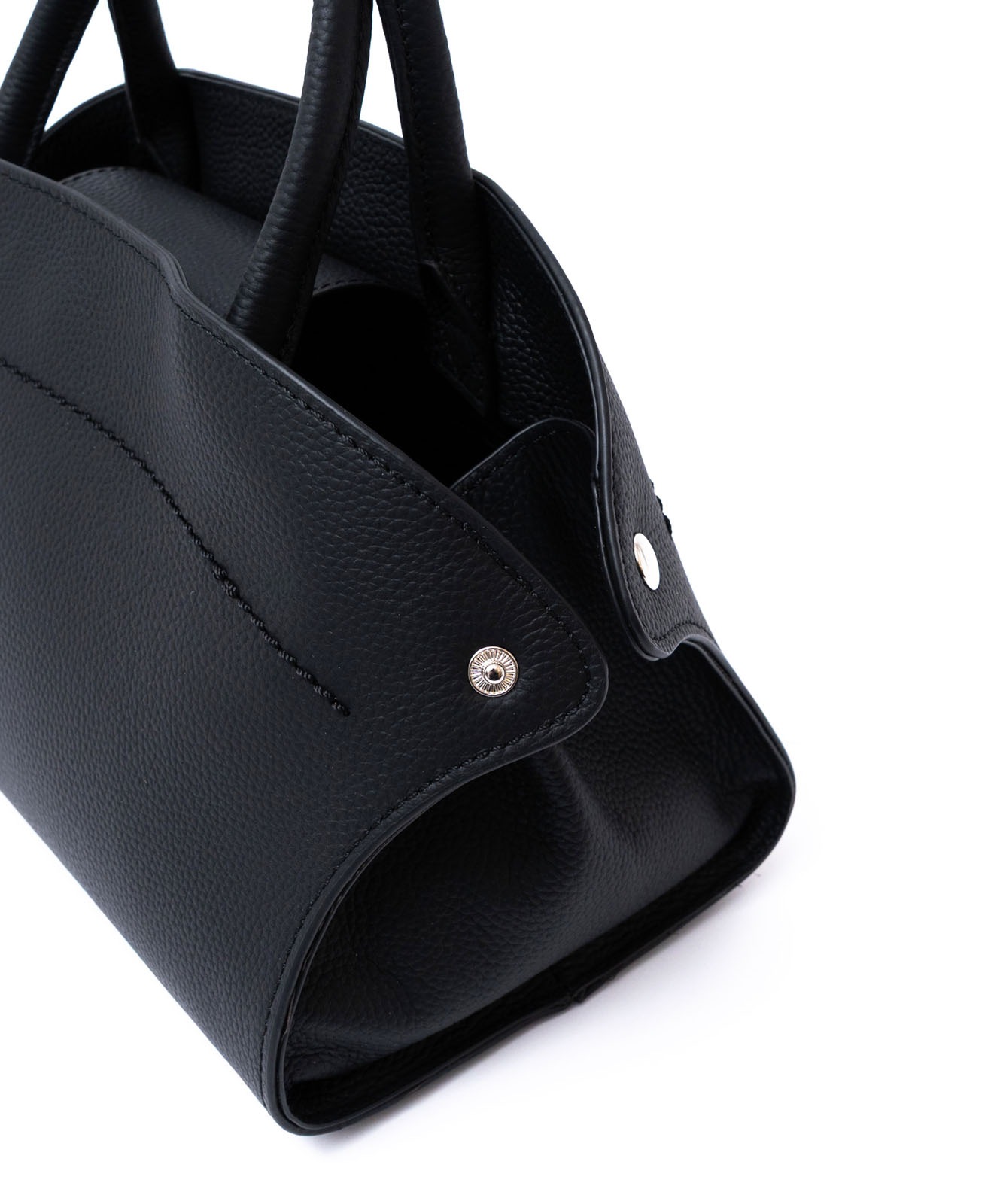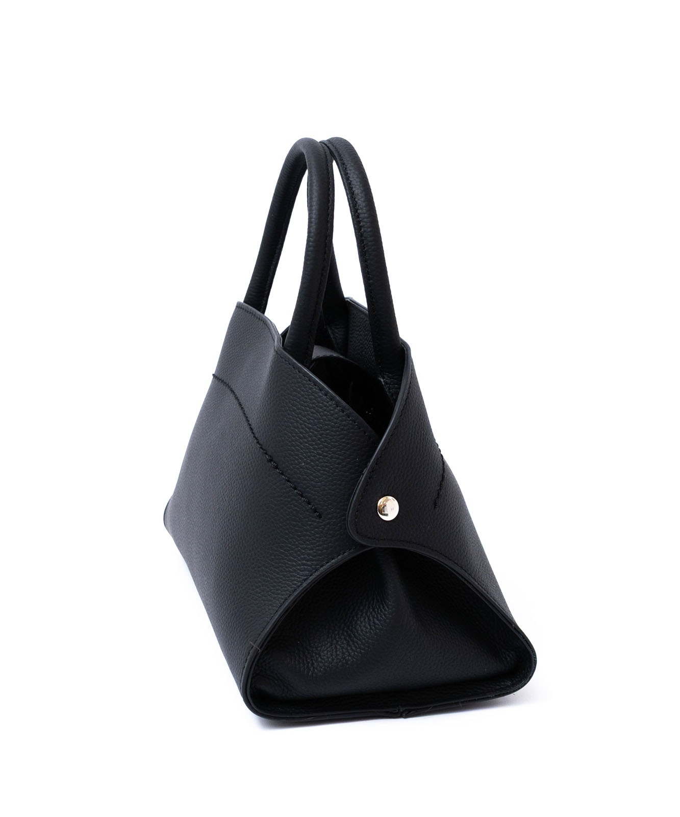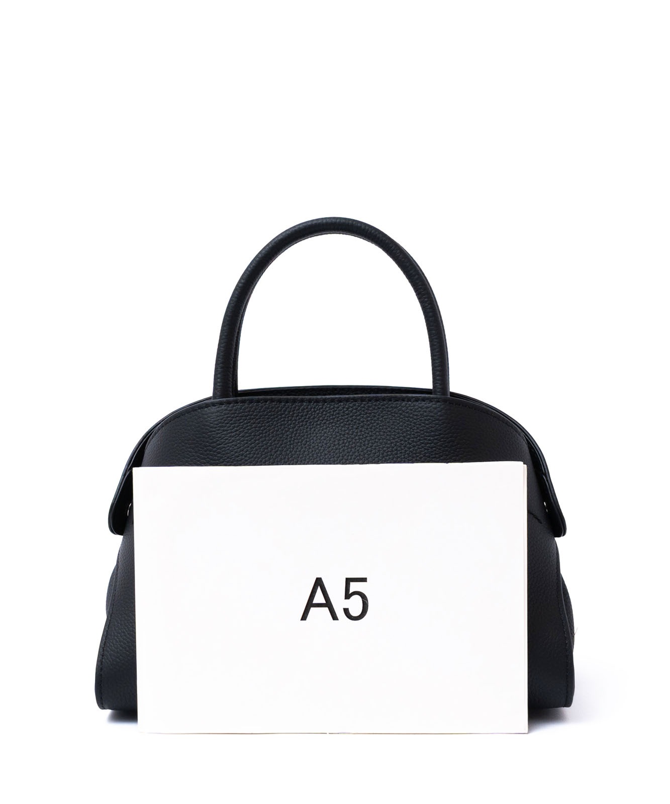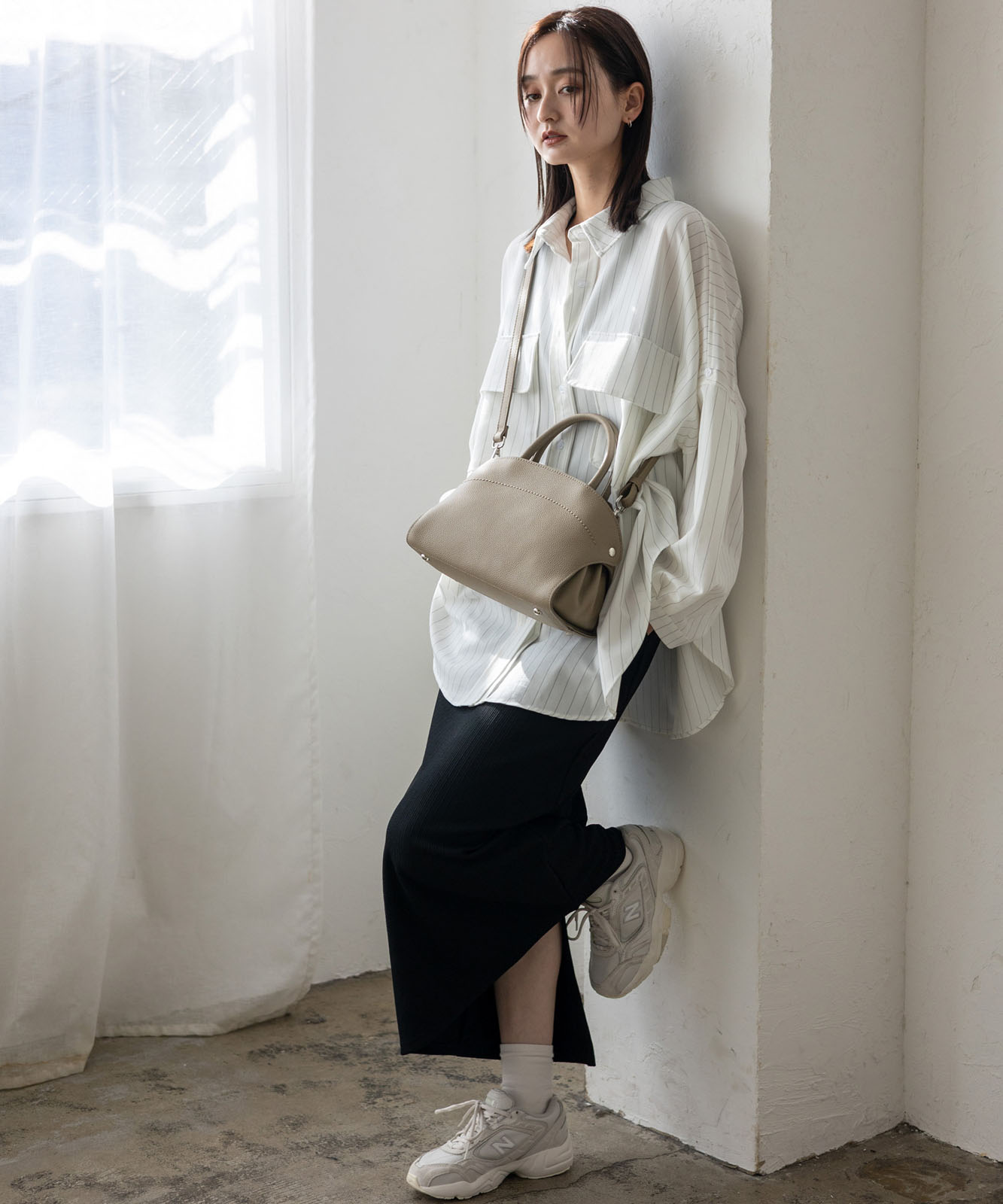 シンプルなラウンド型フォルムに、さりげないステッチがアクセントになった上品なハンドバッグ。
