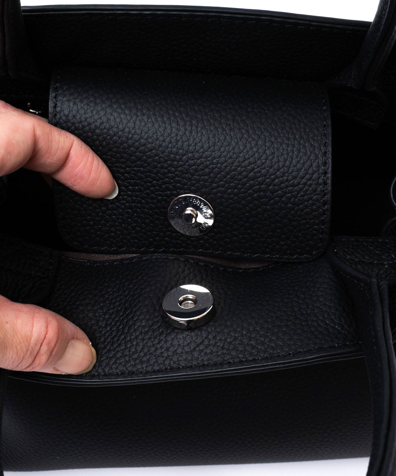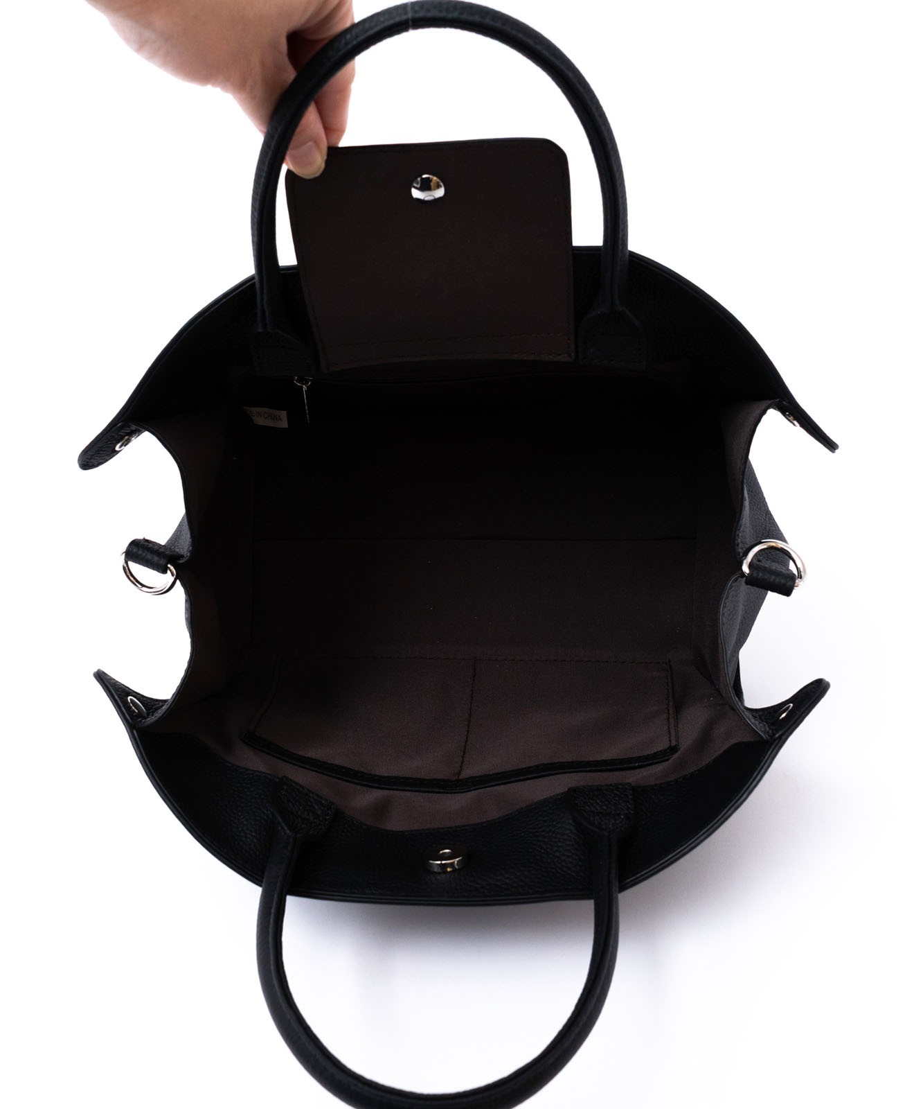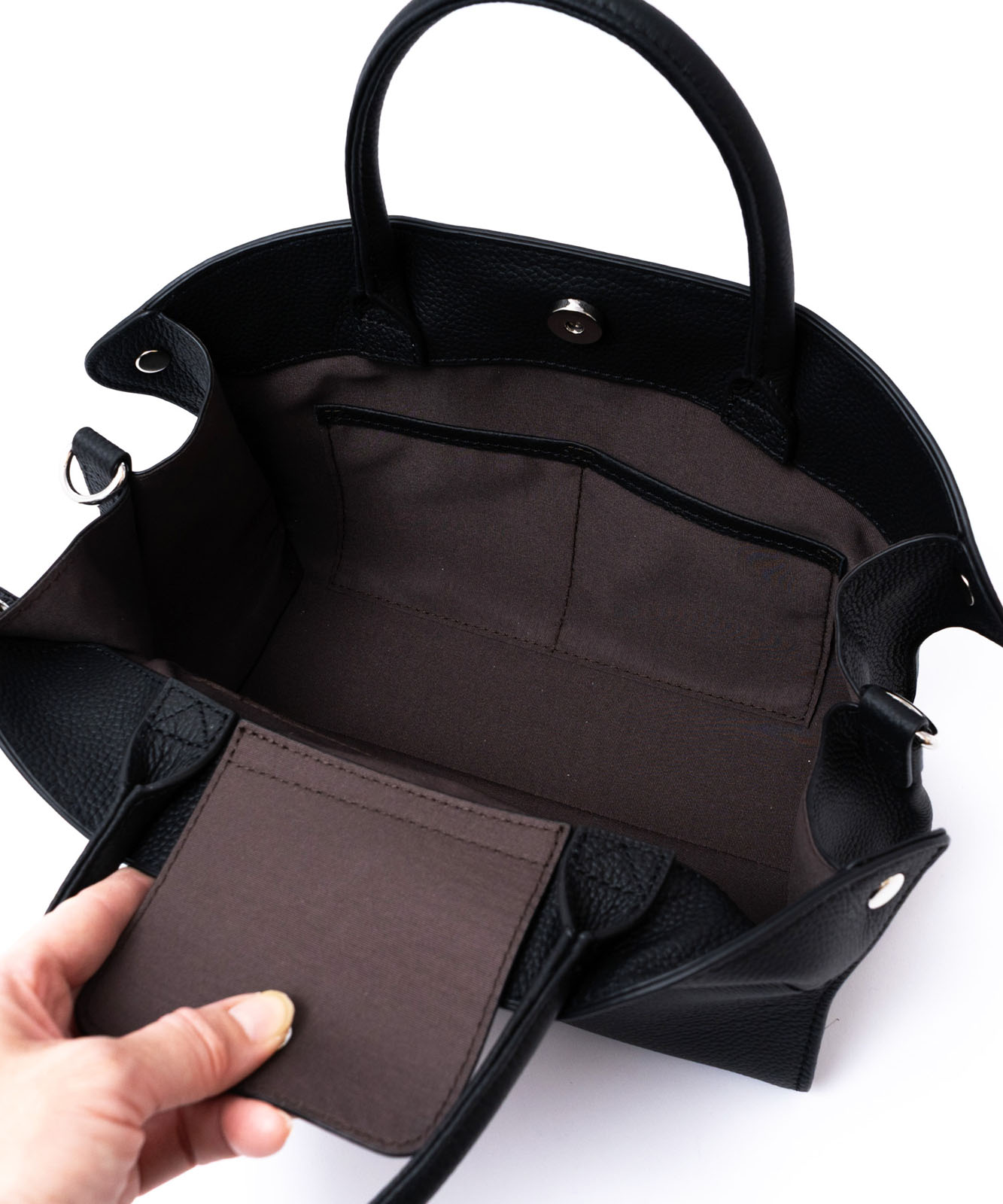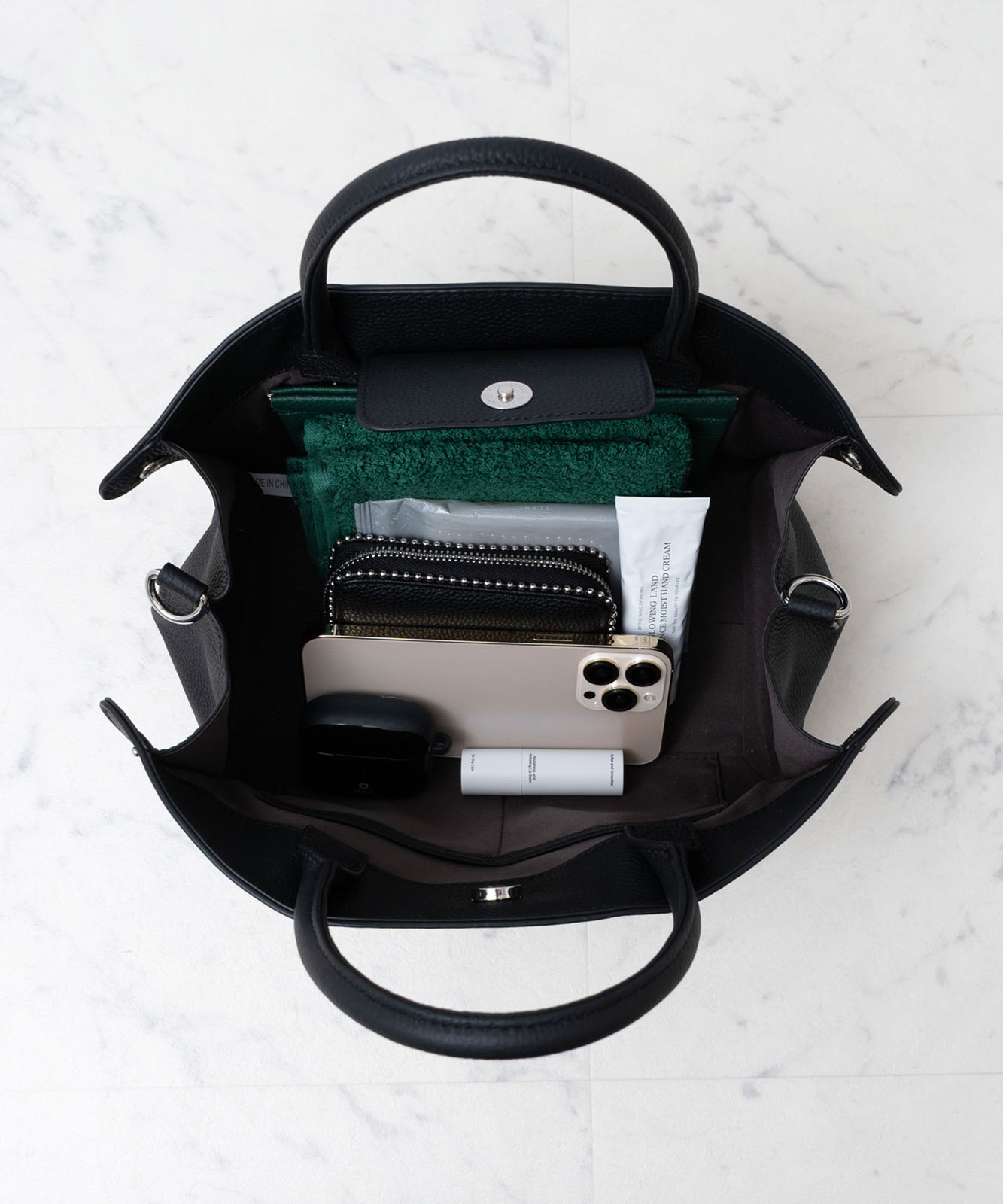 コンパクトなサイズ感ながら、広めのマチ設計で必要最低限の荷物はしっかり収納。