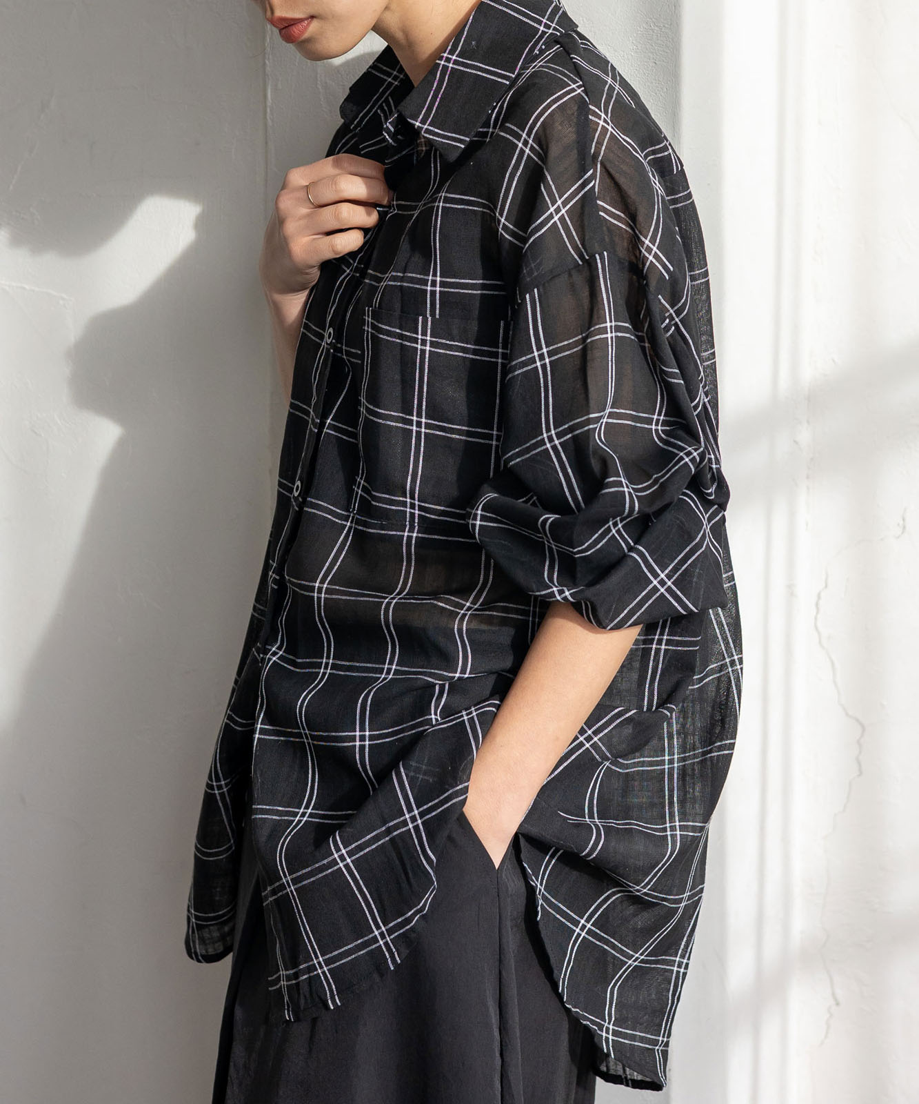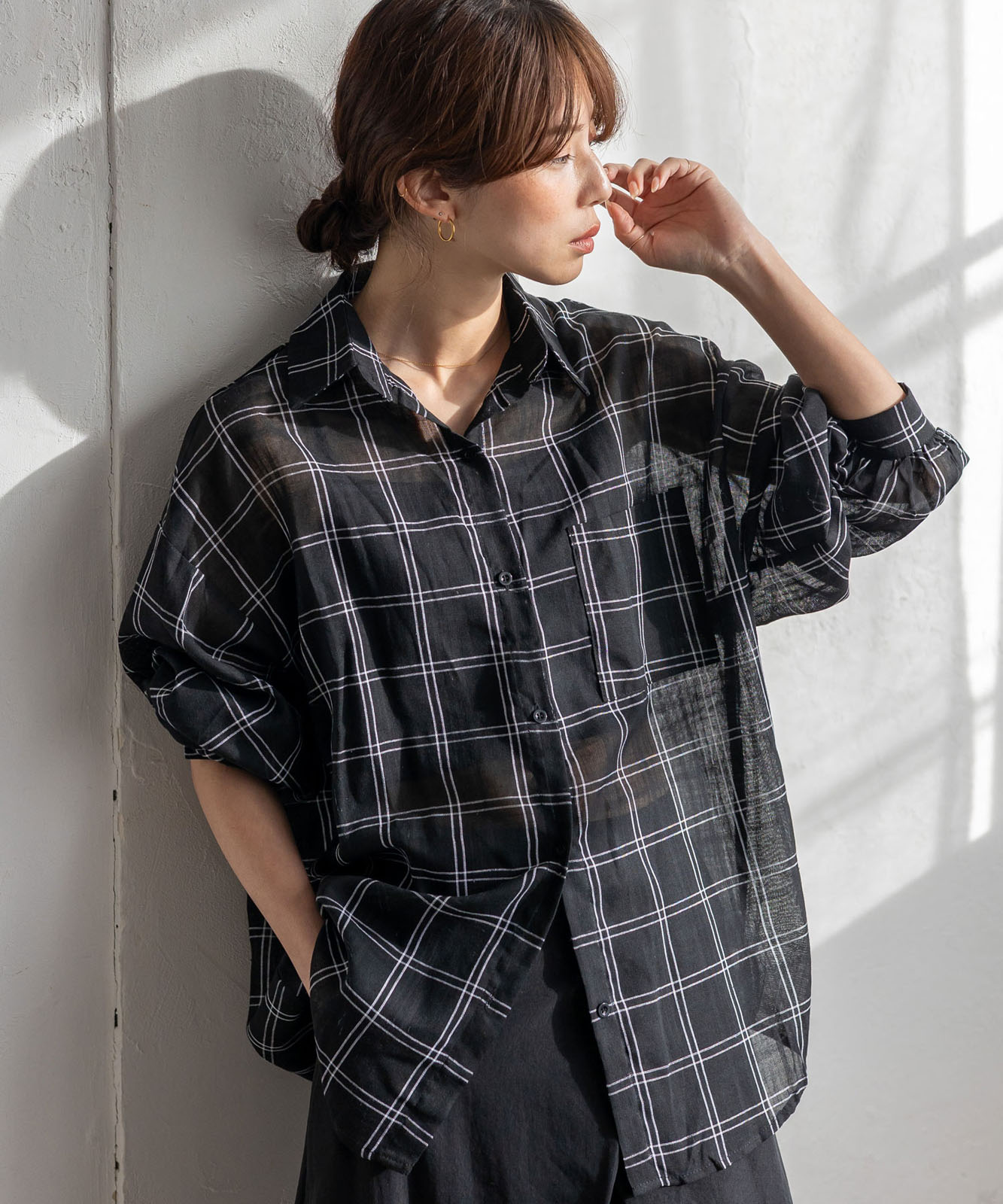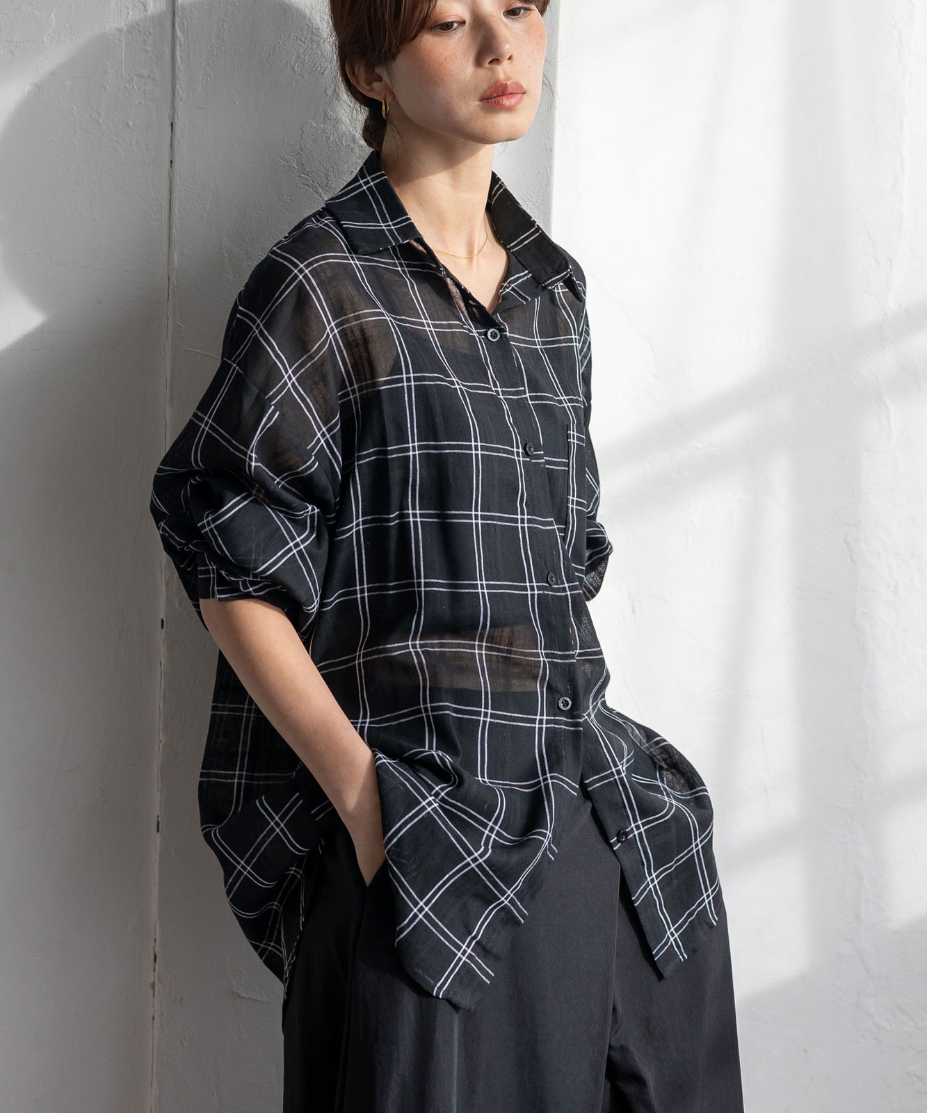 シンプルながら着回し力の高い、頼れるシアーシャツです。
