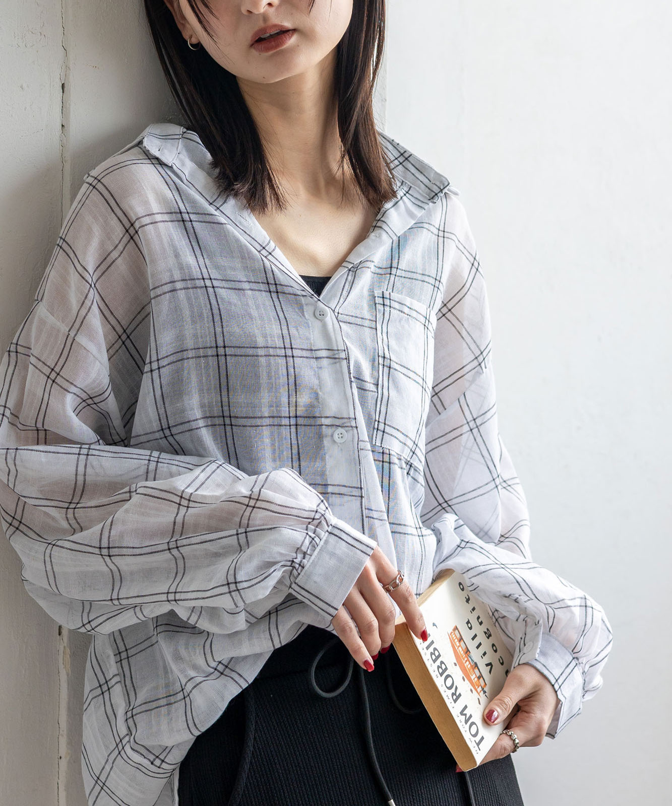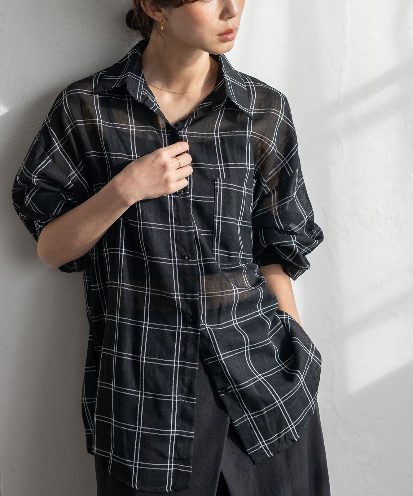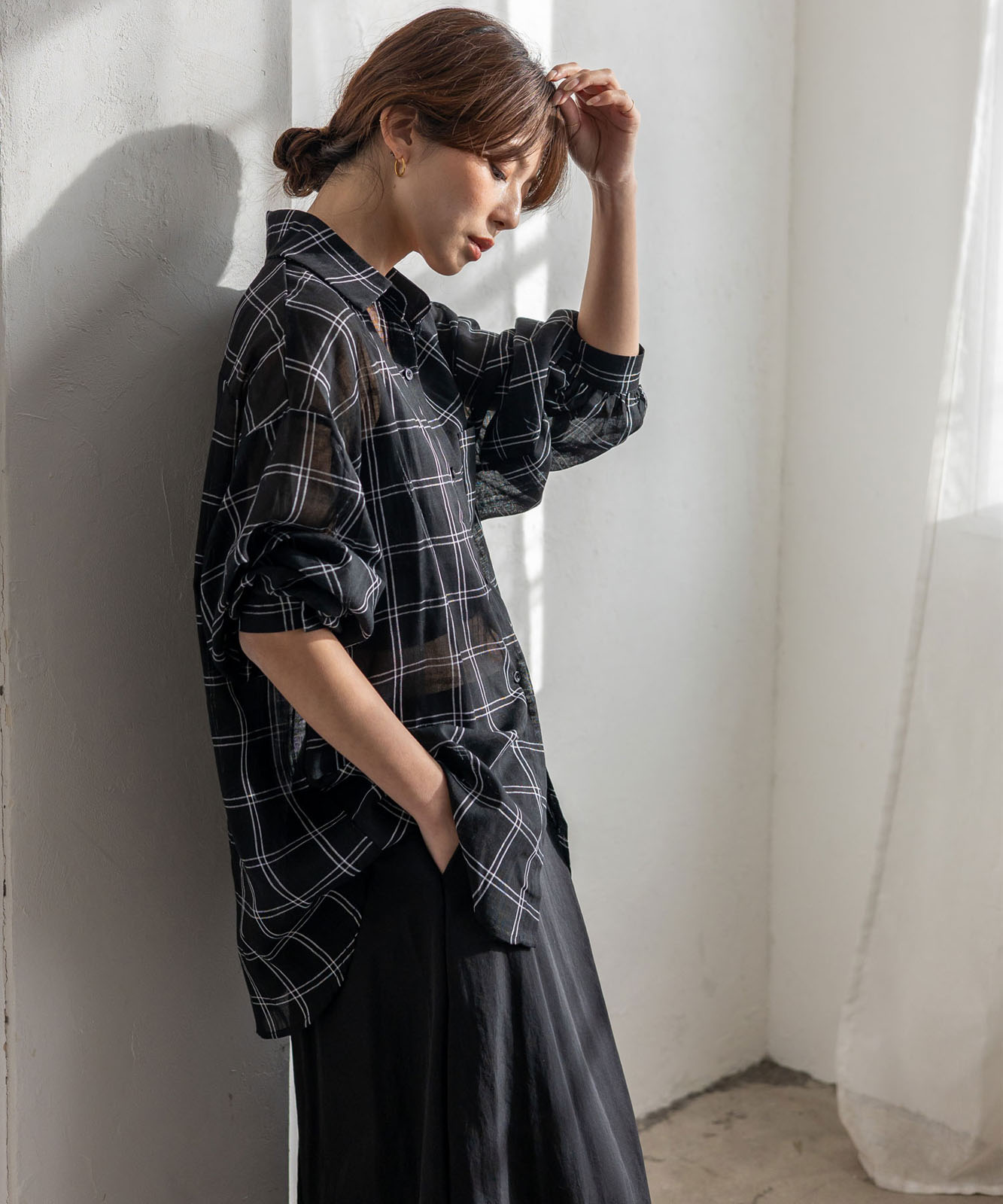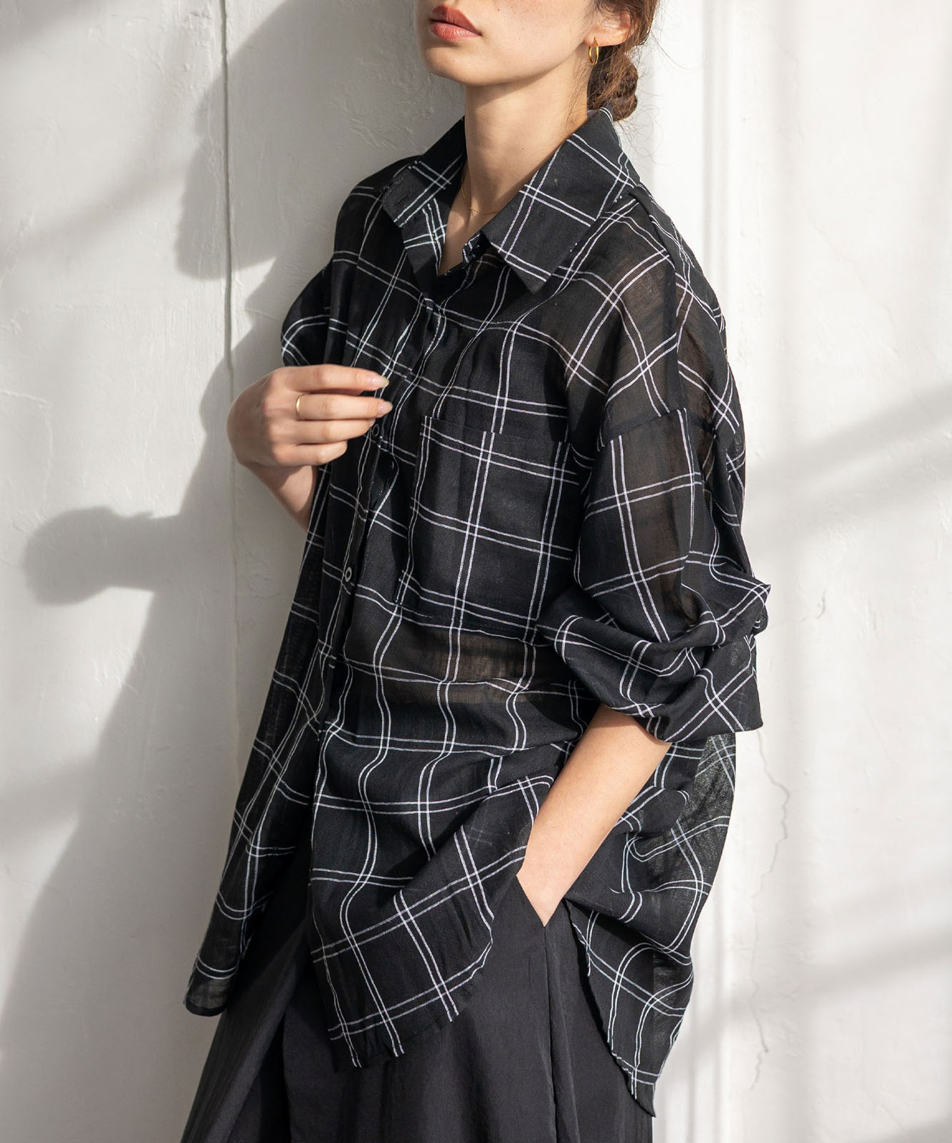 シンプルながら着回し力の高い、頼れるシアーシャツです。