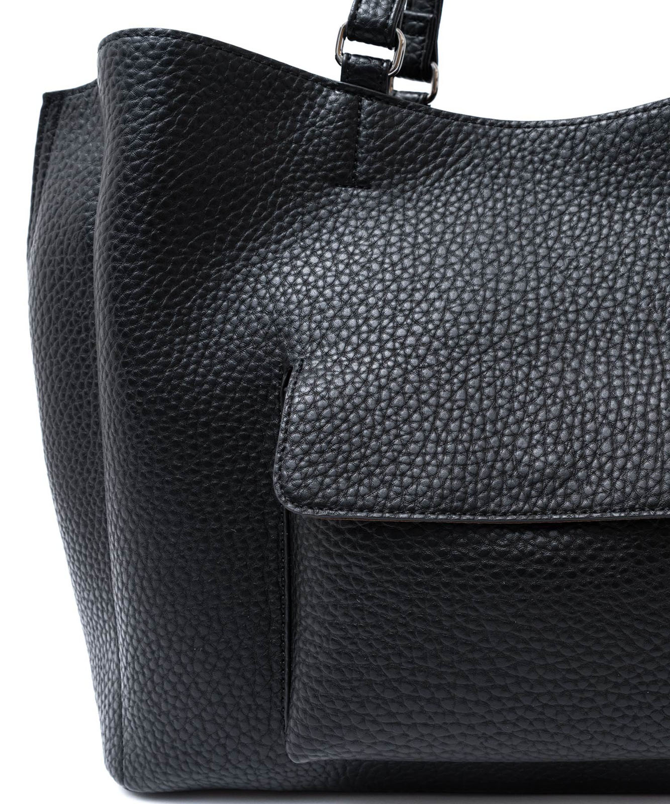 フロントに配置した立体ポケットが、さりげないデザインアクセントに。