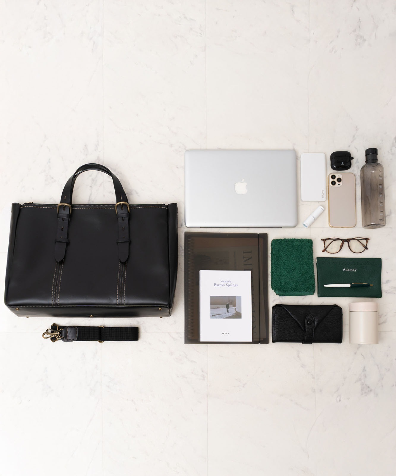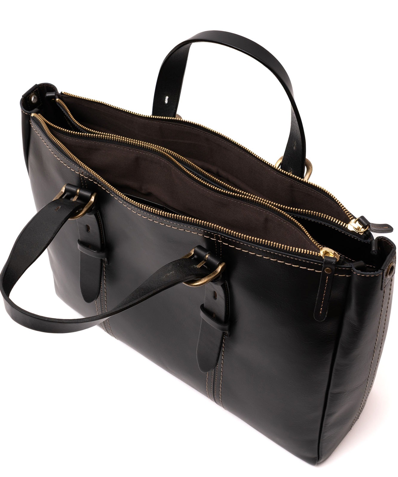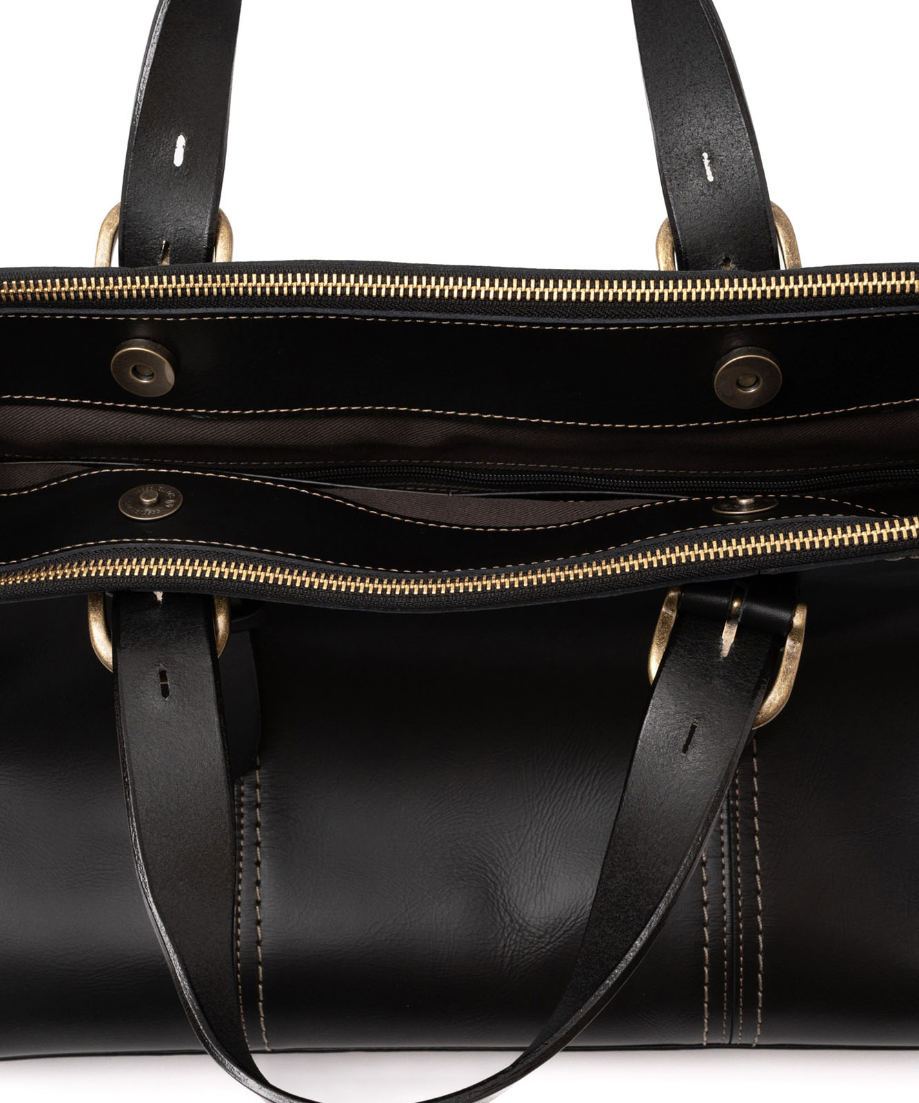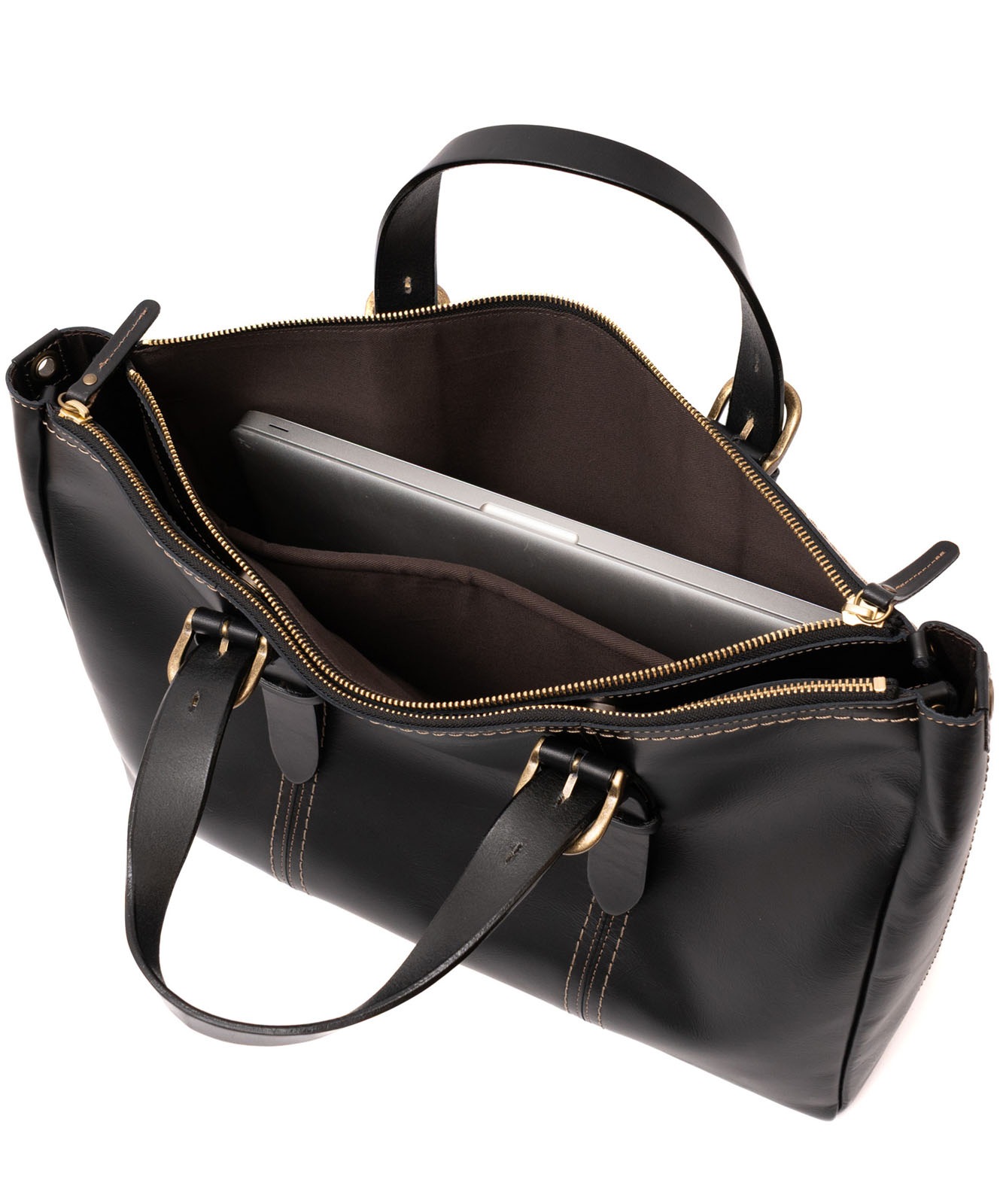 バッグ内部は3スペース構造。書類やデバイス、小物類をすっきり整理できます。
